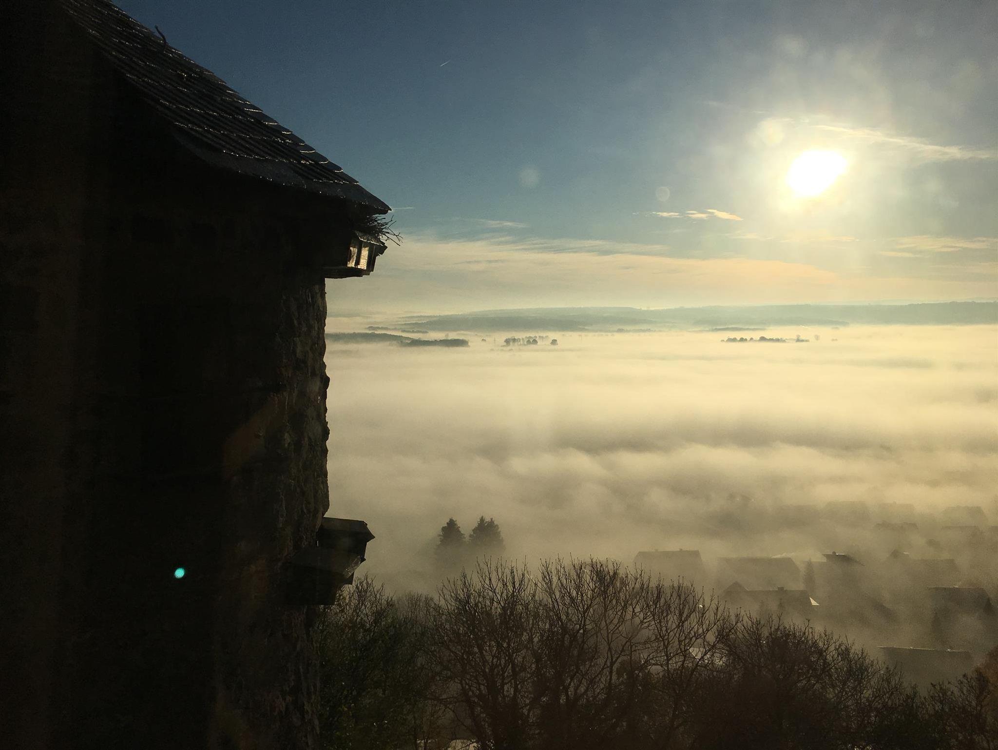 Ferien im Denkmal - in Amöneburg mitten in Hessen: In einer romantischen Kleinstadt mit 1300 jähriger Geschichte liegt altstadtnah das denkmalgeschützte Hof-Ensemble mit Wohnhaus, Stallungen und großer Spiel- und Fitness-Scheune mit Sauna.