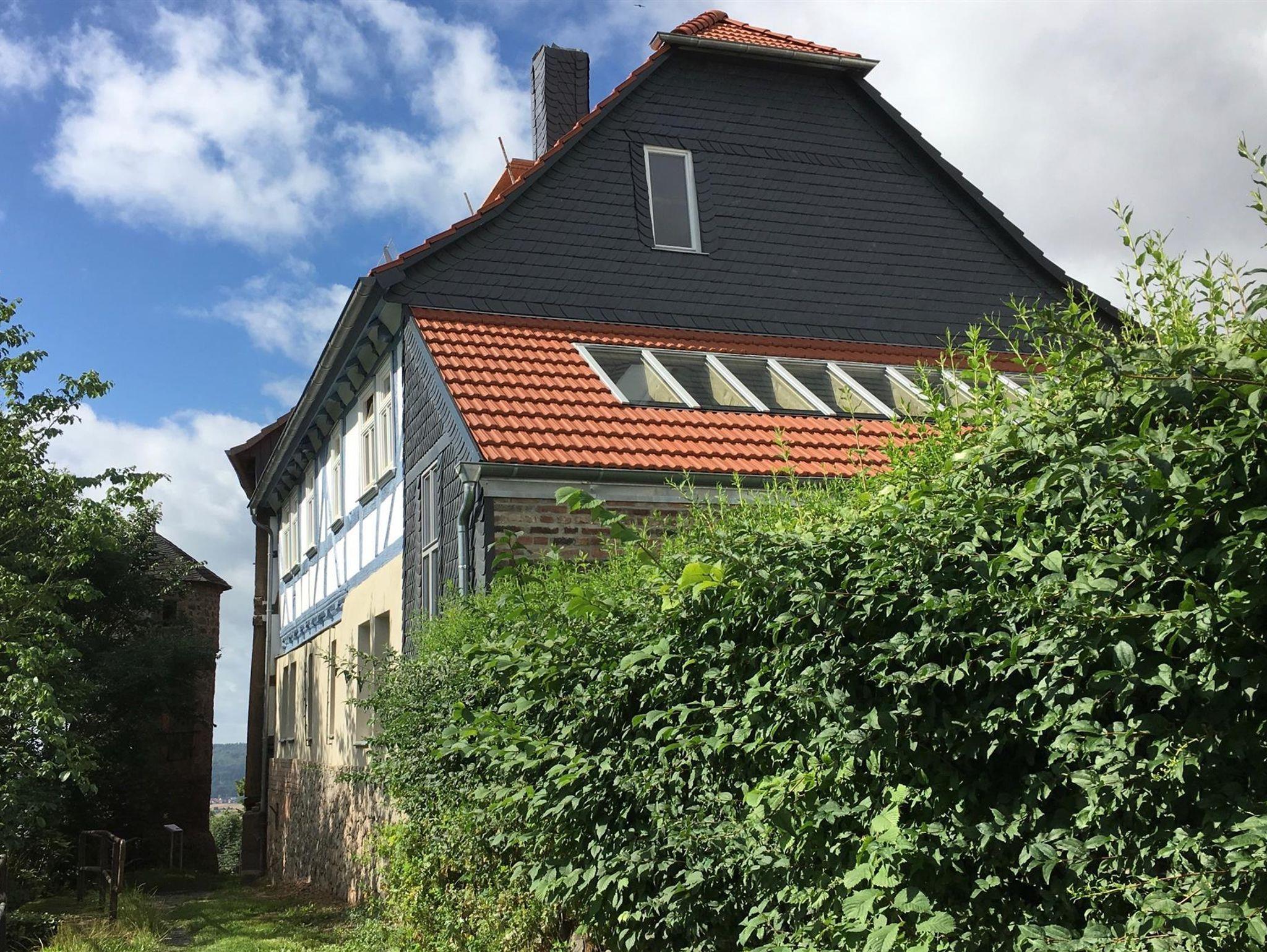 Ferien im Denkmal - in Amöneburg mitten in Hessen: In einer romantischen Kleinstadt mit 1300 jähriger Geschichte liegt altstadtnah das denkmalgeschützte Hof-Ensemble mit Wohnhaus, Stallungen und großer Spiel- und Fitness-Scheune mit Sauna.