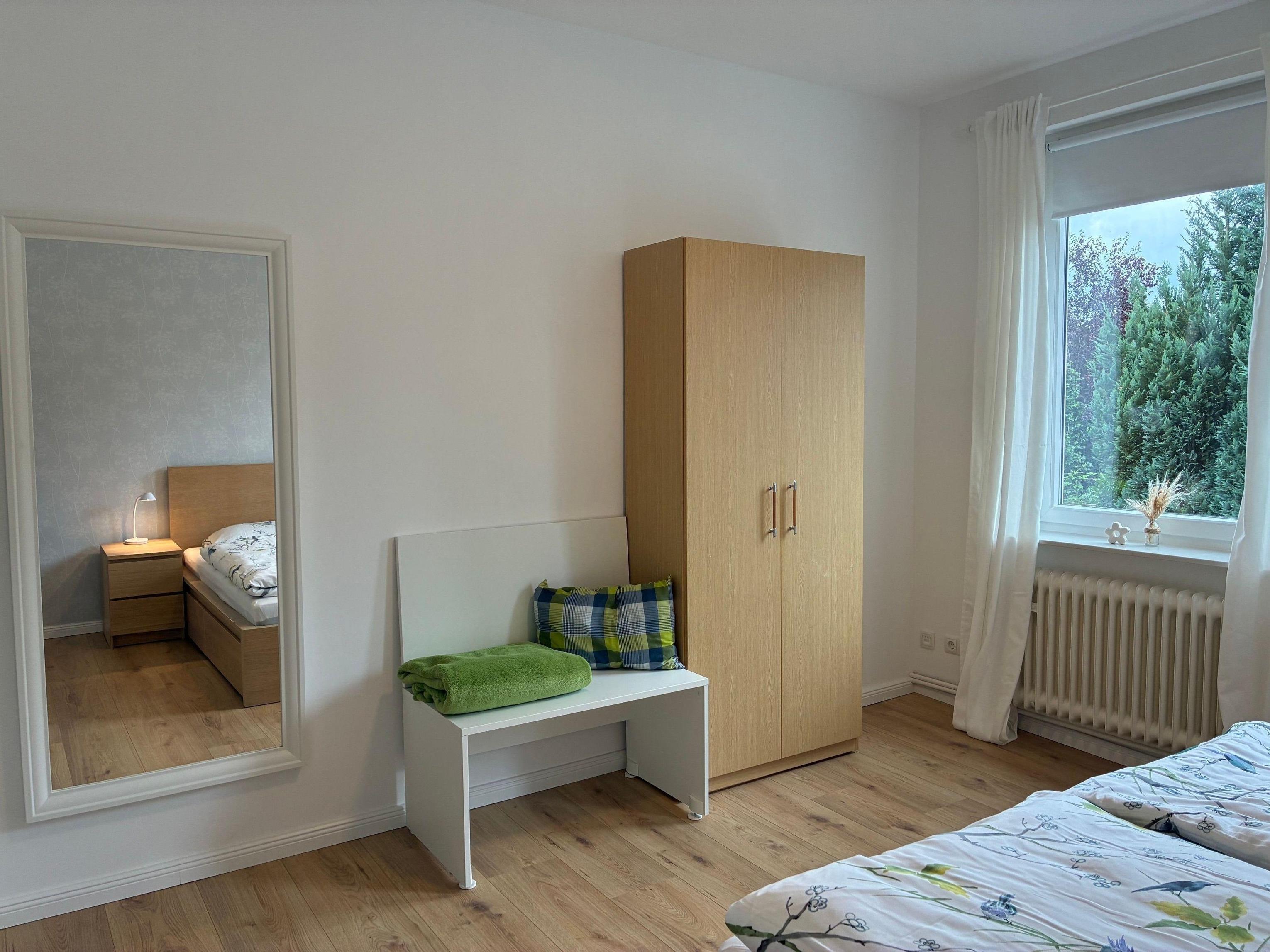Geräumiges Schlafzimmer mit einem Bett 1,40m x 2,00m (für 1-2 Personen), Kleiderschrank
