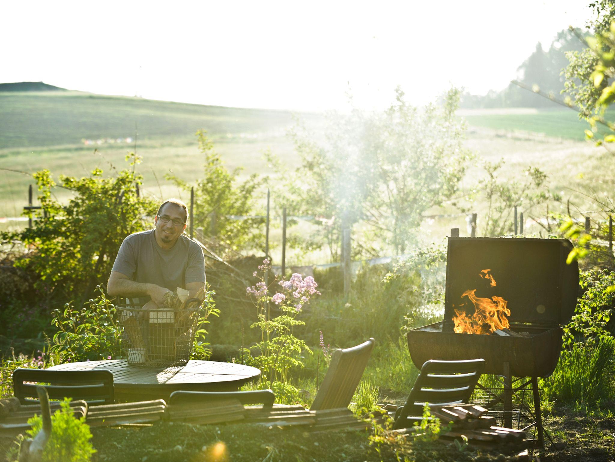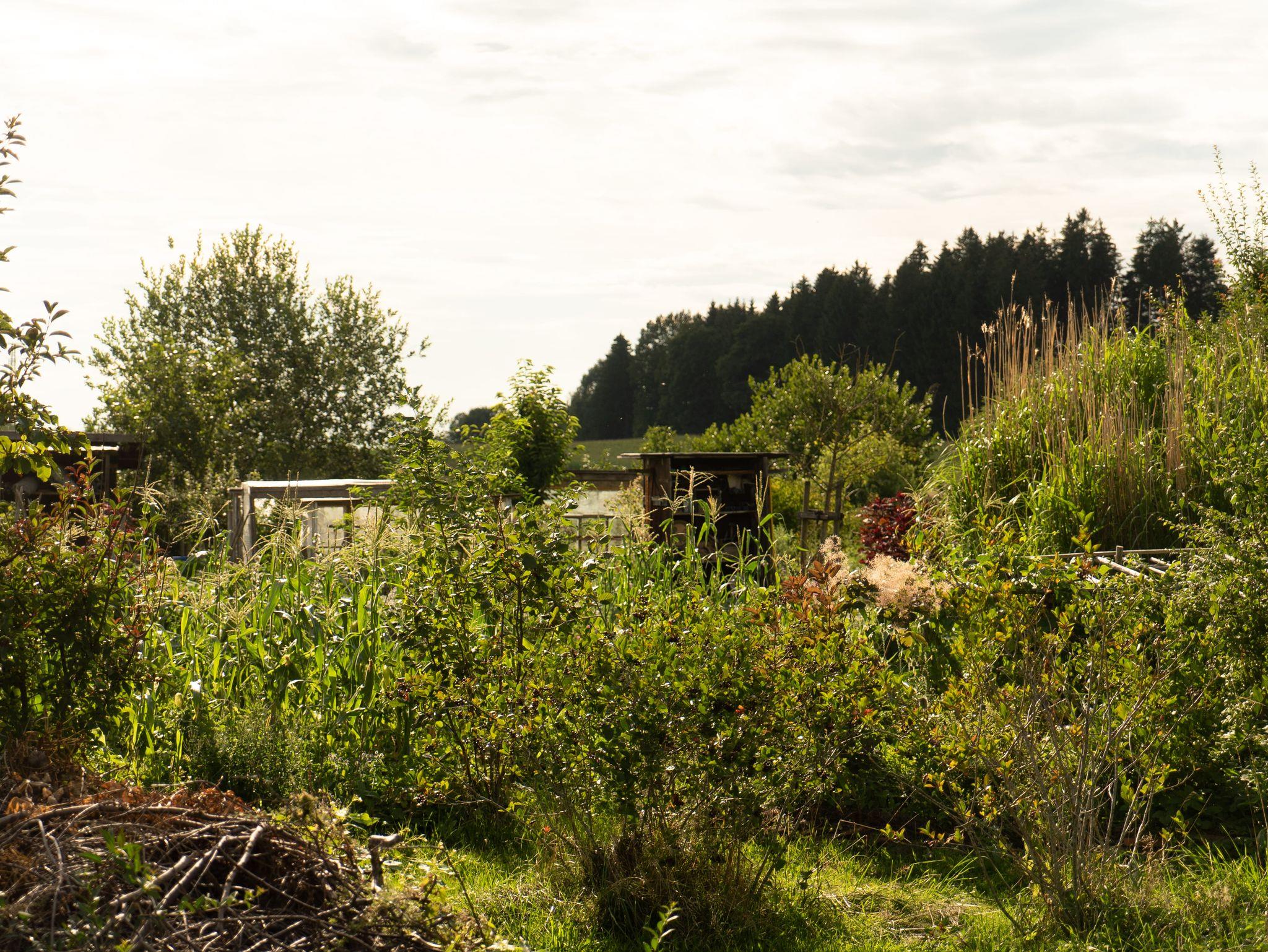 Es gibt einen großen Hausgarten für den Gemüseanbau, Schafe, Hühner, eine Streuobstanger, eine wachsende Wildschutzhecke und ein kleines Waldareal. Unter den alten Obstbäumen sind drei Campingstellplätze ausgewiesen.