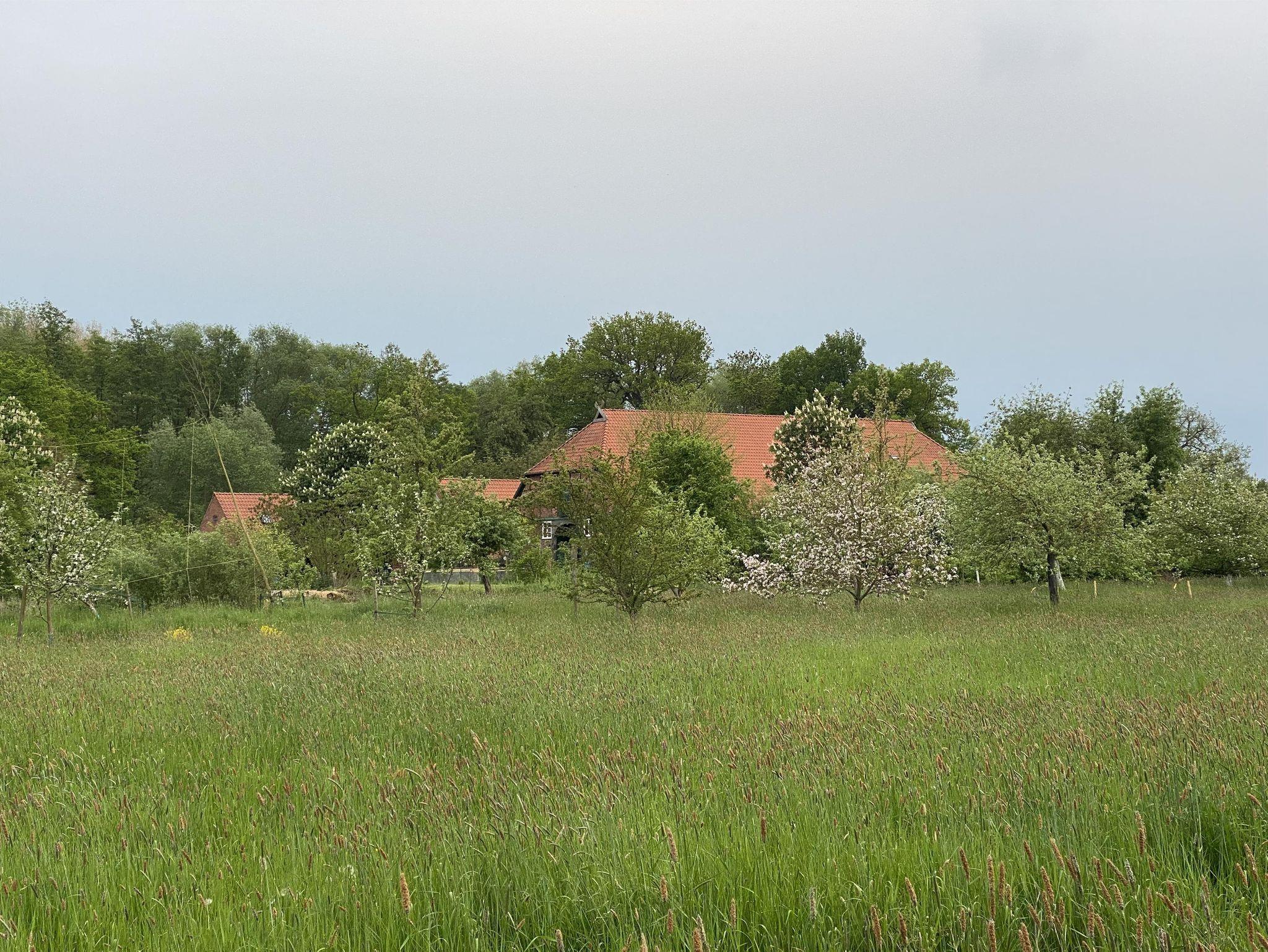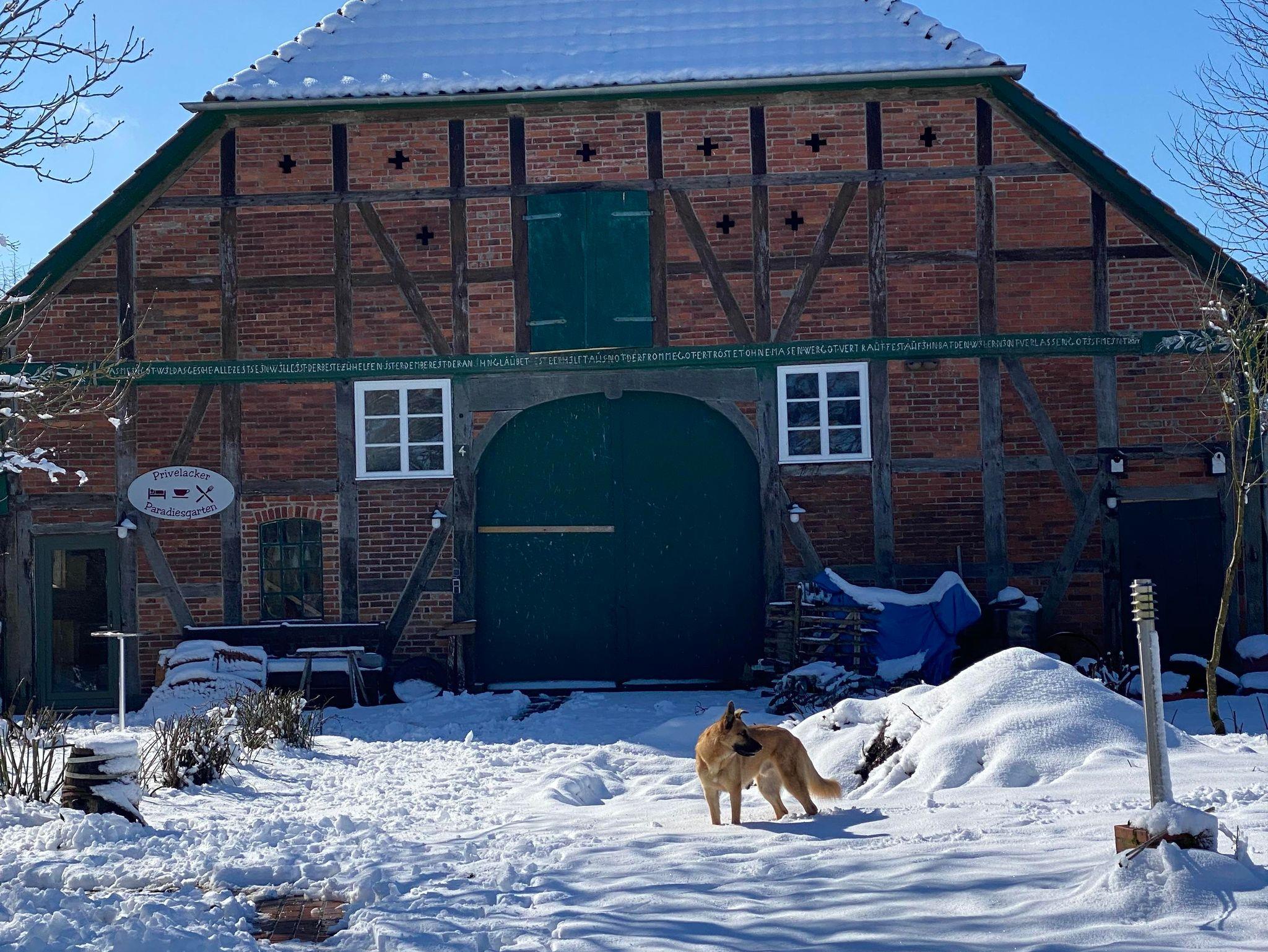 Der Paradiesgarten ist ein Resthof mit Hauptgebäude aus dem Jahr 1792 und einem Nebengebäude aus ca. 1900, in dem sich die Gastronomie und die Unterkünfte befinden. In Alleinlage, direkt am Elbdeich und den hier verlaufenden Radwanderrouten, bietet er, fern der großen Straßen, herrliche Ruhe und Entspannung Das knapp 5ha große Gelände mit Weinfeld, Rosengarten, Streuobstwiese, Gemüsegarten und Weideflächen lädt ein zum spazieren. Besonders beindruckend ist eine Stieleiche, die mit 700 Jahren zu den ältesten Bäumen Deutschlands zählt.