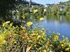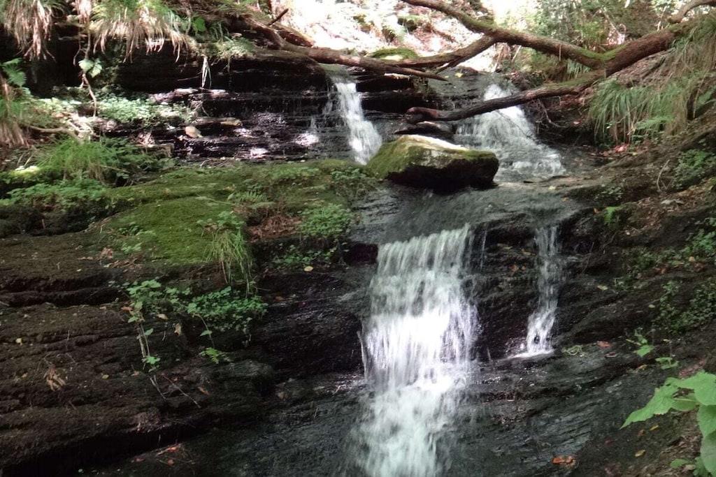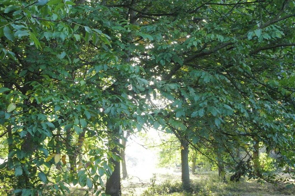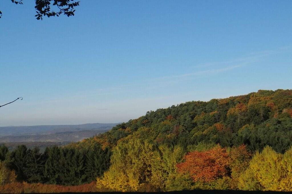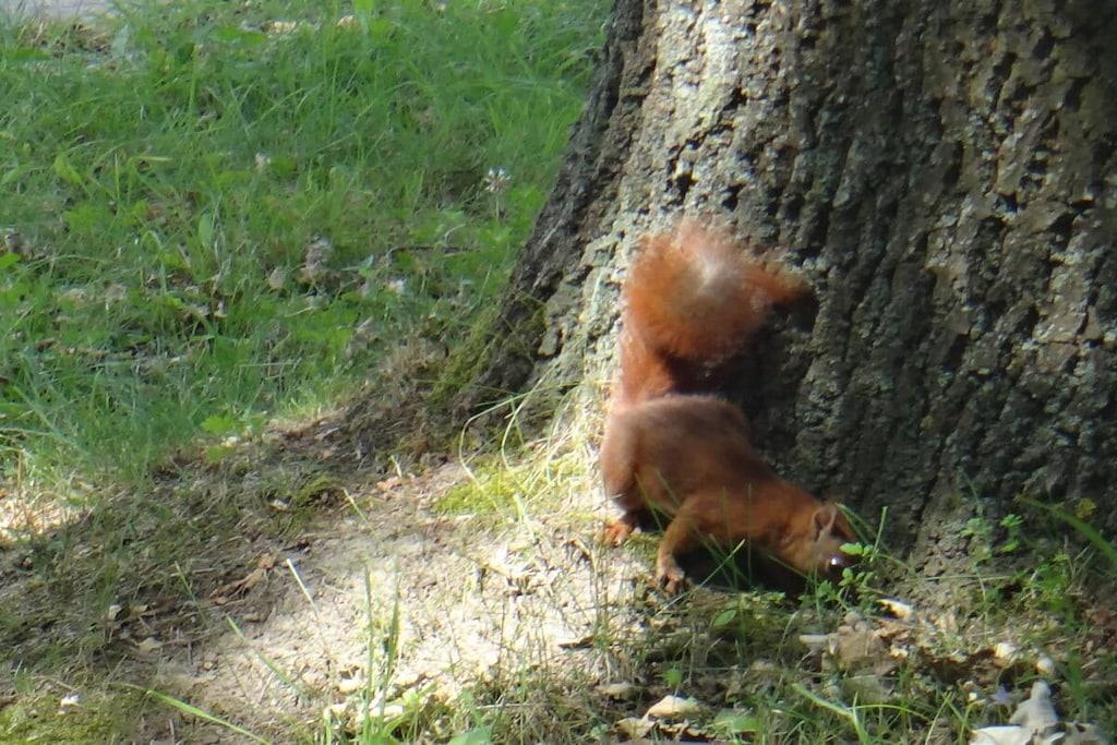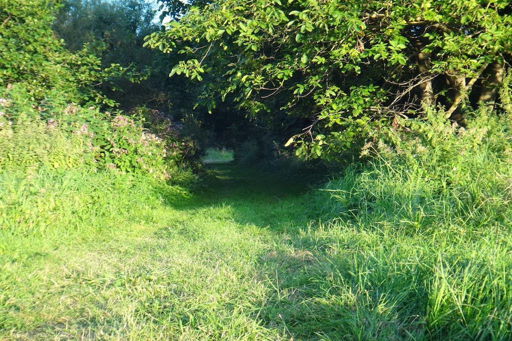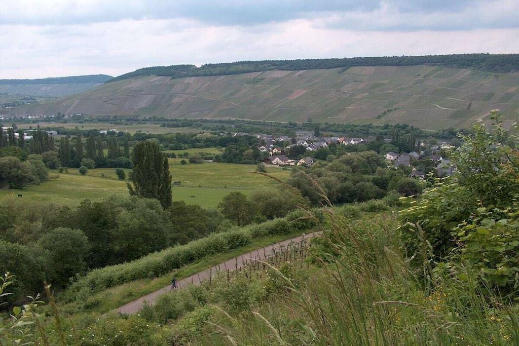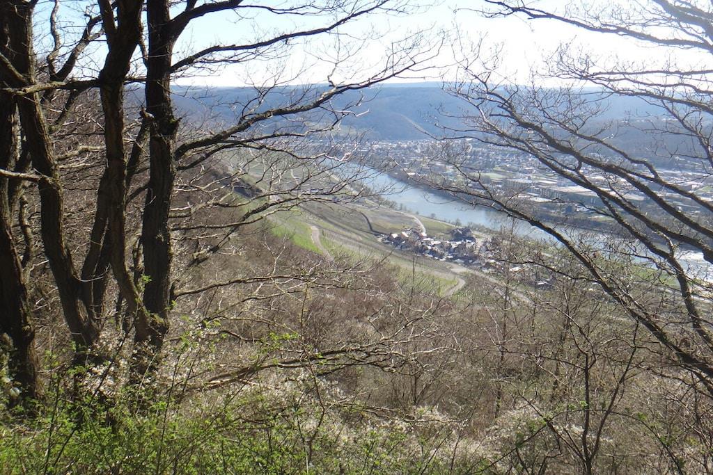 Unique red wooden house in the middle of a garden with flowers and trees, here you can look forward to spring. On the banks of the Moselle and close to the cycle path.