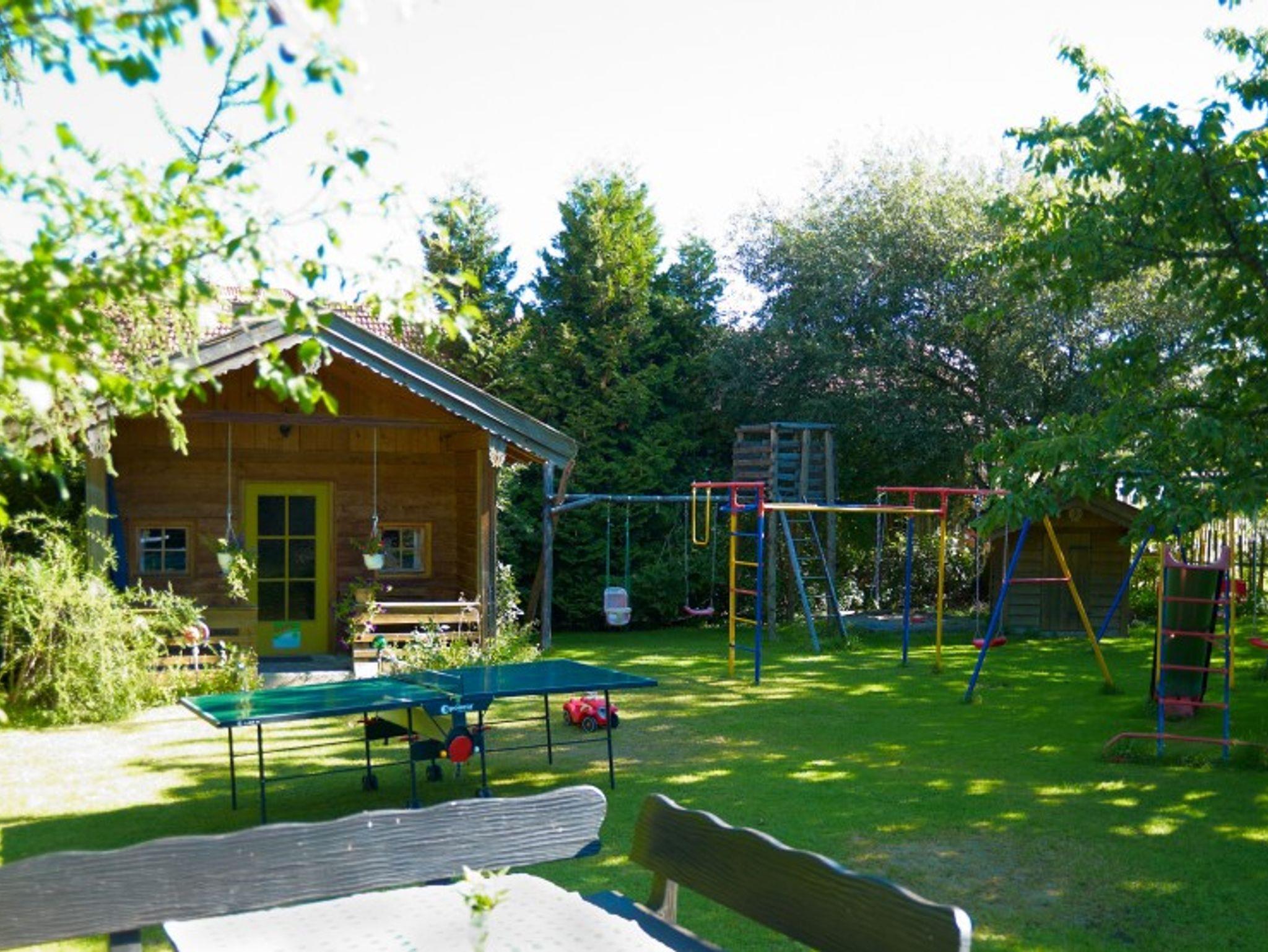 Das Ferienhaus mit fünf Ferienwohnungen für zwei bis fünf Personen liegt ca. 30 m von unserem Bauernhof entfernt, in sehr sonniger, ruhiger Lage abseits des Straßenverkehrs, umgeben von Wiesen und Wäldern, mit Blick auf die Berg. Gartenanlage mit gemütlichem Gartenhäuschen und Grillplatz. Alle Ferienwohnungen sind mit 4 Sternen klassifiziert und komfortabel ausgestattet. Der Hof wird nur noch im Nebenerwerb bewirtschaftet; es leben u.a. vier Miniponys, Schafe, Kaninchen und Katzen auf dem Hof.