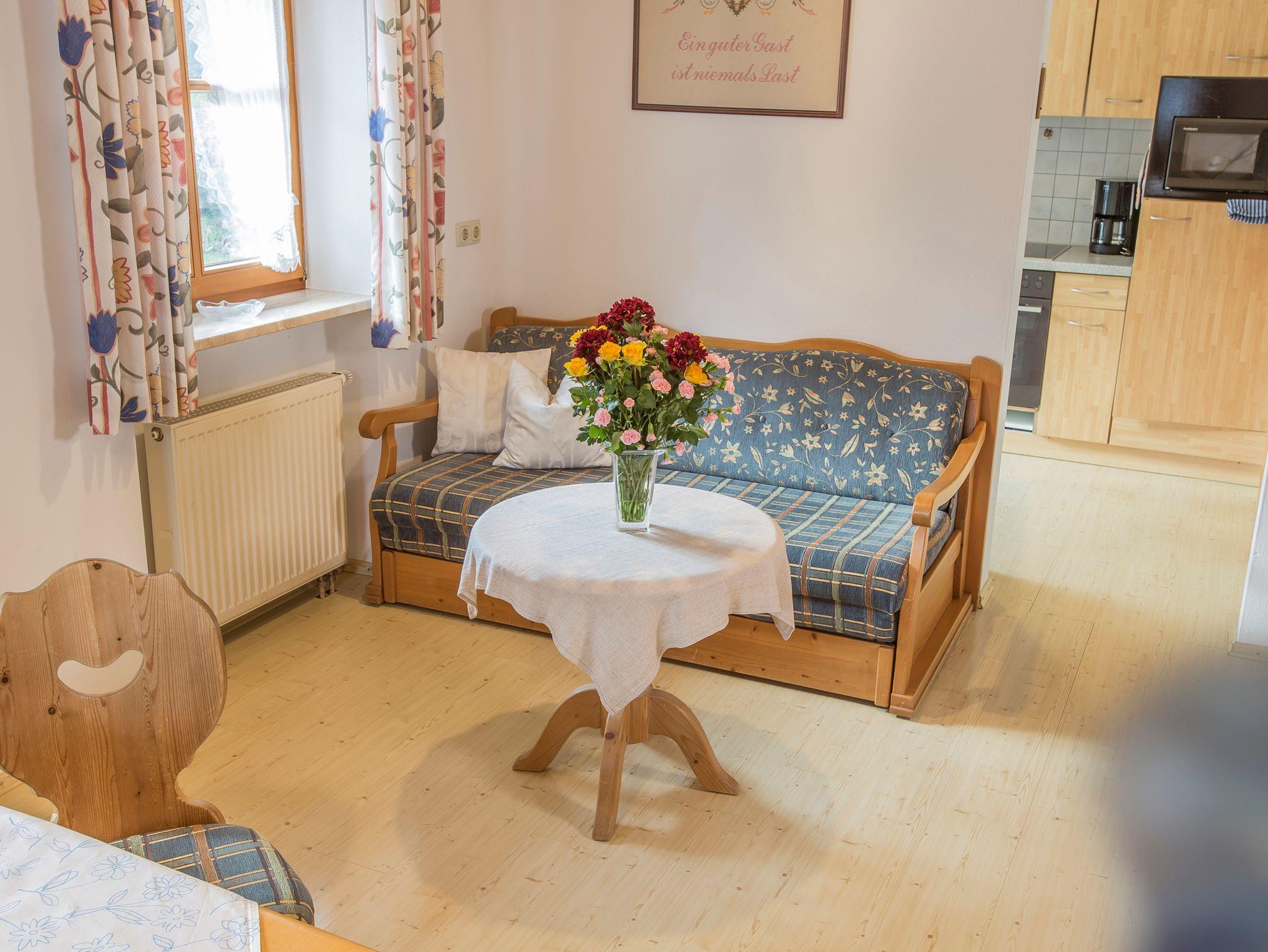 Genießen Sie die frische Bergluft auf dem Balkon oder der Terrasse, wo Sie den Blick auf die umliegende Landschaft schweifen lassen können. Für die aktiven Gäste bieten sich zahlreiche Wander- und Radwege direkt vor der Haustür an. Im Winter können Sie die nahegelegenen Skigebiete erkunden und sich nach einem aufregenden Tag in der Natur entspannen.Ob mit oder ohne Anstrengung am Tag, ein heißer Jagatee oder Glühwein am Kachelofen in der gemütlichen Stube ist eine wohlverdiente Krönung nach einem kalten Wintertag.