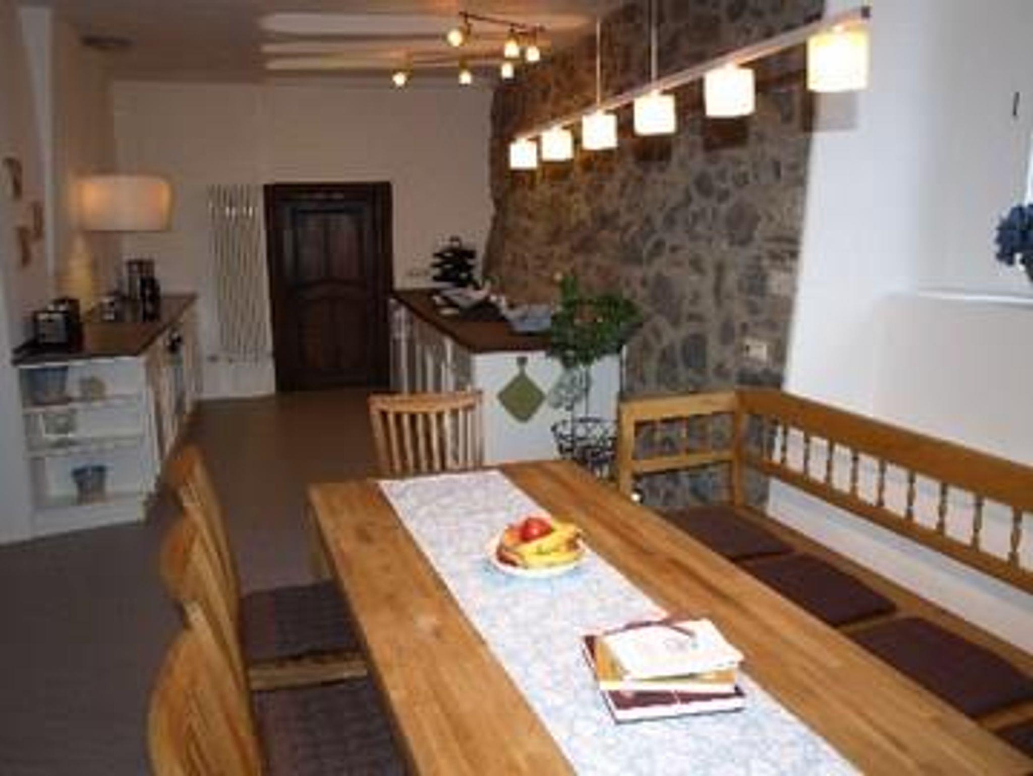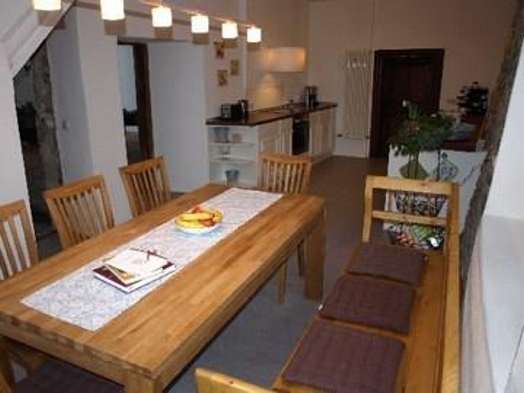 Lieben Sie Romantik, Ruhe, Natur und frische Luft? Dann sind Sie im denkmalgeschützten Junkerhaus genau richtig. Dieses dient Ihnen als der optimale Ausgangspunkt für Ihren Urlaub und ist die Basis für erholsame Tage. 2009 wurde das Junkerhaus zu neuem Leben erweckt und auf 4-Sterne Niveau komplett neu eingerichtet. Das Junkerhaus bietet 8 Zimmer und 2 Bäder. Die Ausstattung: - 2 separate Kinderzimmer - jeweils ein Schlafsofa für weitere 2 Personen in den zwei Wohnzimmern - 32-Zoll LCD-SAT-Fernseher, DVD, Stereo-Anlage - WLAN, Telefon, Anrufe ins deutsche Festnetz kostenlos - Wäscheausstattung für Küche, Haarfön - auf Anfrage ein zusätzliches Kinderreisebett. Im Erdgeschoss befindet sich eine wohnliche Empfangshalle mit einem Eßtisch(Rittersaal) sowie eine große Wohnküche mit einem weiteren Eßtisch die mit allem ausgestattet ist, was zu einer guten Küche inkl. Geschirrspüler und zwei Kinderstühlen gehört. Aussenbereich: - im Aussenbereich mehrere Sitzgruppen - im Schatten, in der Sonne sowie einen Grill - Carport für einen PKW / Motorräder und einen Stellplatz neben dem Carport.