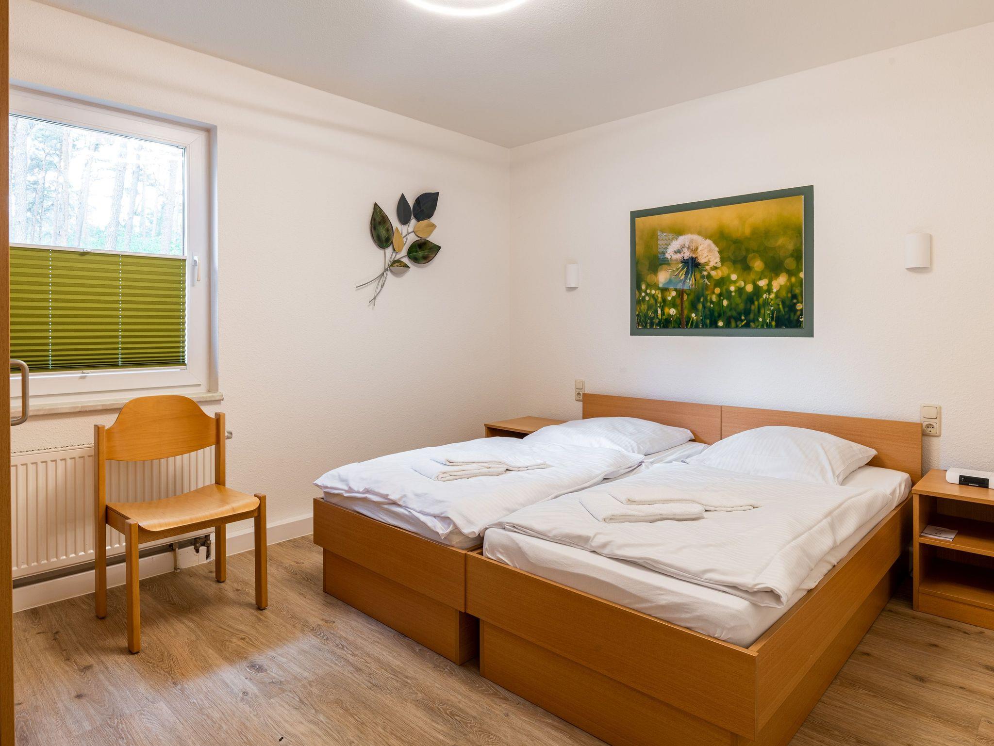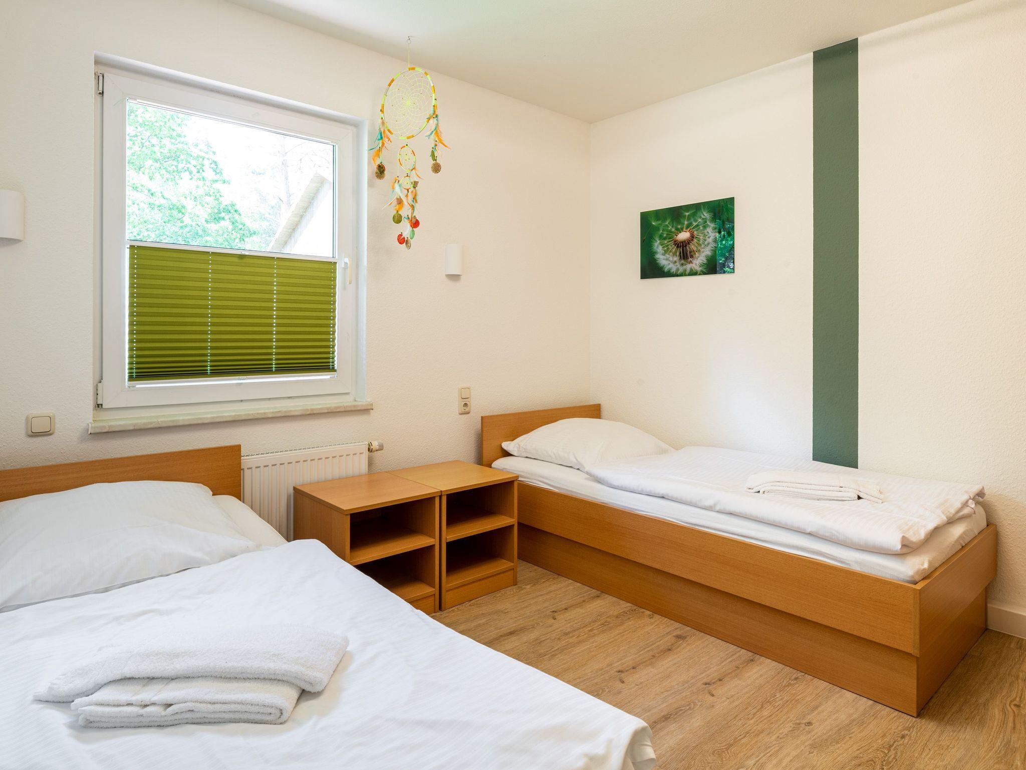 Wir bieten Ihnen drei eingeschossige, barrierefreie Ferienhäuser mit einer Größe von jeweils 69 m² und einer Bettenkapazität für jeweils vier Personen (zwei getrennte Schlafzimmer à zwei Personen - die Einzelbetten können zu einem Doppelbett zusammengeschoben werden). Jedes Ferienhaus liegt hell und ruhig eingebettet in das IDA Integrationsdorf.