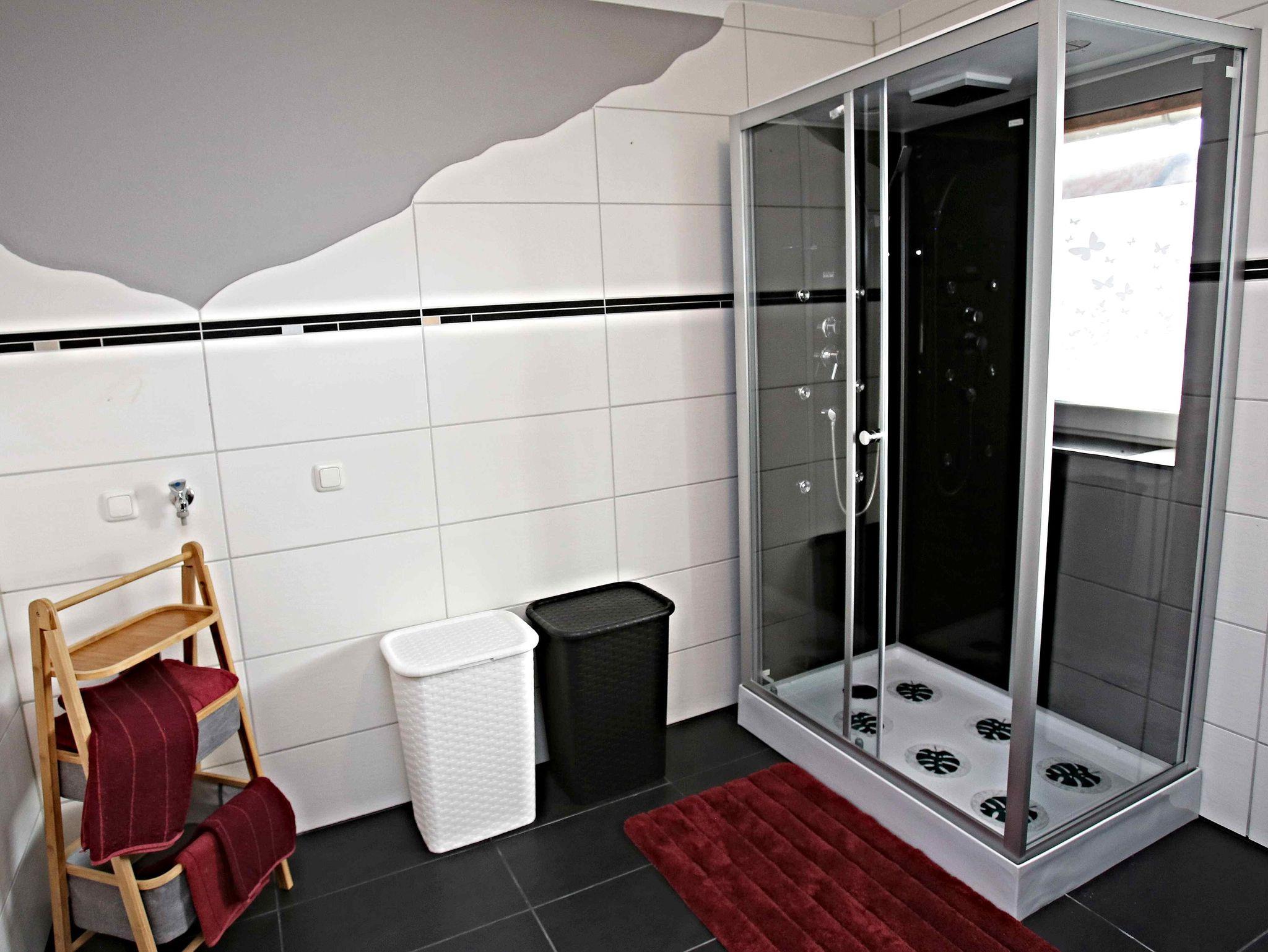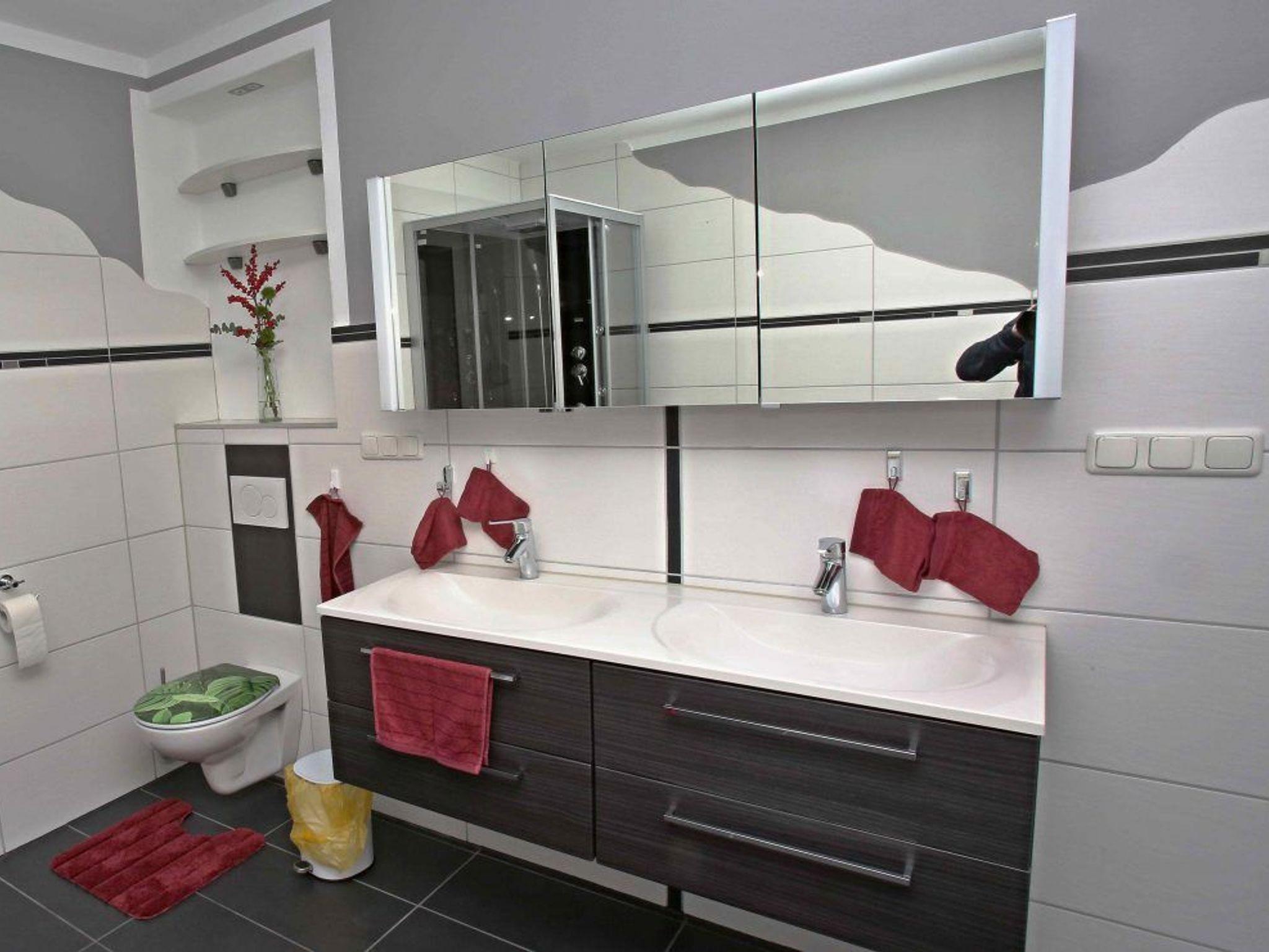 2. Zimmer: großes Tageslicht Badezimmer mit 2 Waschbecken, großern Spiegelschrank, WC, neuer großer Dusche, Ablage Buttler, neue Handtücher, Waschlappen, Badeteppiche, Fön, Wäscheständer, Besen und Kehrblech incl.