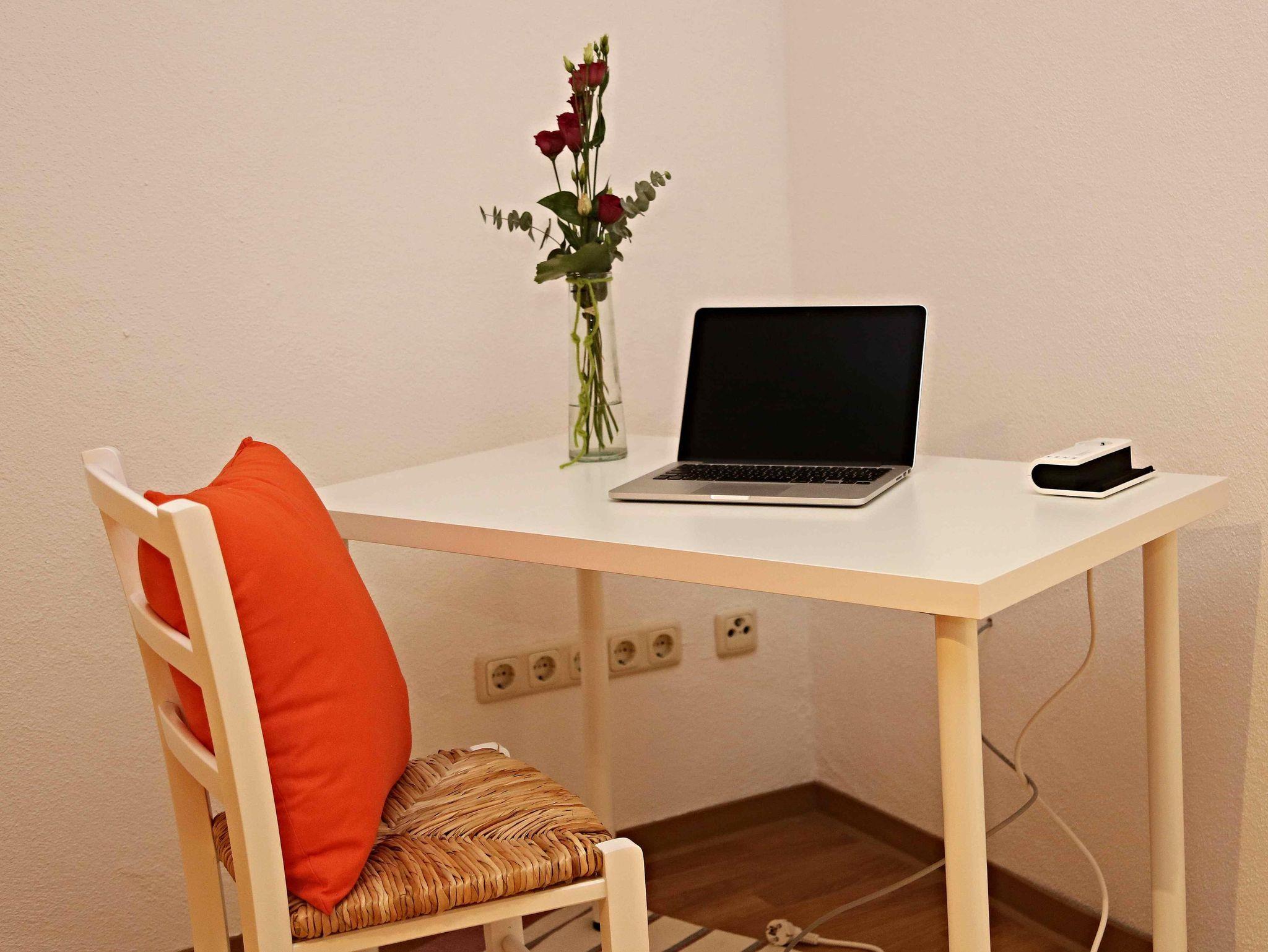 zusätzlich extra Schreibtisch mit Lan-Anschluß und Schreibtischlampe dimmbar mit 1x Ladestation für einen USB Port, Stuhl