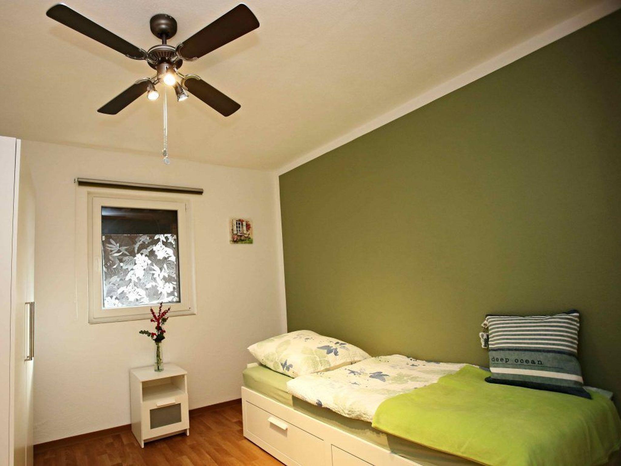 3. Zimmer: Einzelbett, großer Schrank, Ventilatoren Lampe, Spiegel, Nachttisch, Nachttischlampe dimmbar und mit 1x Ladestation für einen USB Port, Matratze, Bettdecke, Kopfkissen incl. Bezug, Zusatzdecke, extra Kissen wenn gewünscht, alles neu