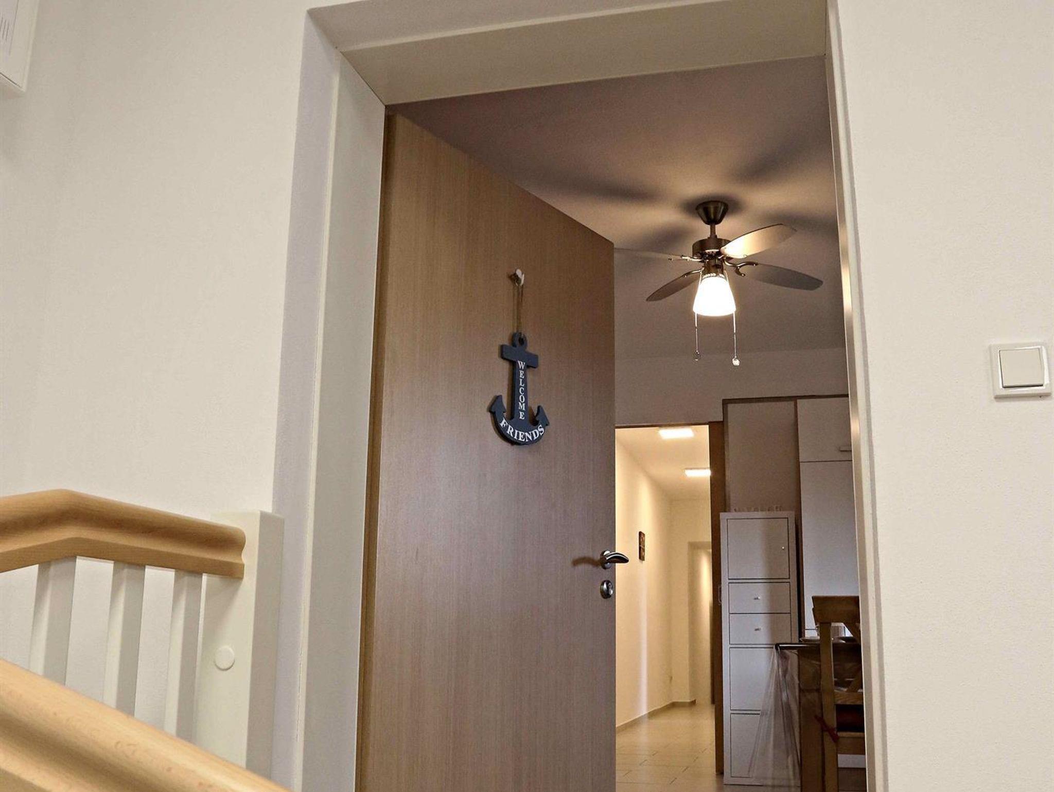 Abgeschlossene FeWo im 1. Stock. Separater Zugang über eine Treppe, großer Eingangsbereich mit Garderobe und Schuhablage über eine weitere Treppe erreicht der Gast den Eingang zur Wohnung.