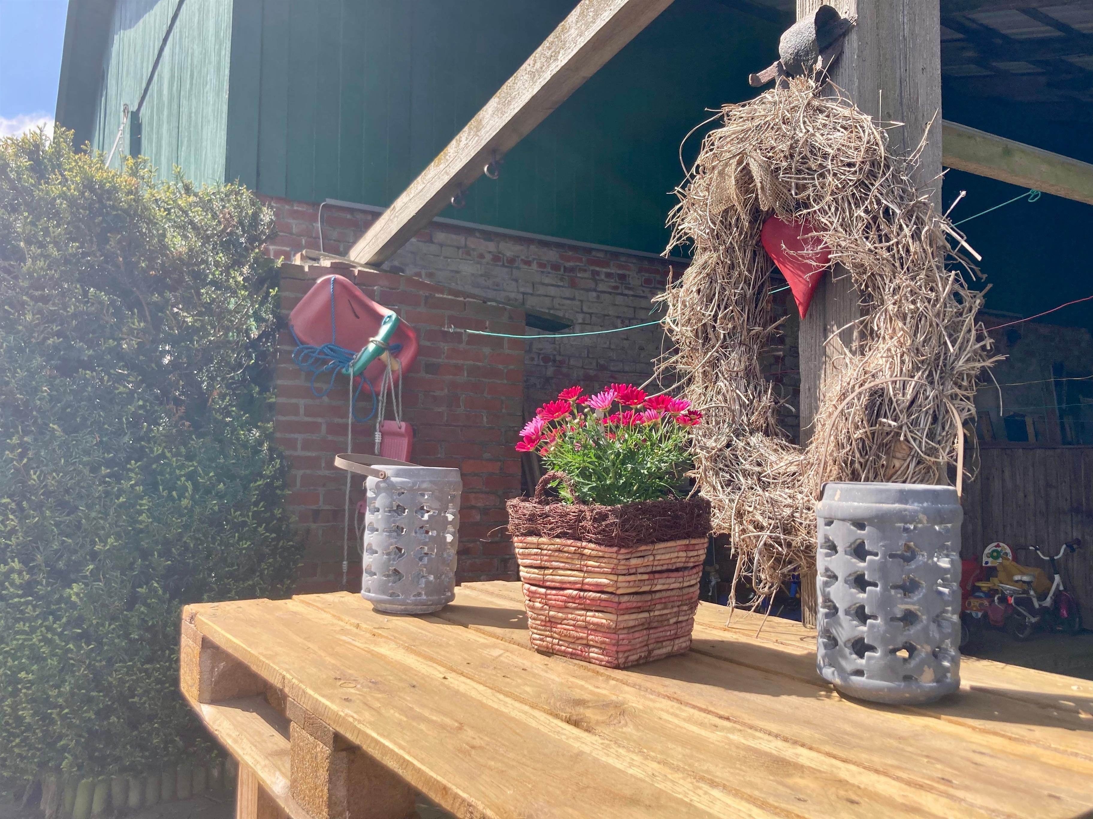 Diese Ferienwohnung verfügt über eine eigene sicht- und windgeschützte Terrasse mit Mobiliar und Elektrogrill. Weiterhin steht dieser Wohnung mit einer weiteren Wohnung im Obergeschoß eine große, überdachte Terrasse in angrenzender Scheune zur gemeinsamen Nutzung zur Verfügung (Holzkohlegrill vorhanden).