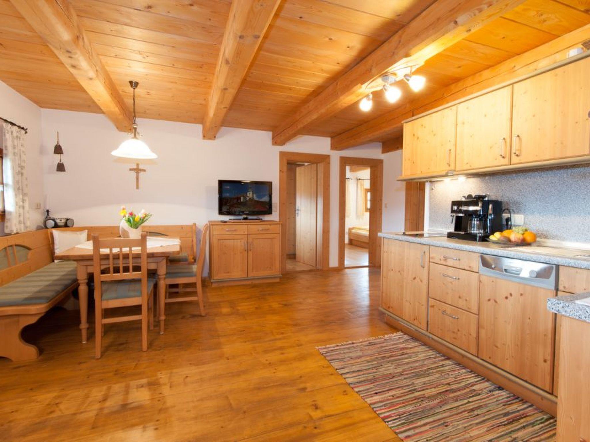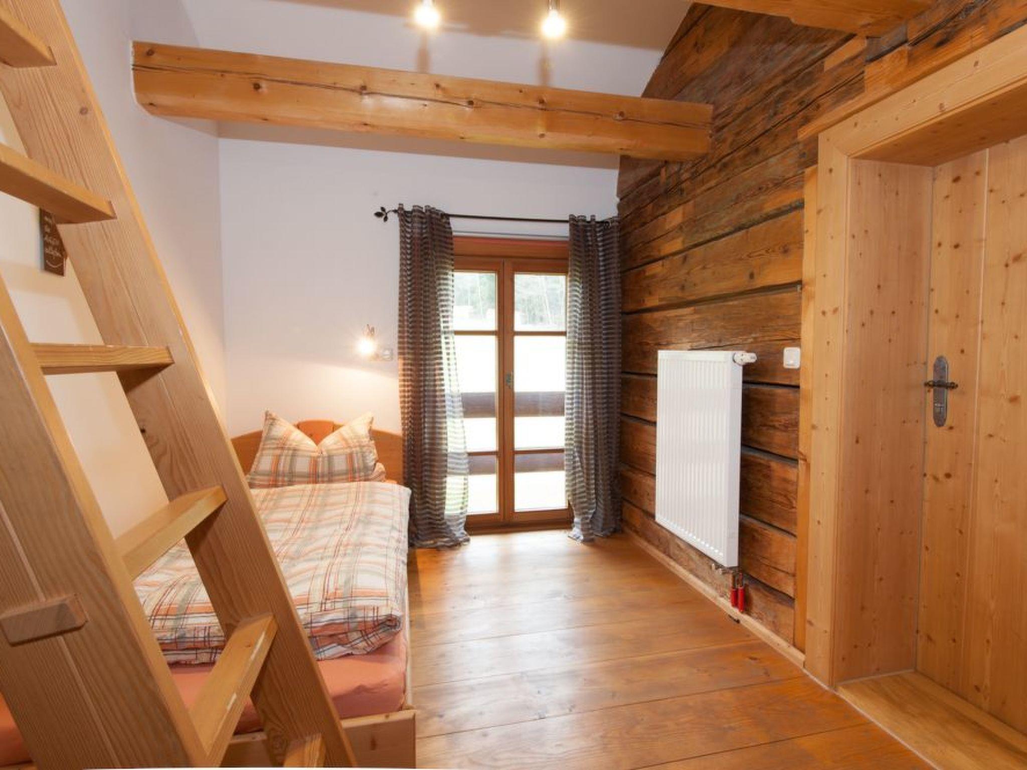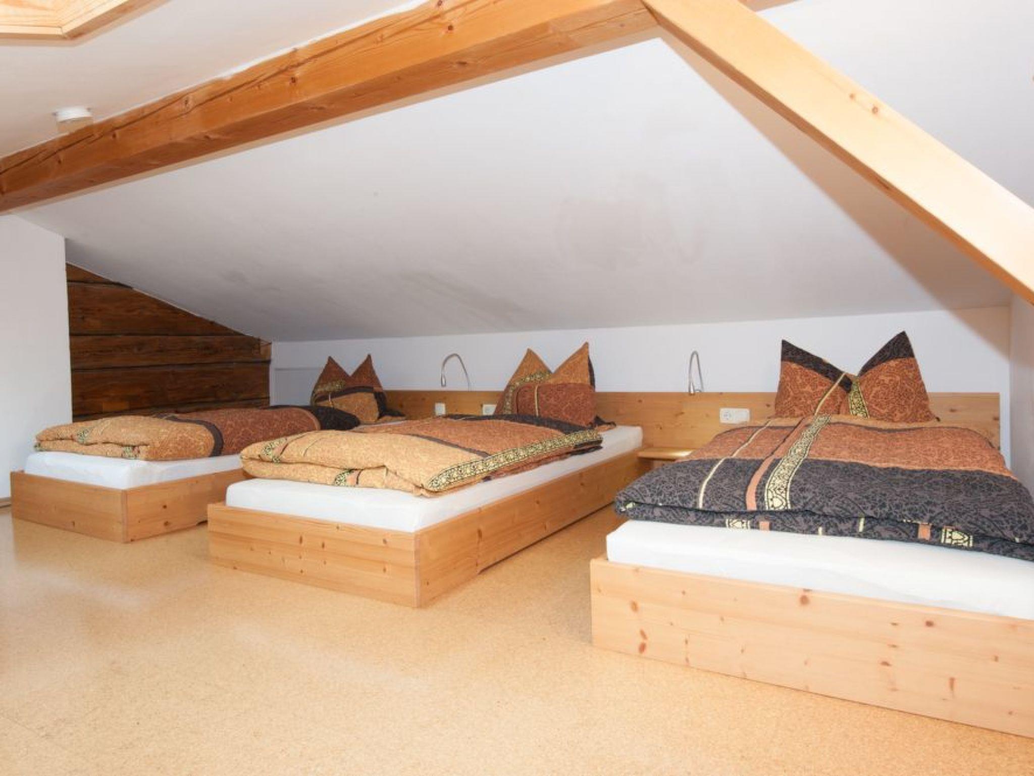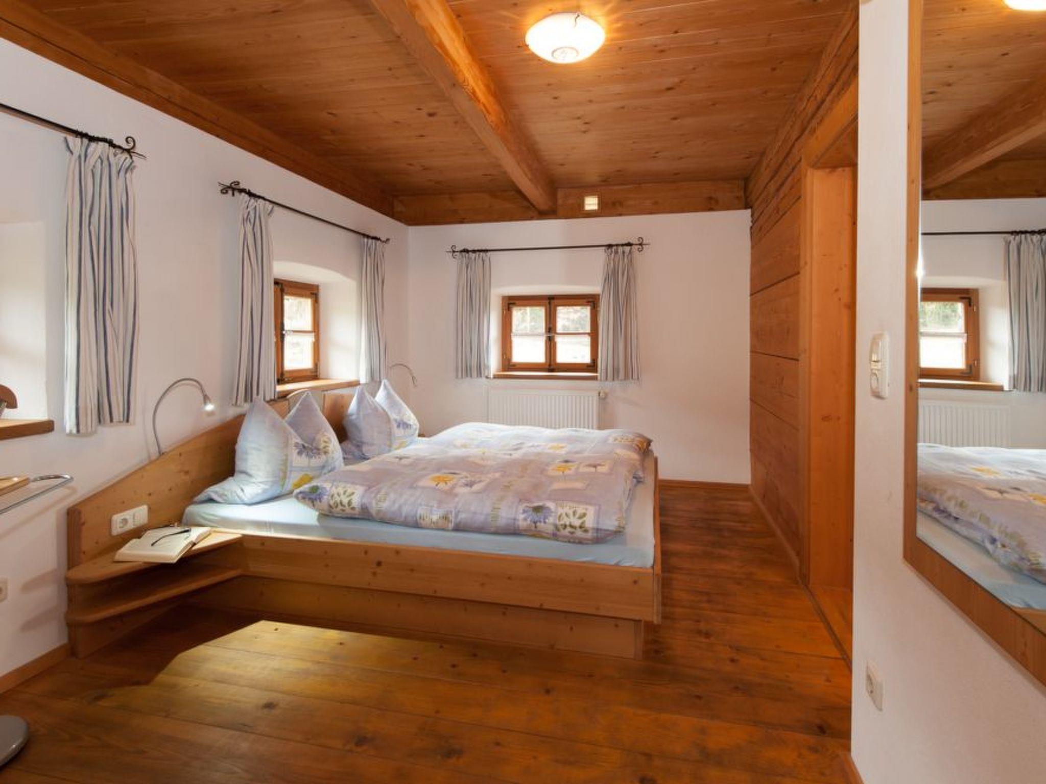 Our holiday home You live in a listed "Austragshaus" from 1850, which used to serve as a retirement home for the old farmers after the farm was handed over. They looked after themselves with one or two cows. Our "Austragshaus" was still inhabited until the early 1960s. The building was demolished in 2000 and completely rebuilt at a different location next to the farm. In order to make the old wooden house habitable again, the old beams were professionally repaired and partly renewed.three holiday flats with additional roof galleries, lots of solid wood and a large lounge with tiled stove were then very elaborately converted.the holiday home is only rented completely to groups and families and offers space for 10 - 15 people, through the separate flats there is enough privacy and retreats.on the ground floor of the holiday home is the common room with tiled stove. In this room is another fully equipped large kitchen, which you can also use.the sauna with relaxation room and solarium is located in the basement of the house.the farmhouse parlour45 sqm, suitable for 2 - 4 people and divided into: