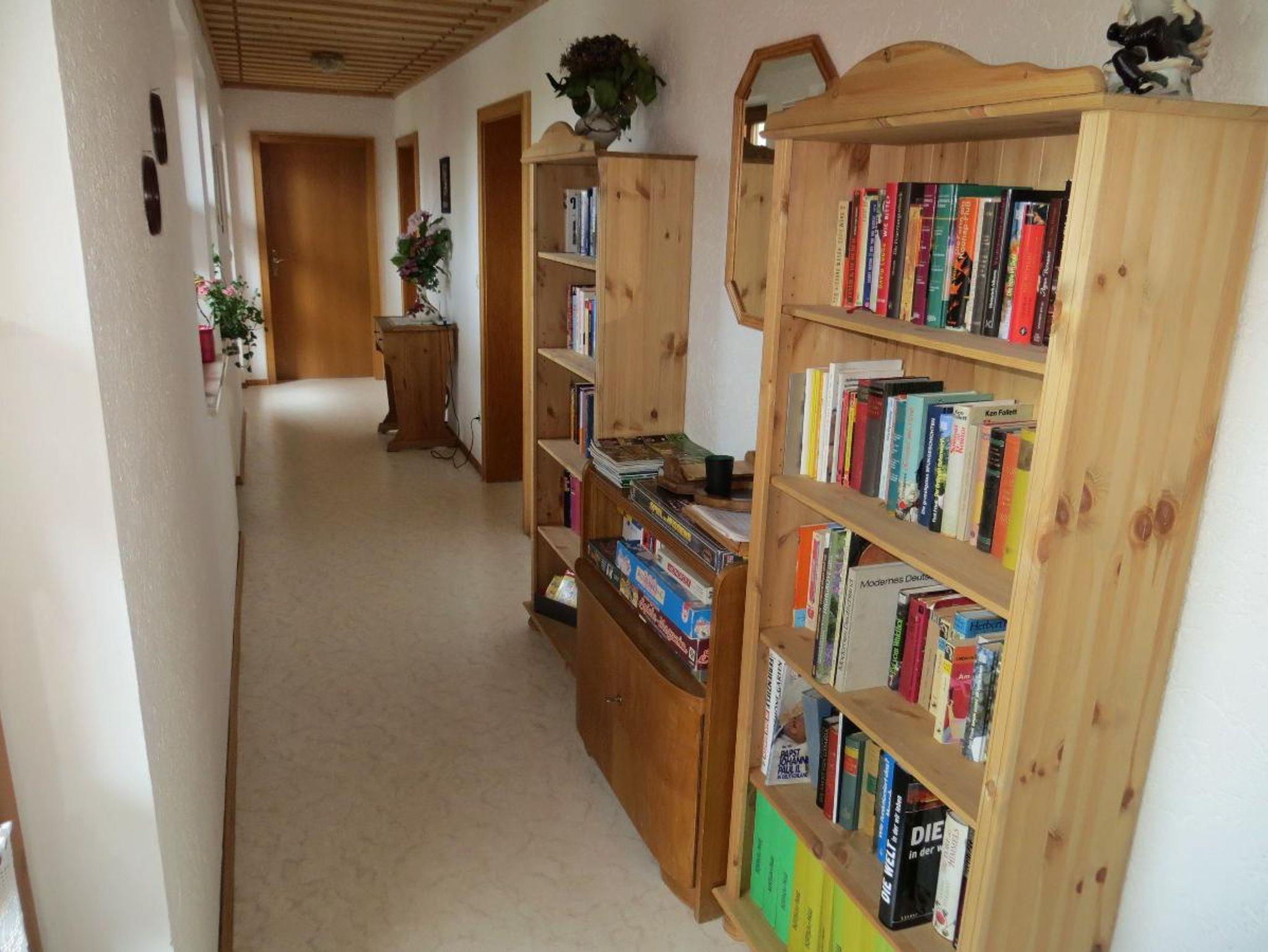 Zur Wohnung gehört ein Balkon von dem Sie einen schönen Blick in unseren Garten und auch zu den umliegenden Wiesen haben. Mit viel Glück kann man in den Morgen oder Abendstunden auch mal ein paar Rehe oder Feldhasen beobachten.