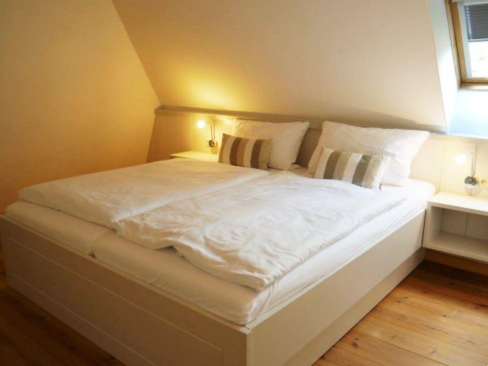 Die Ferienwohnung Skyerne im ersten Obergeschoss bietet auf ca. 80 qm ausreichend Platz für bis zu 4 Personen und garantiert einen unvergesslichen Urlaub. Die hochwertige Ausstattung sorgt für jeglichen Komfort, während große Velux-Fenster den Raum mit Licht durchfluten und einen schönen Blick in den Innenhof bieten.