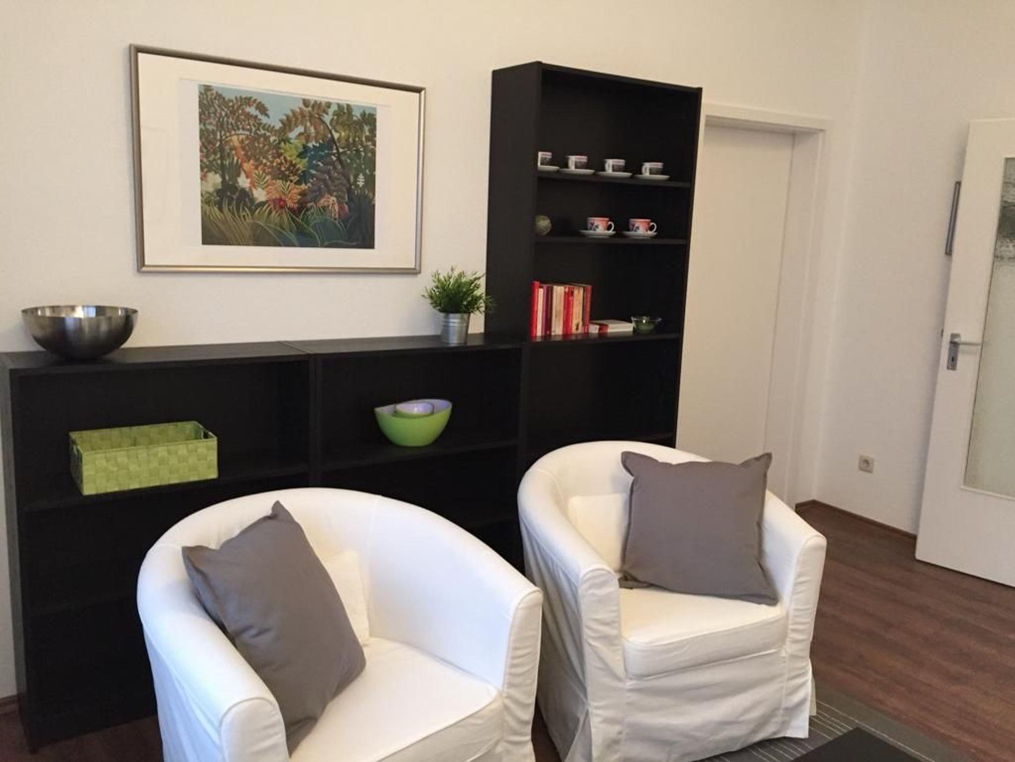 Die Wohnung liegt im Haus 38 im Erdgeschoss und verfügt über zwei Doppelzimmer, ein gemeinsames Bad sowie eine gemeinsame voll ausgestattete Küche zur Selbstversorgung. TV und kostenloses WLAN ist vorhanden.