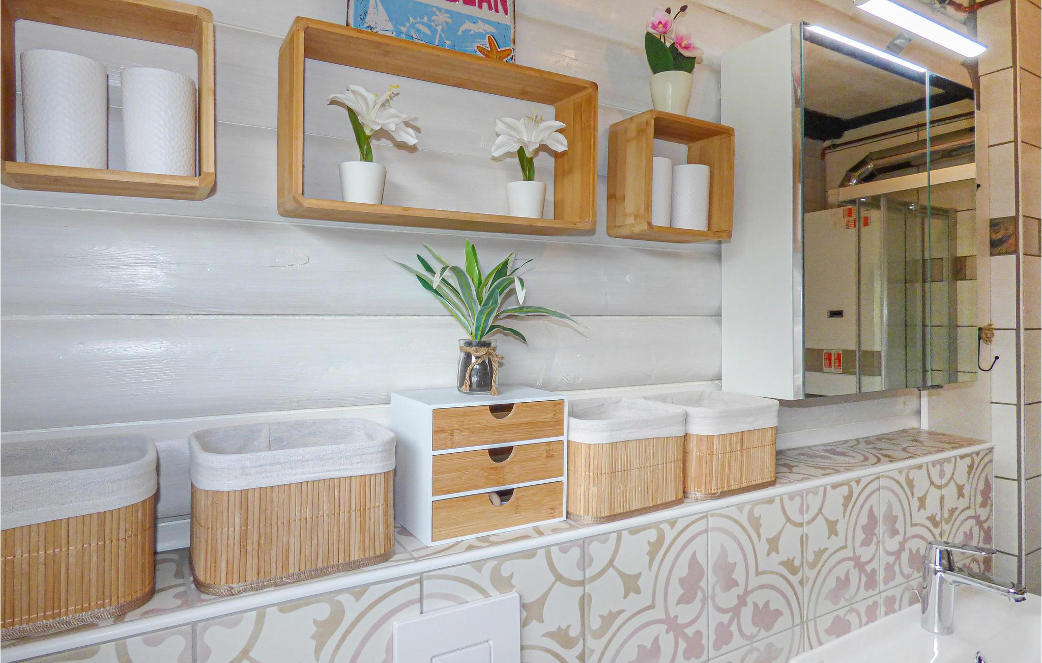 I det veludstyrede køkken med opholdsområde kan du fremtrylle et lækkert måltid til din familie. Lejligheden har to soveværelser med en dobbeltseng eller en enkeltseng og en køjeseng. Fladskærms-tv'erne i den hyggelige stue og i det andet soveværelse (her også med DVD-afspiller) tilbyder underholdning. Gennem det store panoramavindue har du en betagende udsigt over det omkringliggende bjerglandskab.