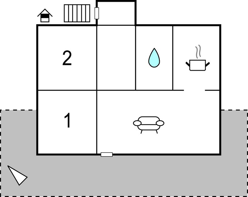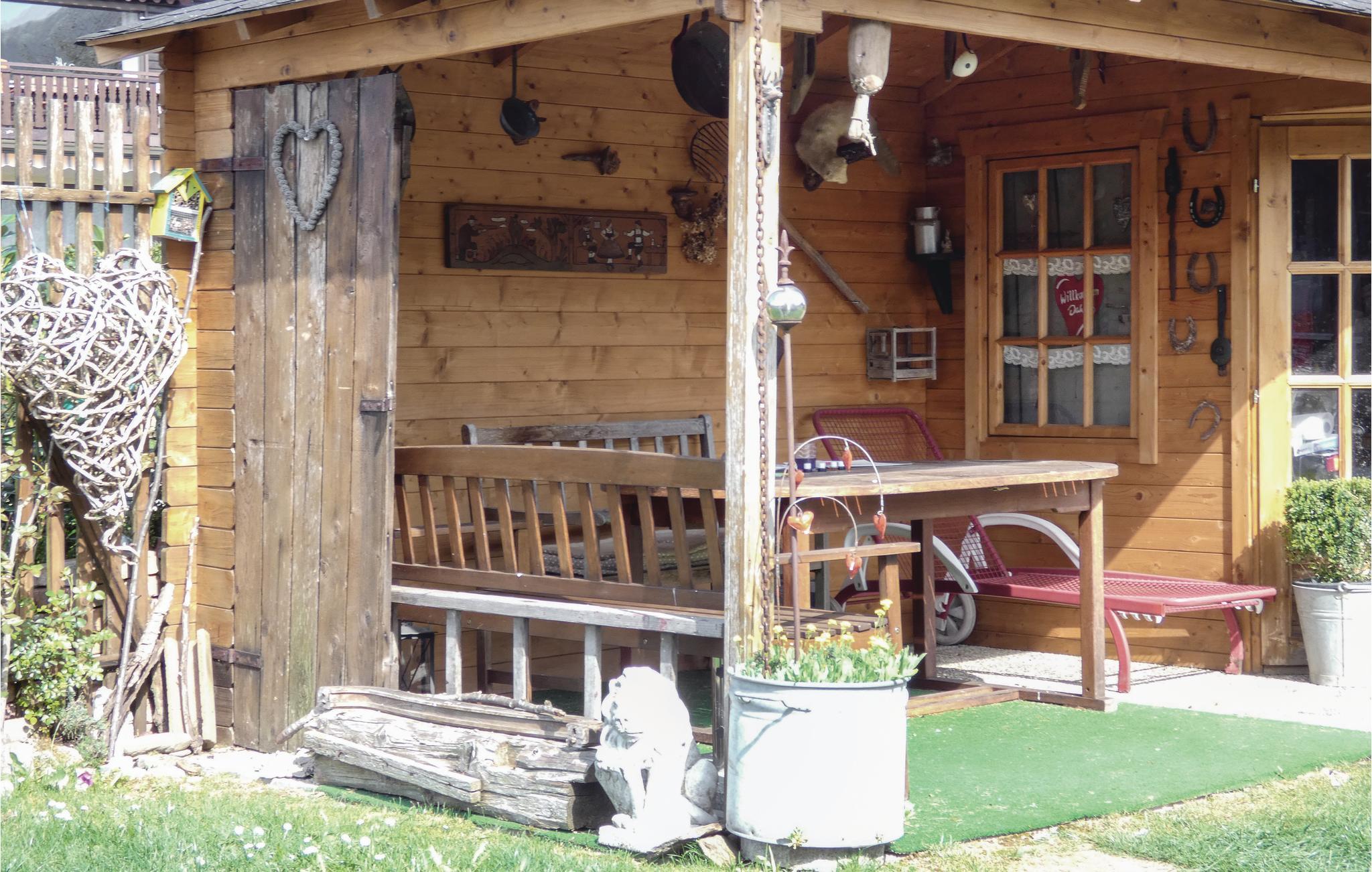 I haven inviterer den lille hytte med havemøbler og liggestole samt en grill dig til at tilbringe hyggelige timer.