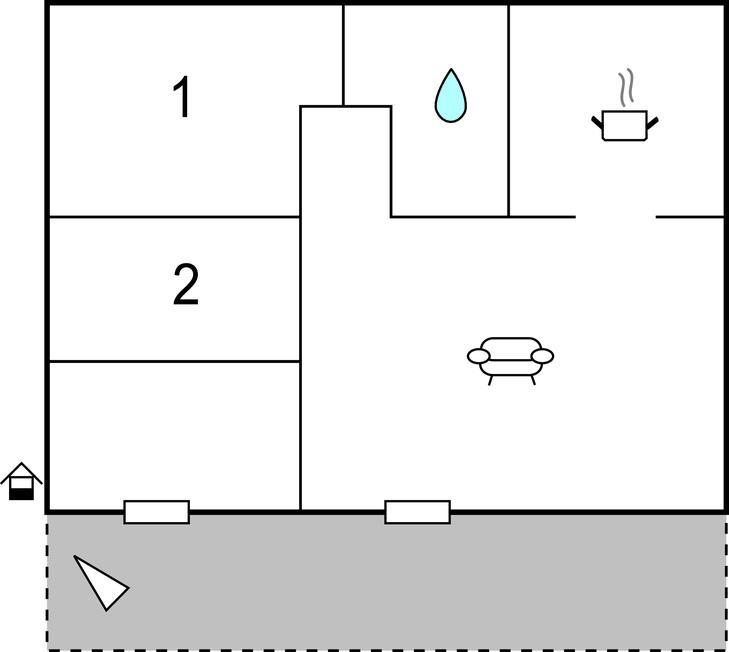 Ferielejligheden består af en opholdsstue, et fuldt udstyret køkken med opholdsområde samt to soveværelser og et badeværelse.