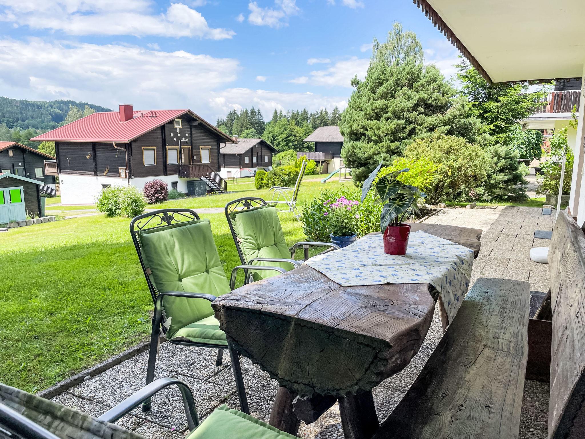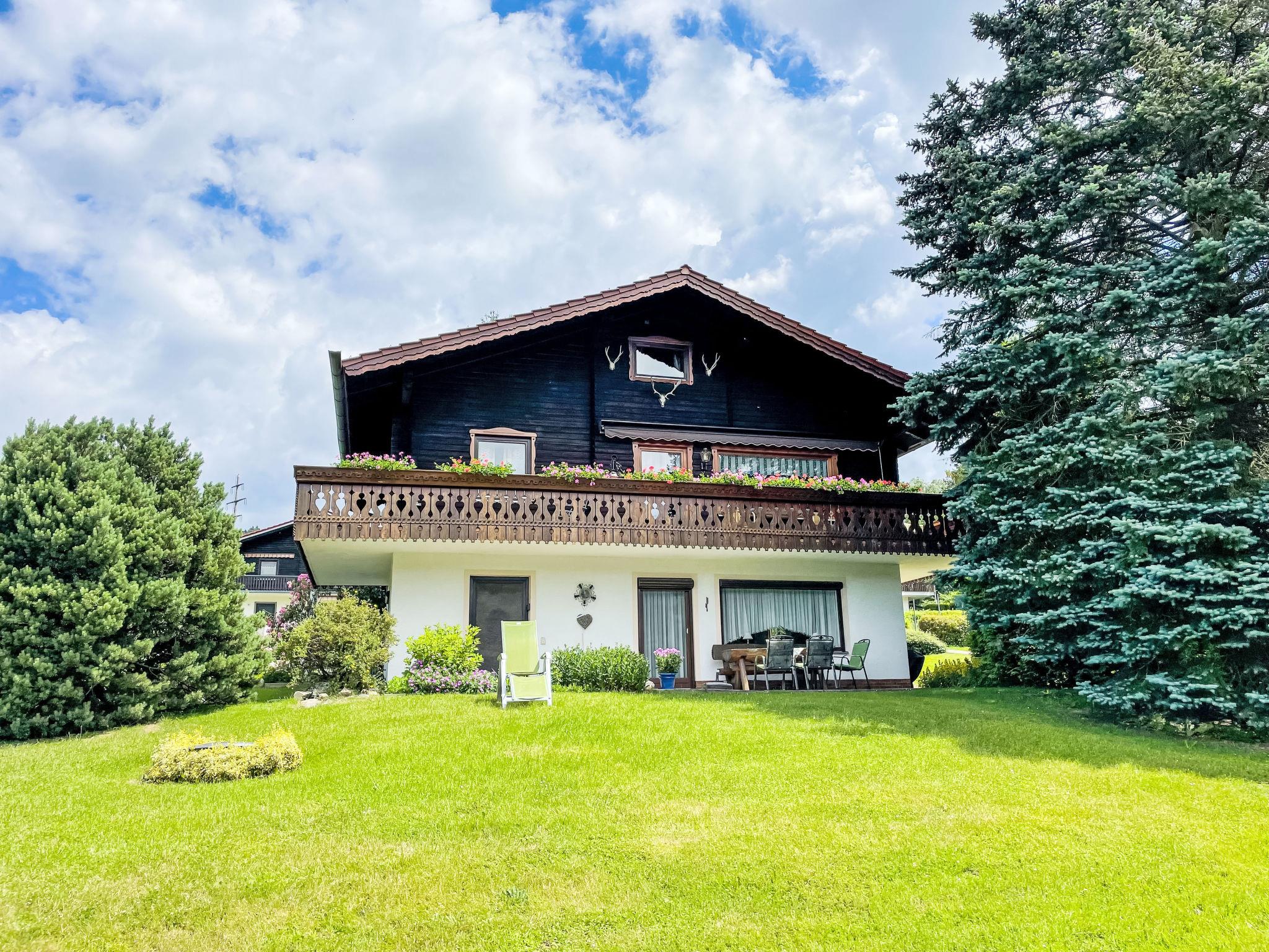 Child friendly holiday village "Am Hohen Bogen", 5 m a.s.l.. In the district of Kummersdorf, outside the resort, 3 km from the centre of Arrach, on a slope, traffic calmed area, 300 m from the edge of the forest, 100 m from the lake, 9 km from the skiing area. For shared use: volleyball, children's playground (slide, swing, sandbox). In the complex: table tennis (extra). Central heating system. Parking at the house. Shop 3 km, grocery 3 km, supermarket 3 km, restaurant 3 km, bakery 3 km, bus stop "Großmühle Abzw. Hohenwarth" 650 m, railway station "Hohenwarth" 1.5 km, grass beach "Seepark Arrach" 5 km, outdoor swimming pool 10 km, thermal baths 10 km, bathing lake "Seepark Arrach" 5 km. Golf course (9 hole) 6 km, tennis 6 km, riding stable 800 m, chair lift 9 km, skisport facilities 9 km, slopes 9 km, ski rental 11 km, ski school 9 km, cross country ski track 11 km. Nearby attractions: Bayerwald-Tierpark Lohberg 15 km, Spielbank Bad Kötzting, Fun-Park Neukirchen, Tiergarten Straubing, Pullman-City. Well-known ski regions can easily be reached: Eck 6 km, Am Hohen Bogen 9 km, Arber 29 km. Hiking paths: Arberregion. Please note: car recommended. Groups of teenagers on request only. Boating, fishing 500 m. The holiday village consists of an apartment house and two-storey holiday houses with shared lawns and play areas. The distance from the individual houses to the natural swimming lake is 50 – 400 m.