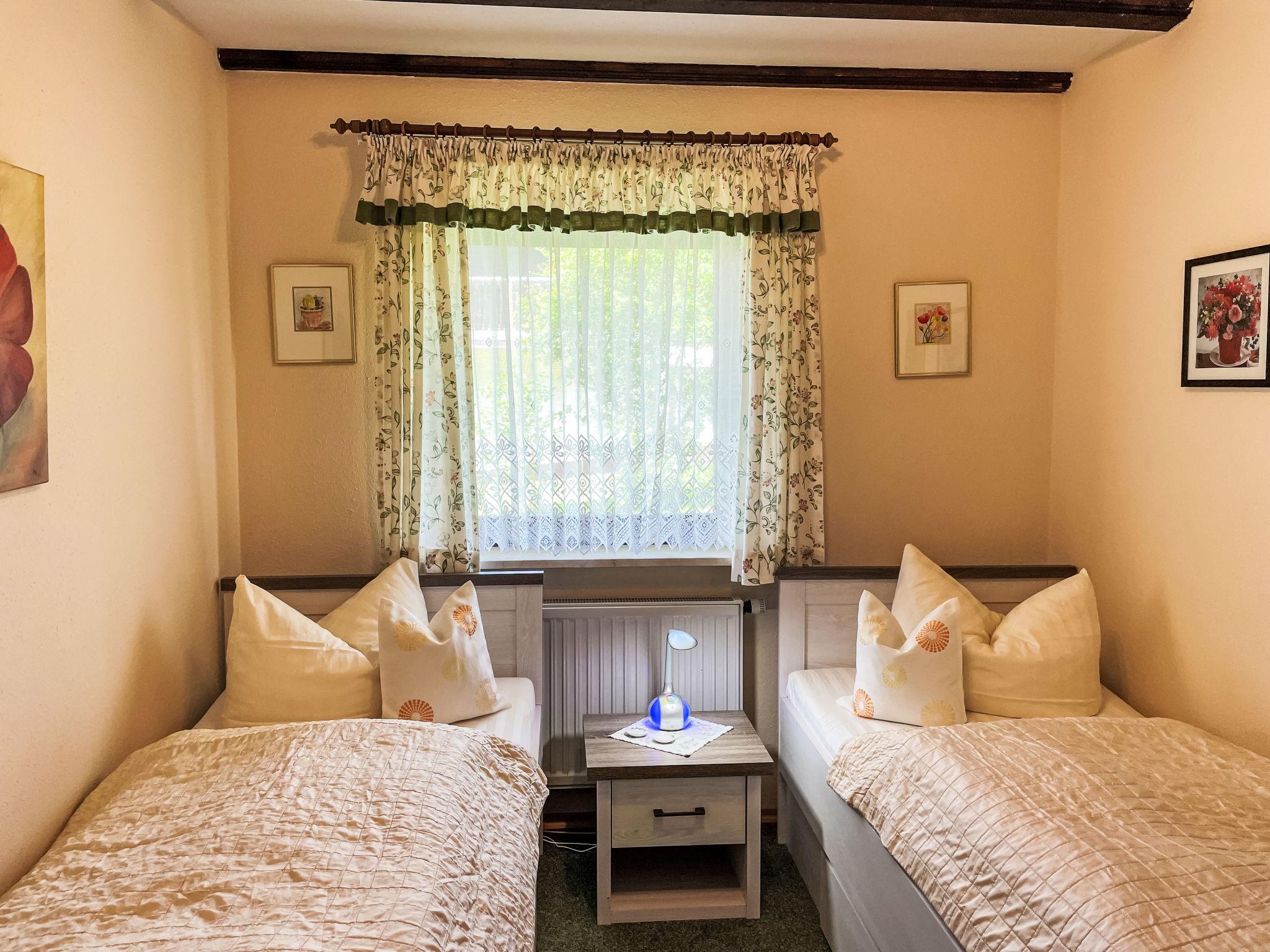 3-room apartment 75 m2, on the ground floor. Cosy furnishings: living room 35 m2 with satellite TV (flat screen), hi-fi system. Exit to the garden, to the terrace. 1 room 13 m2 with 1 double bed (180 cm, length 200 cm). 1 room 9 m2 with 2 beds (90 cm, length 200 cm). Open kitchen 9 m2 (4 hot plates, oven, dishwasher, toaster, kettle, microwave, electric coffee machine) with dining nook. Shower/WC. Gas heating. Large terrace 20 m2 partly roofed, garden 250 m2. Terrace furniture, barbecue (portable), sitting area. Beautiful view of the mountains. Facilities: washing machine, iron, hair dryer. Internet (WiFi, free). Please note: non-smokers only. Private entrance, smoke alarm. Lake 150m away.