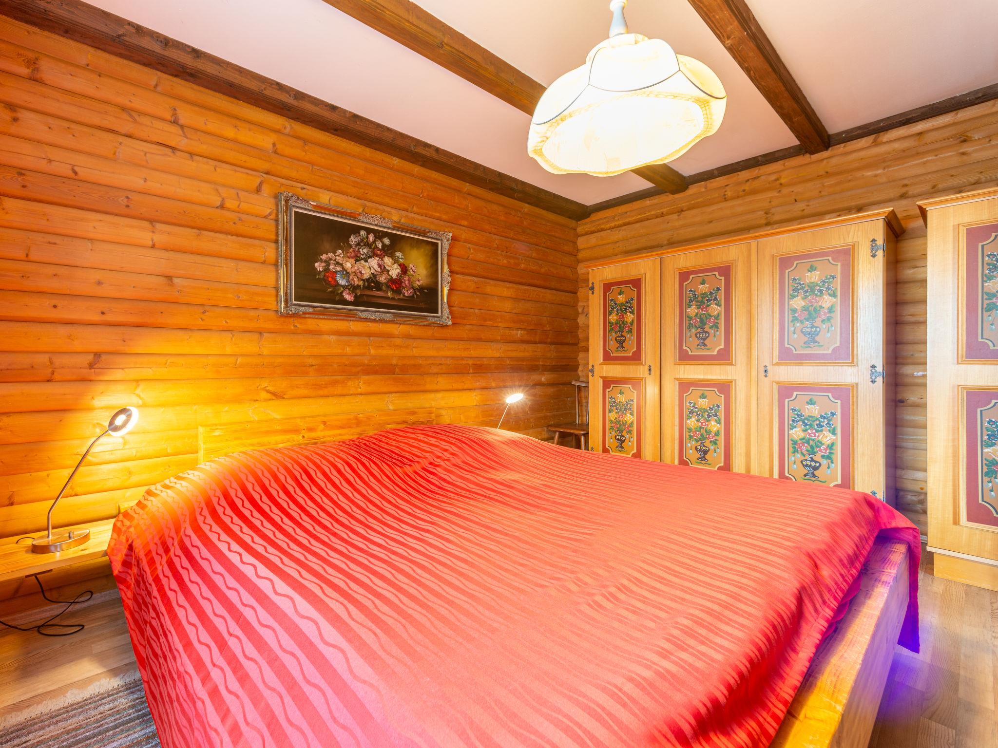 4-room apartment 90 m2 on 2 levels, on the upper floor. Cosy and wooden furniture furnishings: living room 35 m2 with satellite TV (flat screen). Exit to the balcony. 1 room 13 m2 with 1 double bed (180 cm, length 200 cm). 1 room 9 m2 with 2 beds (90 cm, length 200 cm). Open kitchen 9 m2 (oven, dishwasher, 4 ceramic glass hob hotplates, toaster, kettle, microwave, electric coffee machine) with dining table. Shower/WC. Top floor: 1 room 15 m2, with sloping ceilings with 1 double bed (180 cm, length 190 cm). Gas heating. Large balcony 20 m2. Balcony furniture, deck chairs (1). Beautiful view of the mountains. Facilities: washing machine. Internet (WiFi, free). Please note: non-smokers only. Maximum 2 pets/ dogs allowed. Private entrance, smoke alarm. Balcony partly covered. Lake 150 m.
