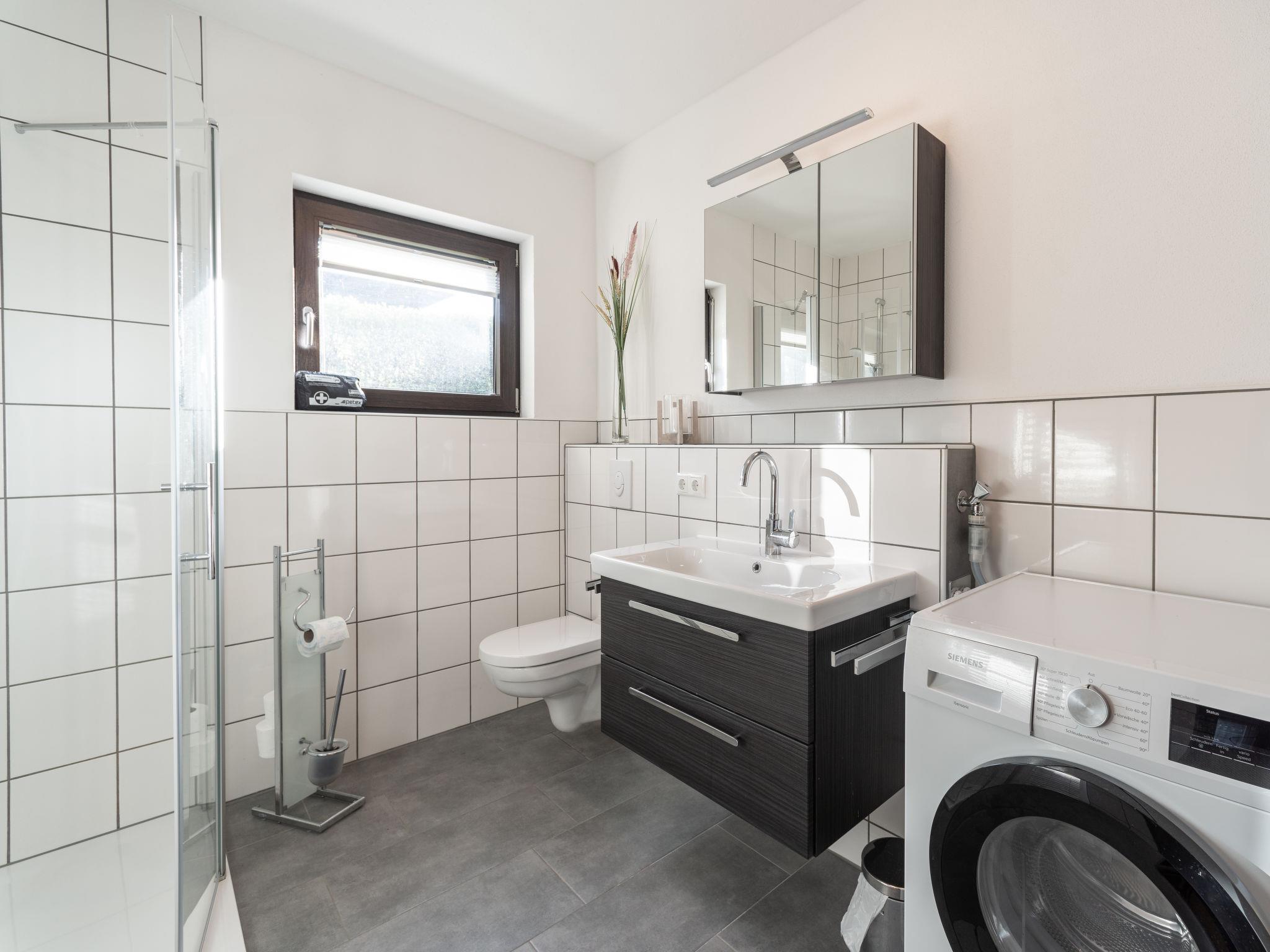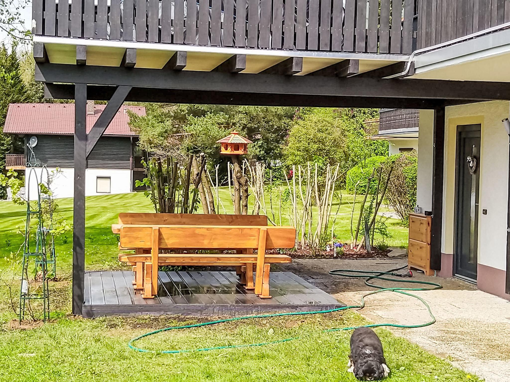 3-room apartment 75 m2, on the ground floor. Cosy furnishings: living room 35 m2 with satellite TV (flat screen). Exit to the garden, to the terrace. 1 room with 1 double bed (180 cm, length 200 cm). 1 room with 2 beds (90 cm, length 200 cm). Open kitchen (4 hot plates, oven, dishwasher, toaster, kettle, electric coffee machine) with dining nook. Shower/WC. Gas heating. Large terrace partly roofed, garden 250 m2. Terrace furniture, sitting area. Beautiful view of the mountains. Facilities: hair dryer. Internet (WiFi, free). Please note: non-smokers only. Maximum 1 small pet/ dog allowed. Private entrance, smoke alarm, fire extinguisher. Lake 50 m.
