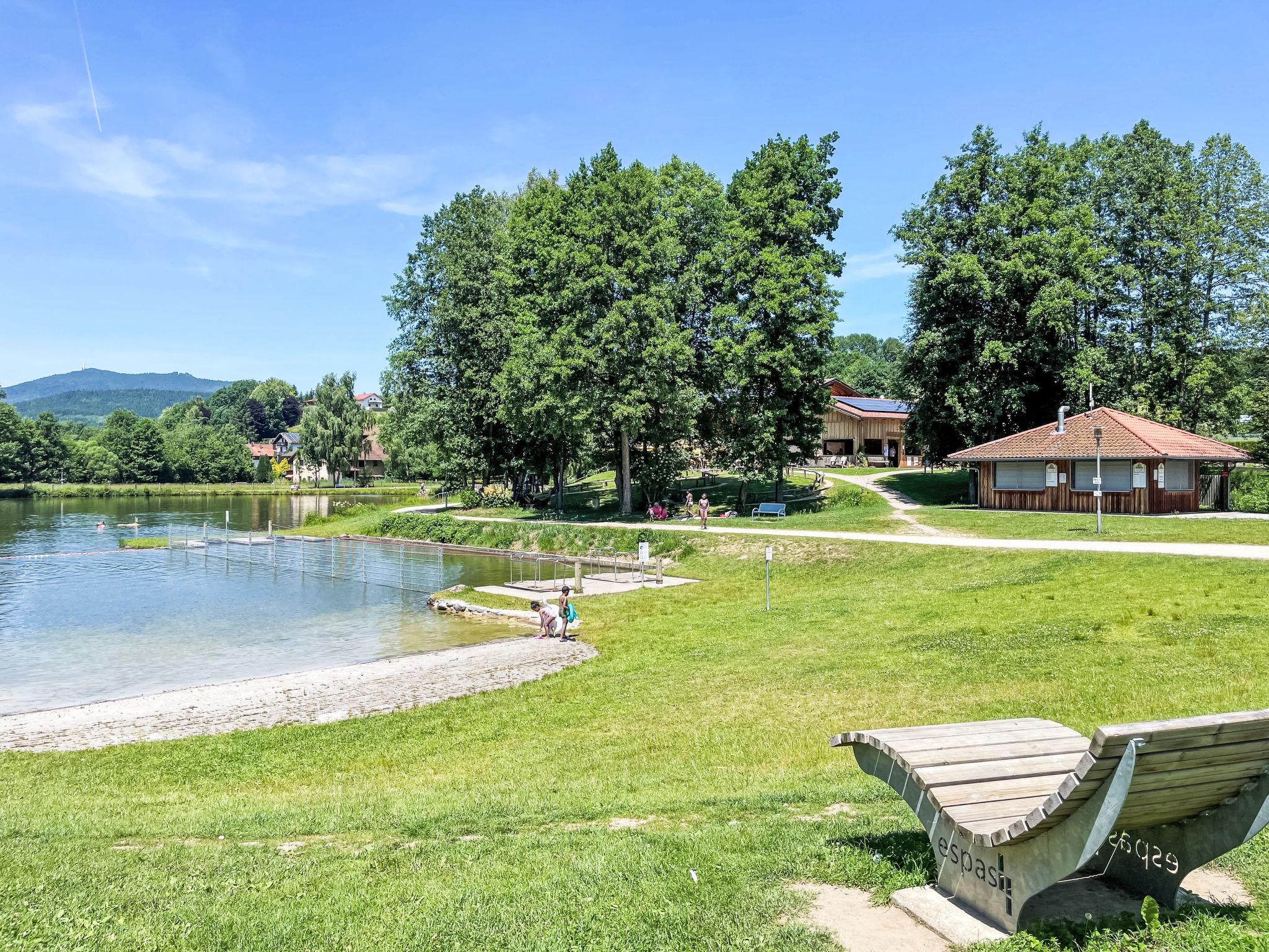 Child friendly holiday village "Am Hohen Bogen", 5 m a.s.l.. In the district of Kummersdorf, outside the resort, 3 km from the centre of Arrach, on a slope, traffic calmed area, 300 m from the edge of the forest, 100 m from the lake, 9 km from the skiing area. For shared use: volleyball, children's playground (slide, swing, sandbox). In the complex: table tennis (extra). Central heating system. Parking at the house. Shop 3 km, grocery 3 km, supermarket 3 km, restaurant 3 km, bakery 3 km, bus stop "Großmühle Abzw. Hohenwarth" 650 m, railway station "Hohenwarth" 1.5 km, grass beach "Seepark Arrach" 5 km, outdoor swimming pool 10 km, thermal baths 10 km, bathing lake "Seepark Arrach" 5 km. Golf course (9 hole) 6 km, tennis 6 km, riding stable 800 m, chair lift 9 km, skisport facilities 9 km, slopes 9 km, ski rental 11 km, ski school 9 km, cross country ski track 11 km. Nearby attractions: Bayerwald-Tierpark Lohberg 15 km, Spielbank Bad Kötzting, Fun-Park Neukirchen, Tiergarten Straubing, Pullman-City. Well-known ski regions can easily be reached: Eck 6 km, Am Hohen Bogen 9 km, Arber 29 km. Hiking paths: Arberregion. Please note: car recommended. Groups of teenagers on request only. Boating, fishing 500 m. The holiday village consists of an apartment house and two-storey holiday houses with shared lawns and play areas. The distance from the individual houses to the natural swimming lake is 50 – 400 m.