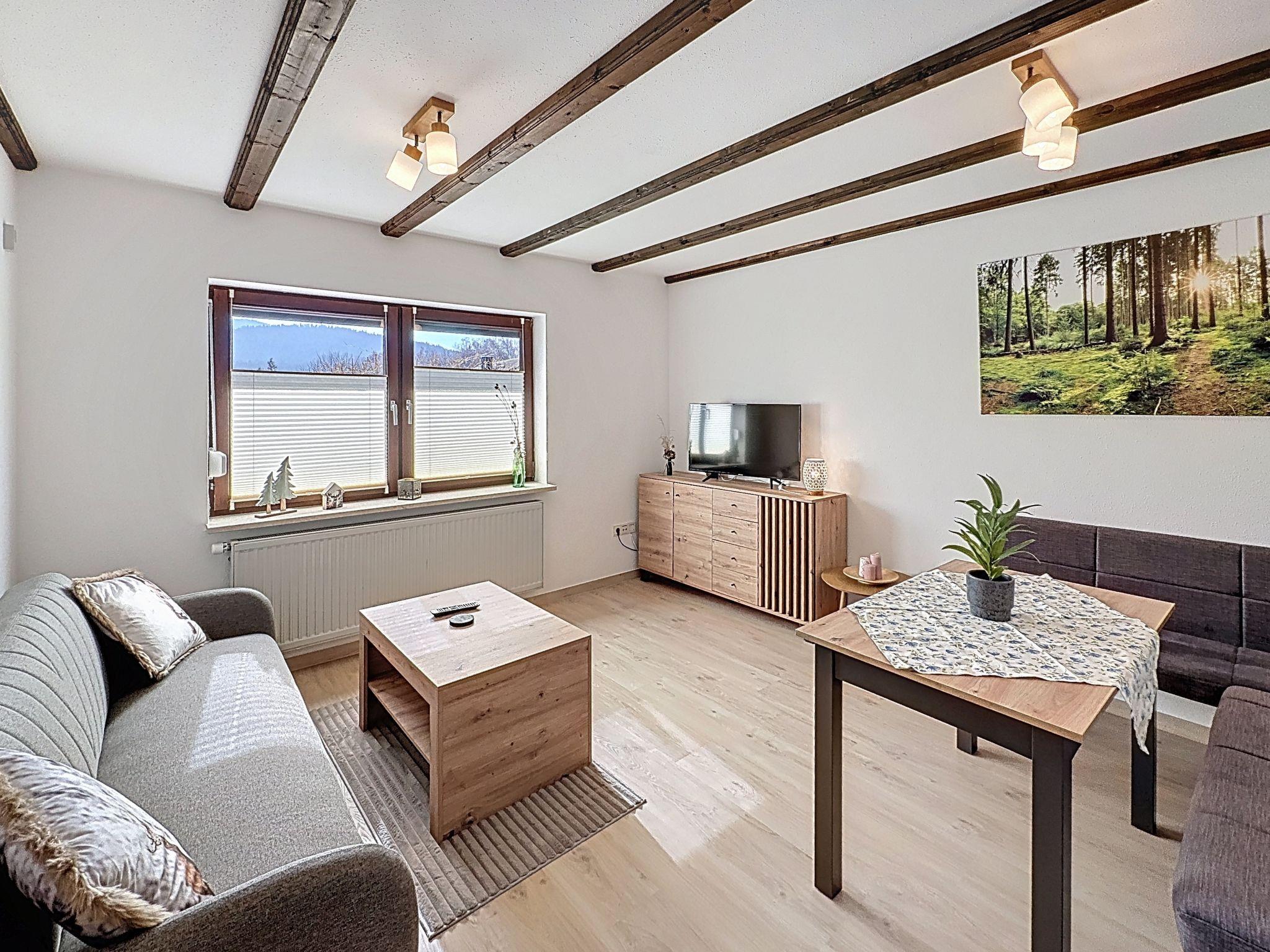 "Franzi 3", 2-room apartment 38 m2, on the ground floor. Cosy furnishings: living/sleeping room with 1 sofabed, dining nook and satellite TV (flat screen). Exit to the terrace. 1 room with 1 double bed (180 cm, length 200 cm). Kitchenette (2 hot plates, kettle, electric coffee machine). Shower/WC. Gas heating. Small terrace 8 m2 partly roofed. Terrace furniture, barbecue (portable). Beautiful view of the mountains. Facilities: Internet (WiFi, free). Please note: non-smokers only. Maximum 1 pet/ dog allowed. Smoke alarm. Lake 150 m.