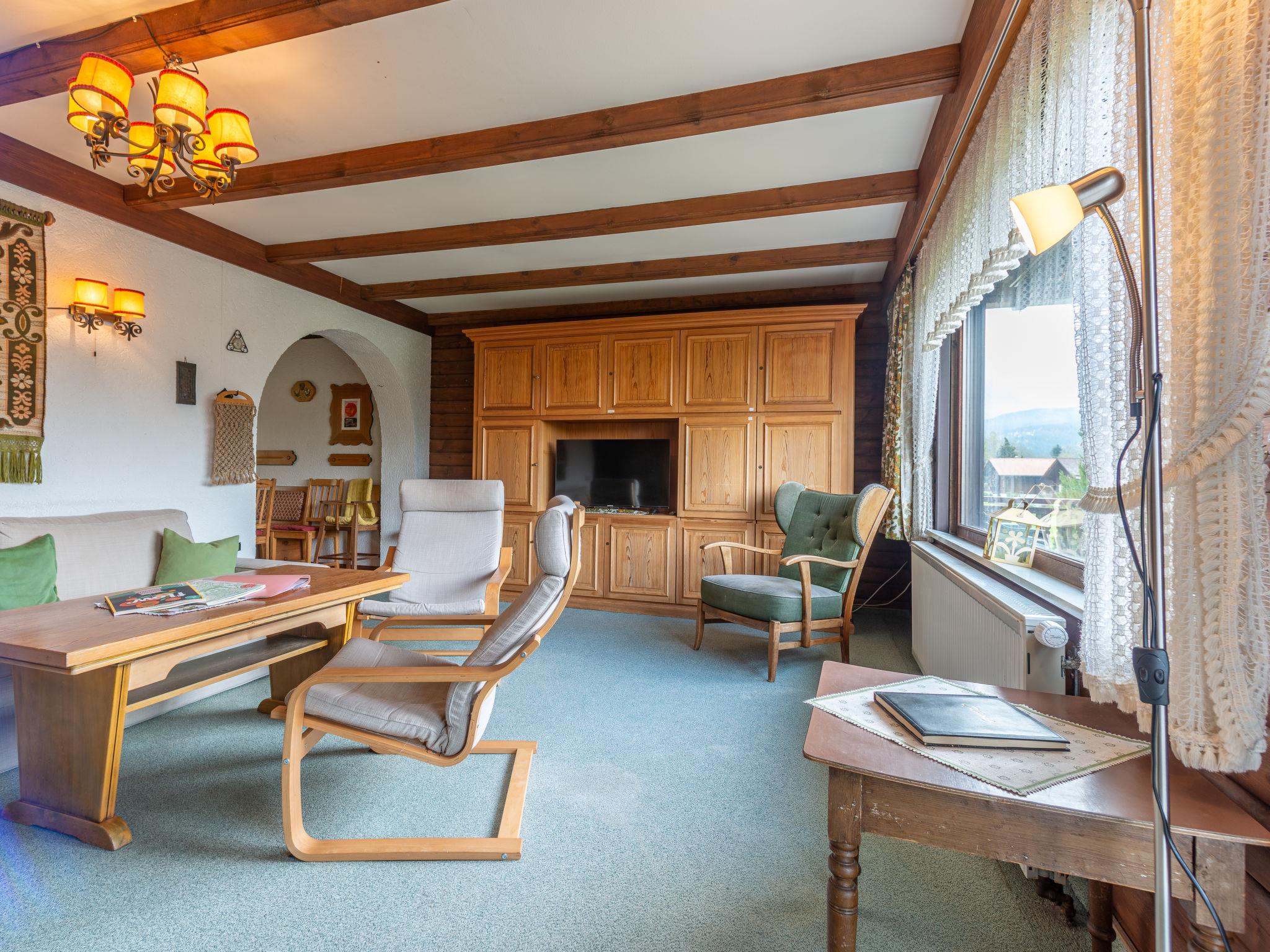 Child friendly holiday village "Am Hohen Bogen", 5 m a.s.l.. In the district of Kummersdorf, outside the resort, 3 km from the centre of Arrach, on a slope, traffic calmed area, 300 m from the edge of the forest, 100 m from the lake, 9 km from the skiing area. For shared use: volleyball, children's playground (slide, swing, sandbox). In the complex: table tennis (extra). Central heating system. Parking at the house. Shop 3 km, grocery 3 km, supermarket 3 km, restaurant 3 km, bakery 3 km, bus stop "Großmühle Abzw. Hohenwarth" 650 m, railway station "Hohenwarth" 1.5 km, grass beach "Seepark Arrach" 5 km, outdoor swimming pool 10 km, thermal baths 10 km, bathing lake "Seepark Arrach" 5 km. Golf course (9 hole) 6 km, tennis 6 km, riding stable 800 m, chair lift 9 km, skisport facilities 9 km, slopes 9 km, ski rental 11 km, ski school 9 km, cross country ski track 11 km. Nearby attractions: Bayerwald-Tierpark Lohberg 15 km, Spielbank Bad Kötzting, Fun-Park Neukirchen, Tiergarten Straubing, Pullman-City. Well-known ski regions can easily be reached: Eck 6 km, Am Hohen Bogen 9 km, Arber 29 km. Hiking paths: Arberregion. Please note: car recommended. Groups of teenagers on request only. Boating, fishing 500 m. The holiday village consists of an apartment house and two-storey holiday houses with shared lawns and play areas. The distance from the individual houses to the natural swimming lake is 50 – 400 m.
