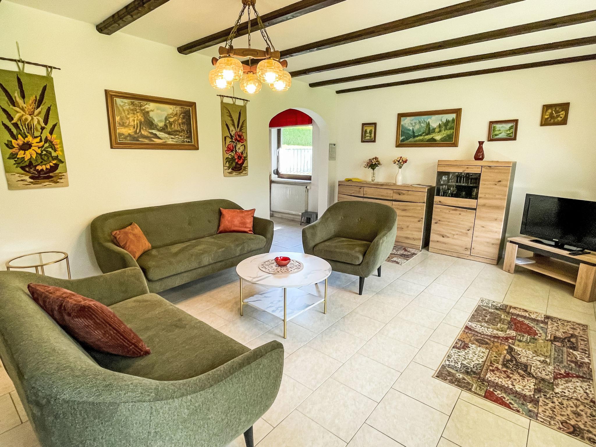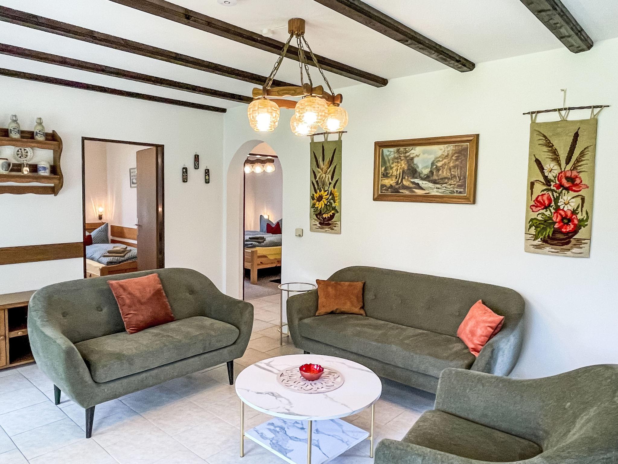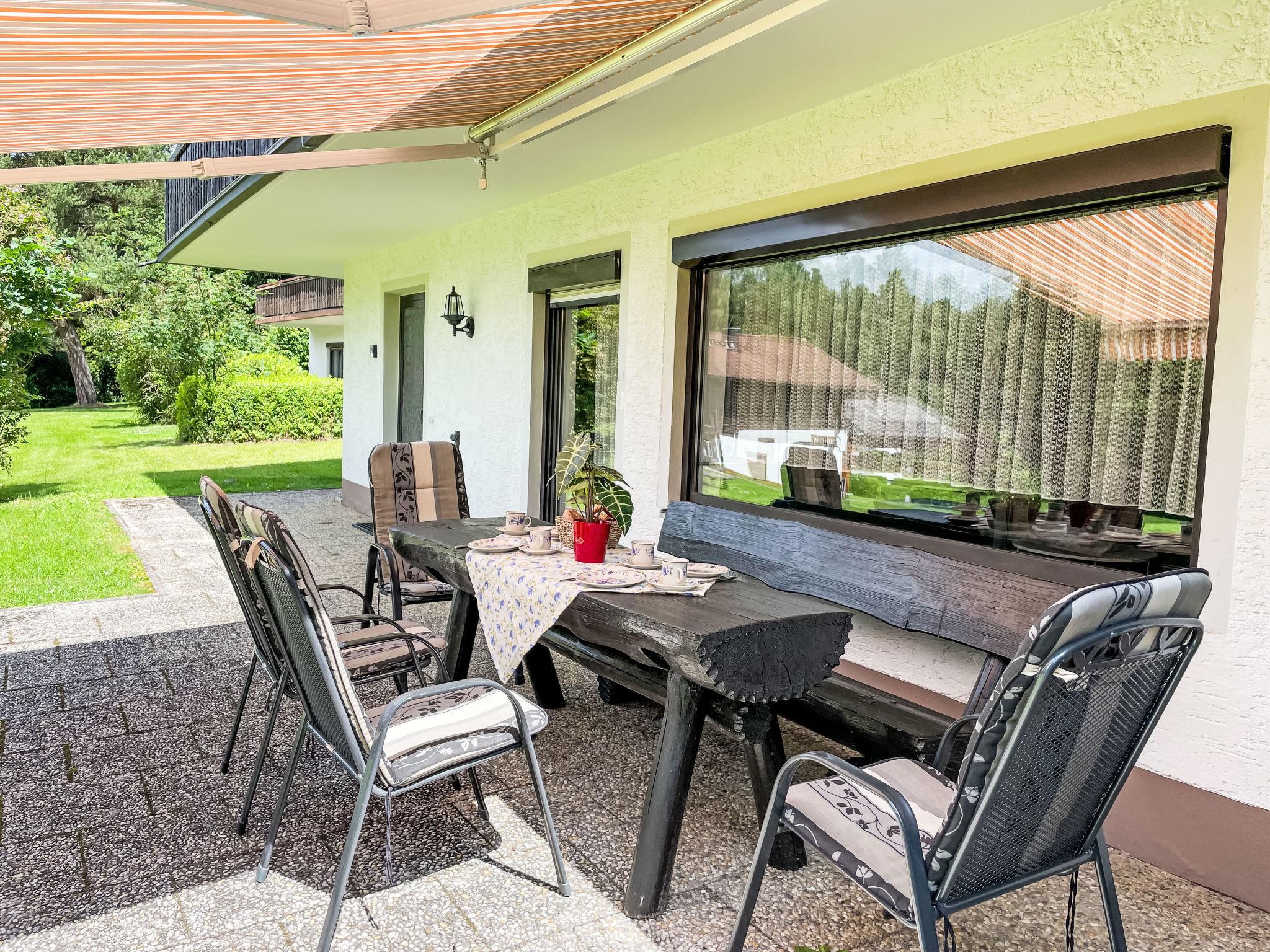 3-room apartment 75 m2, on the ground floor. Cosy furnishings: living room 35 m2 with satellite TV (flat screen). Exit to the garden, to the terrace. 1 room 13 m2 with 1 double bed (180 cm, length 200 cm). 1 room 9 m2 with 2 beds (90 cm, length 200 cm). Open kitchen 9 m2 (4 hot plates, oven, toaster, kettle, electric coffee machine) with dining nook. Shower/WC. Gas heating. Large terrace 20 m2 partly roofed, garden 250 m2, lawn 150 m2. Terrace furniture. Beautiful view of the mountains. Facilities: Internet (WiFi, free). Please note: non-smokers only. Private entrance, smoke alarm. Lake 100m. Bookings accepted for holiday purposes only.