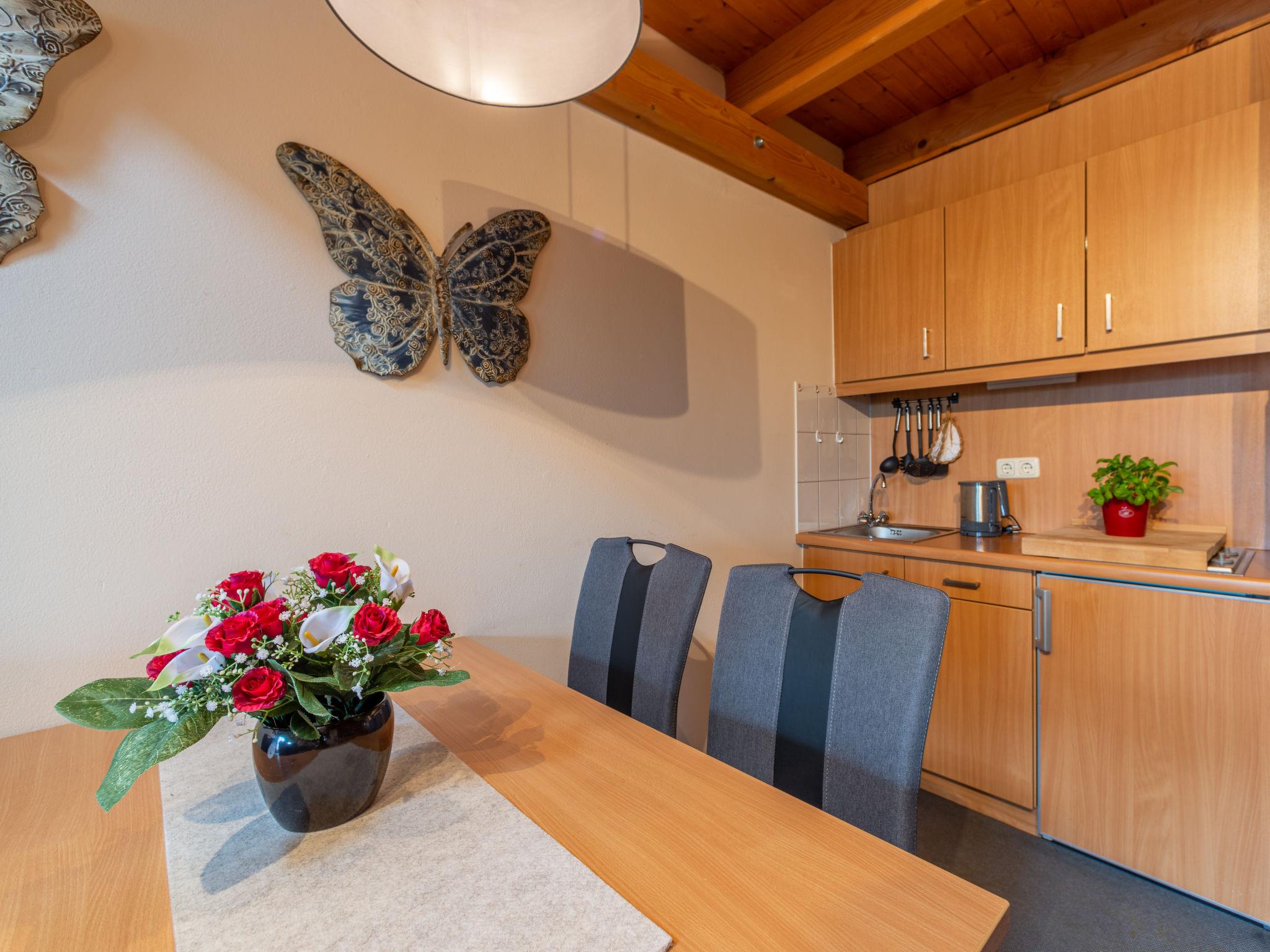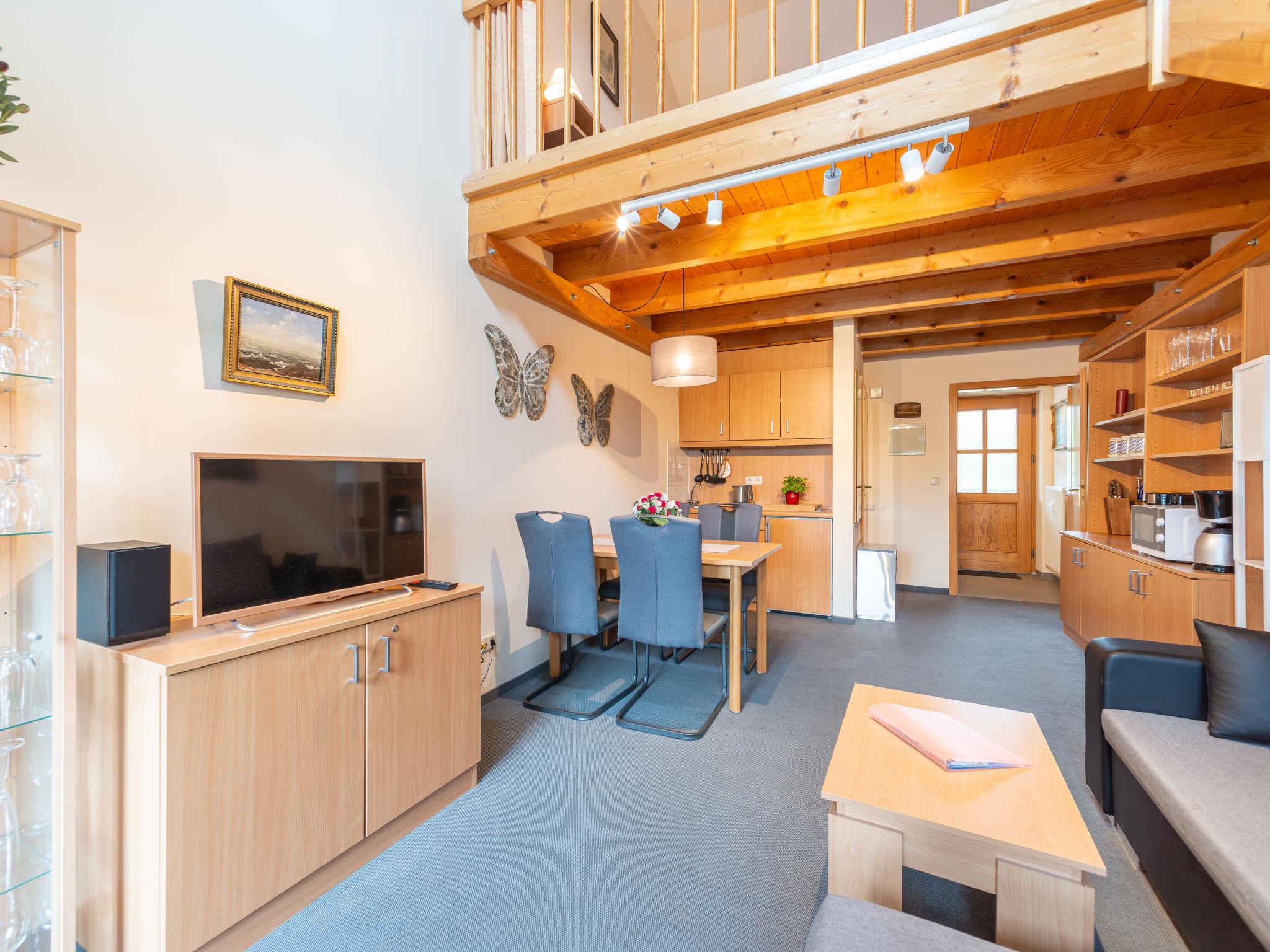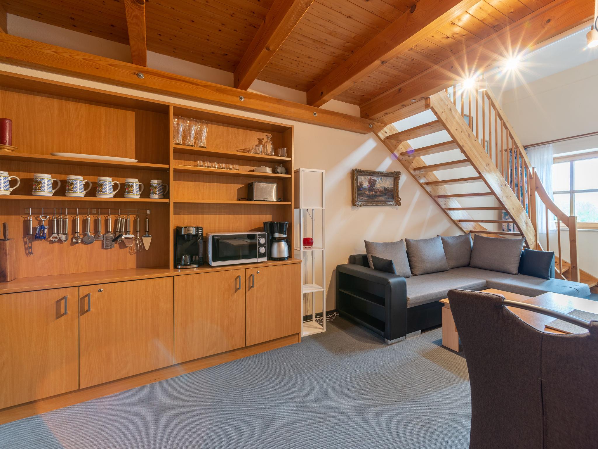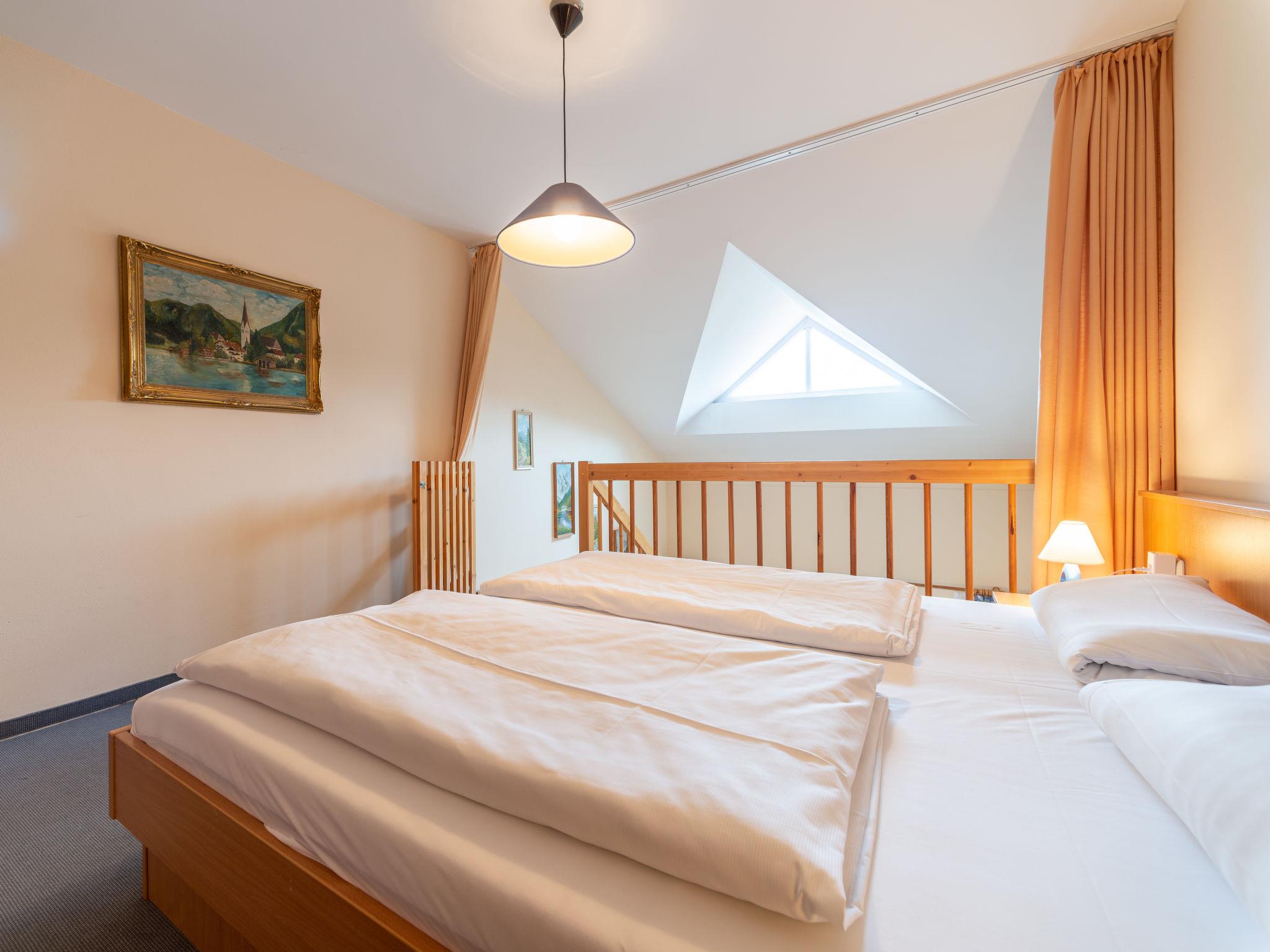 1-room apartment 45 m2 on 2 levels on 1st floor. Cosy furnishings: living/dining room 25 m2 with satellite TV (flat screen), CD-player, hi-fi system and DVD. Exit to the balcony. Kitchenette (2 hot plates, toaster, kettle, microwave, electric coffee machine). Shower/WC. Top floor: open gallery 10 m2 with 1 double bed (180 cm, length 200 cm). Small balcony 8 m2. Balcony furniture. Beautiful view of the lake and the mountains. Facilities: Internet (WiFi, free). Please note: non-smokers only. Maximum 1 pet/ dog allowed. Smoke alarm. Apartment in an apartment house. Lake 50 m. Instead of an enclosed bedroom, some sleeping areas are located in an open-plan area (gallery, alcove, etc.).