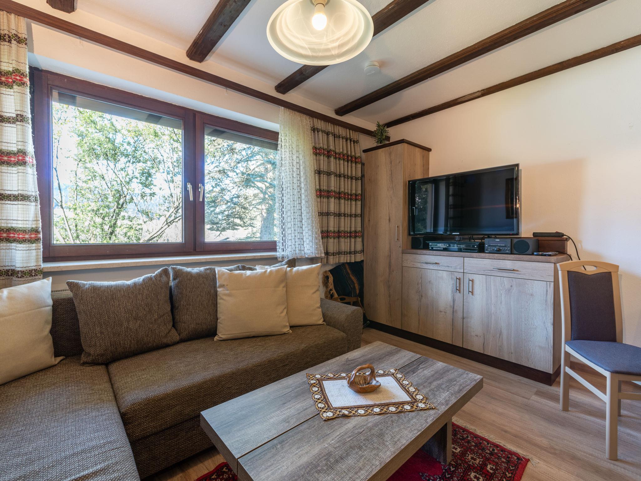 2-room apartment 38 m2, on the ground floor. Cosy furnishings: living/dining room 18 m2 with 1 sofabed (80 cm, length 200 cm), satellite TV (flat screen), video, CD-player, hi-fi system and DVD. 1 room 12 m2 with 1 double bed (180 cm, length 190 cm). Kitchenette (2 hot plates, mini-oven, microwave, electric coffee machine). Shower/WC. Gas heating. Small terrace 15 m2 partly roofed. Terrace furniture. Beautiful view of the mountains. Facilities: hair dryer. Internet (WiFi, free). IPod docking station. Please note: non-smokers only. Maximum 1 pet/ dog allowed. Smoke alarm. Lake 150 m. If you reserve additional beds, there is a sofa bed at your disposal in the living / dining room.