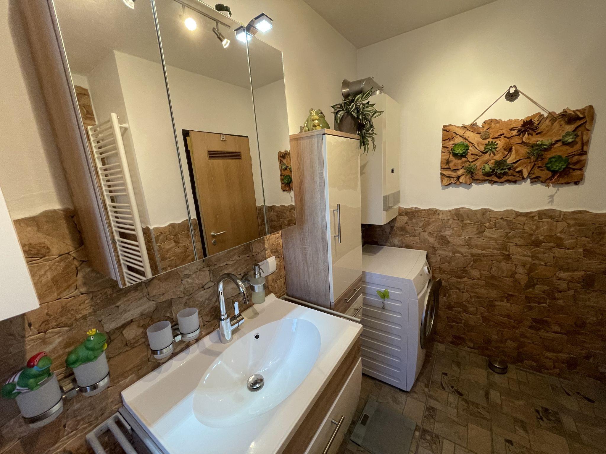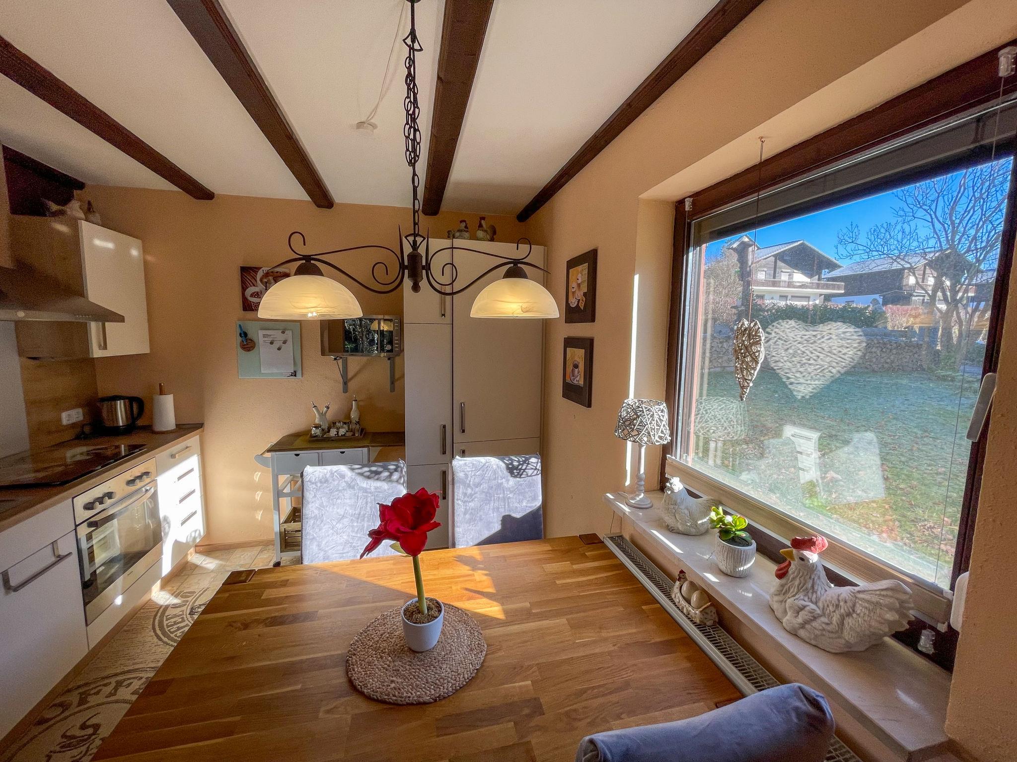 3-room apartment 75 m2, on the ground floor. Comfortable furnishings: living room with satellite TV (flat screen), hi-fi system. Exit to the garden, to the terrace. 1 room with 1 double bed (180 cm, length 200 cm). 1 room with 2 beds (90 cm, length 200 cm). Open kitchen (oven, dishwasher, 4 ceramic glass hob hotplates, toaster, kettle, microwave, electric coffee machine) with dining table. Shower/WC. Gas heating. Large terrace partly roofed, garden 350 m2. Terrace furniture, barbecue (portable), sitting area. Beautiful view of the mountains. Facilities: washing machine, iron, hair dryer. Internet (WiFi, free). Parking (1 car). Please note: non-smokers only. Maximum 2 pets/ dogs allowed. Private entrance, smoke alarm.