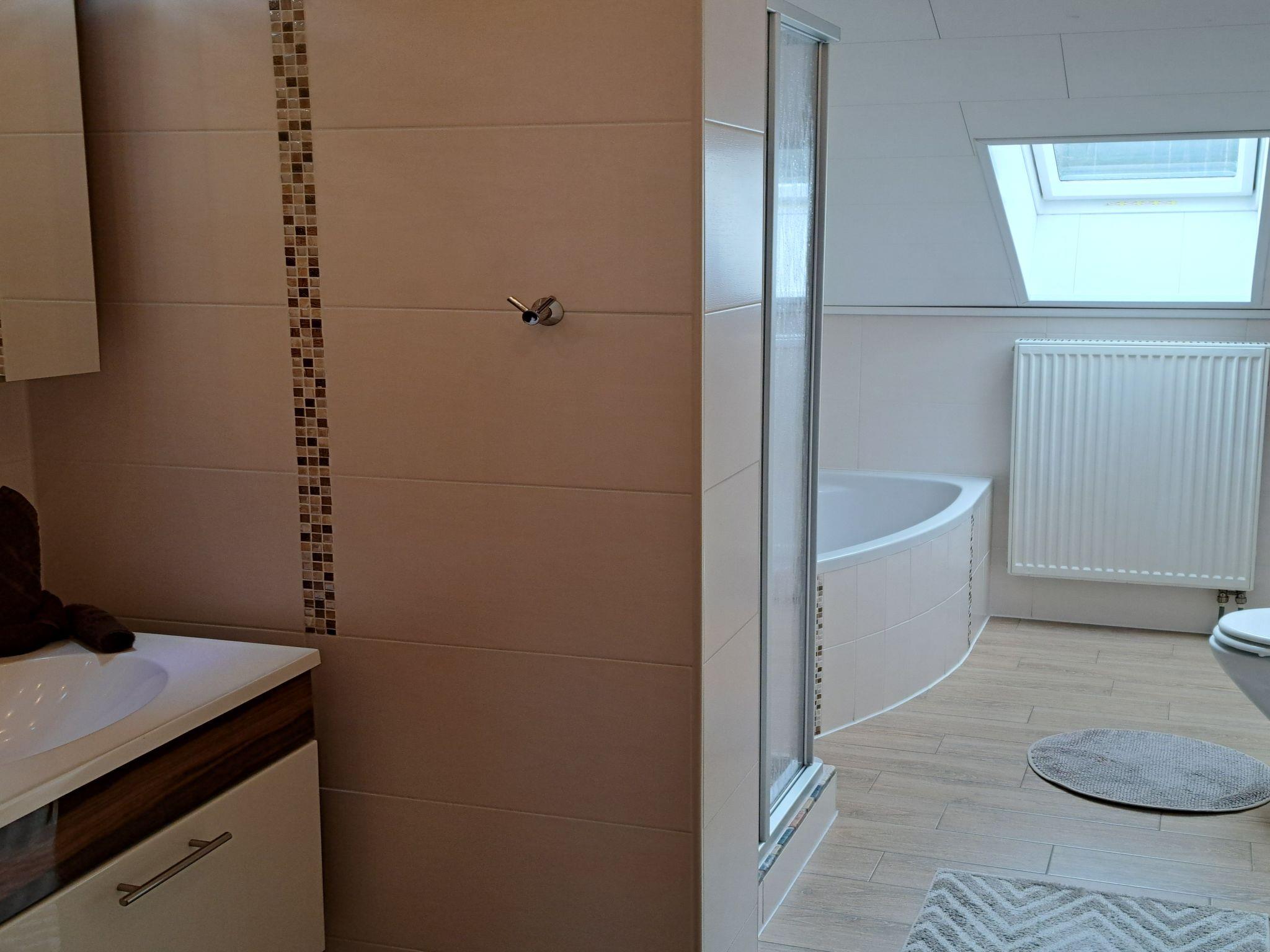As you enter the flat, you are greeted by a spacious hallway that leads you to all of our lovingly furnished rooms. For relaxing and cooking, you will find an open-plan living area that includes a well-equipped kitchenette with adjoining pantry and a large dining table for shared meals. A cosy living room with a large sofa, a recliner and a flat-screen TV invites you to linger. Three comfortable bedrooms - a double room with the option of an extra bed, a triple room and a third bedroom in the living area, which is separated by a door - offer sufficient privacy. Two bathrooms, one of which is generously sized for use by the whole family, round off the interior.