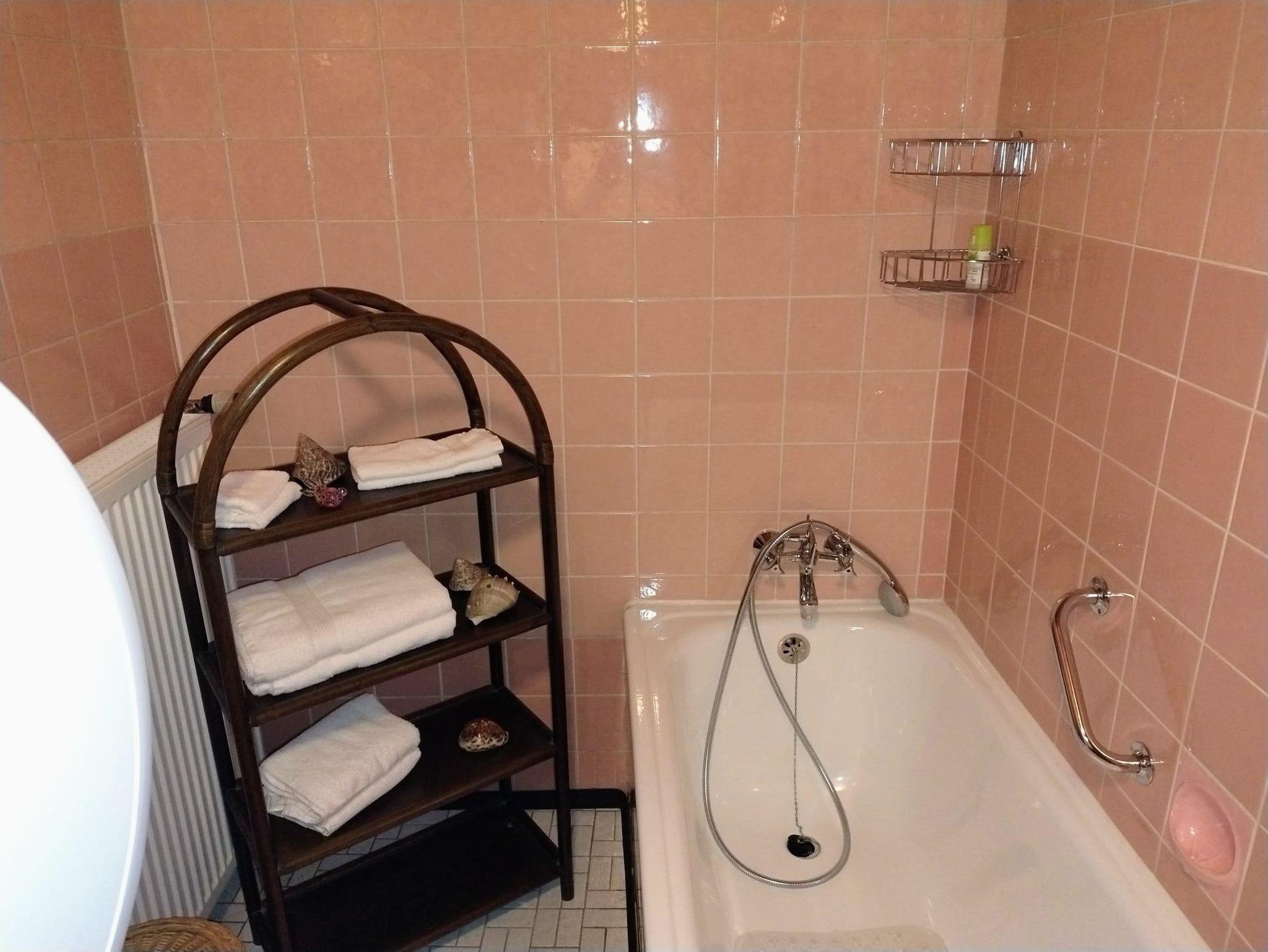 komfortabel gestaltet. Es verfügt über eine Badewanne mit Duschmöglichkeit, ein
