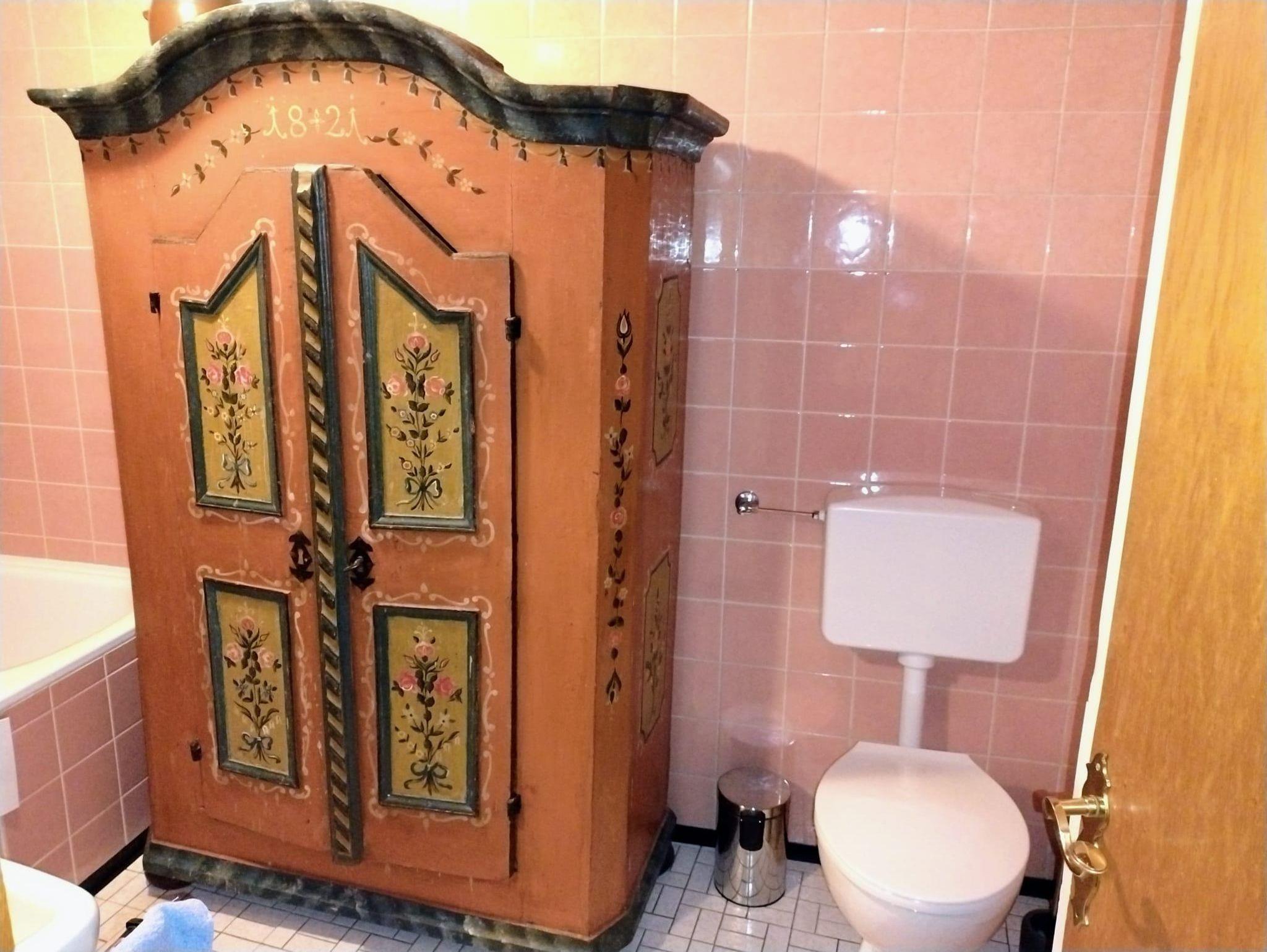 ein außergewöhnliches historisches Möbelstück: ein alter Schrank, der aus einer