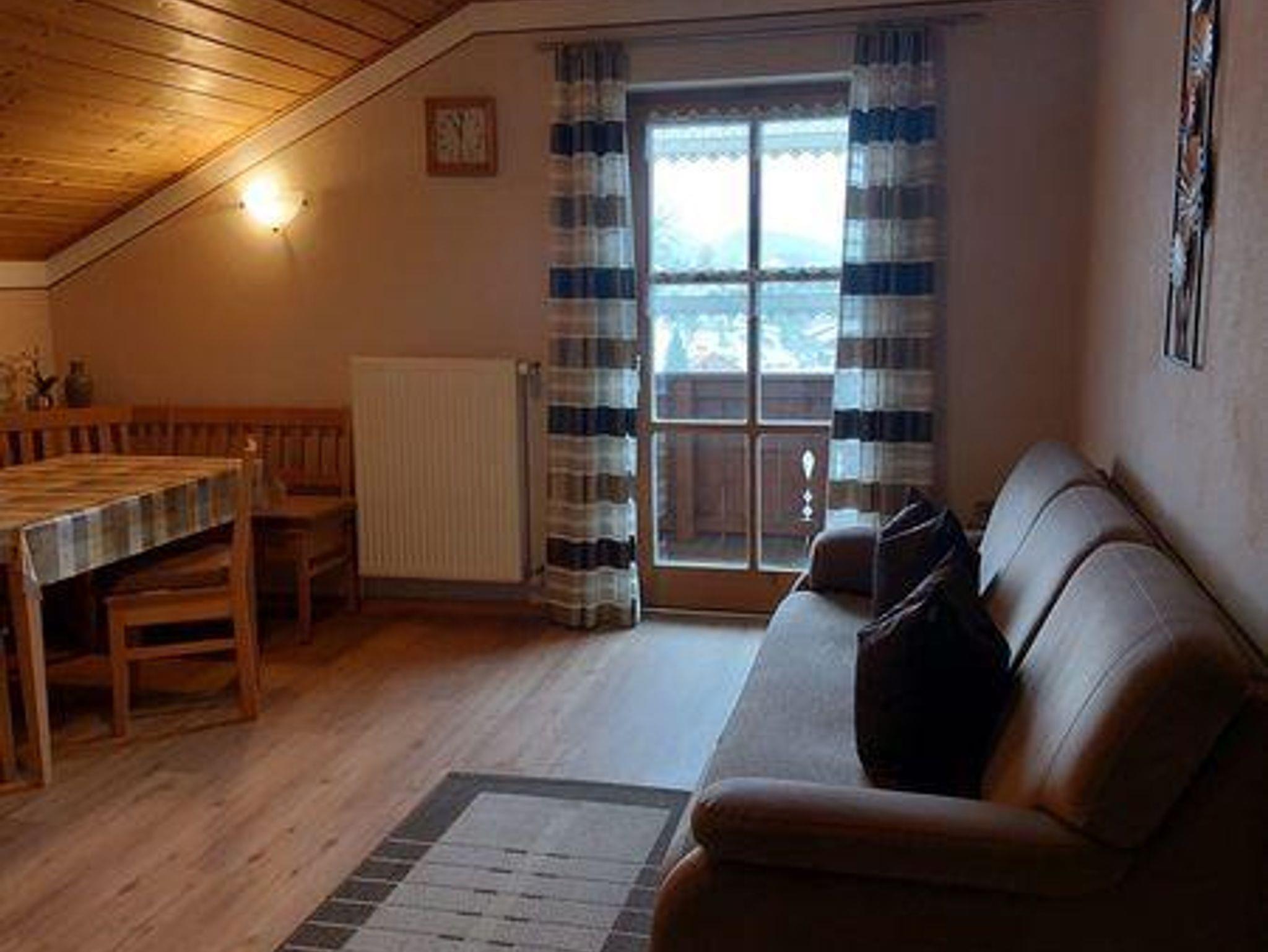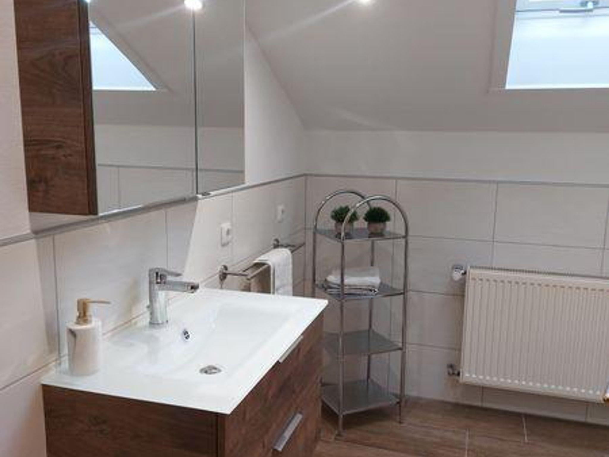Die Ferienwohnung befindet sich im Dachgeschoss, ist ca. 60 m² groß und geeignet für 2 - 3 Personen. Sie hat ein großes Schlafzimmer mit einem Doppelbett und einem Einzelbett, eine Wohn- und Essecke mit TV, eine vollausgestattete Küche mit Kühlschrank, E-Herd mit Backofen, Kaffeemaschine, Wasserkocher und Toaster und ein Badezimmer mit Dusche und WC. Außerdem finden Sie auf dem Balkon Gartenmöbel vor.