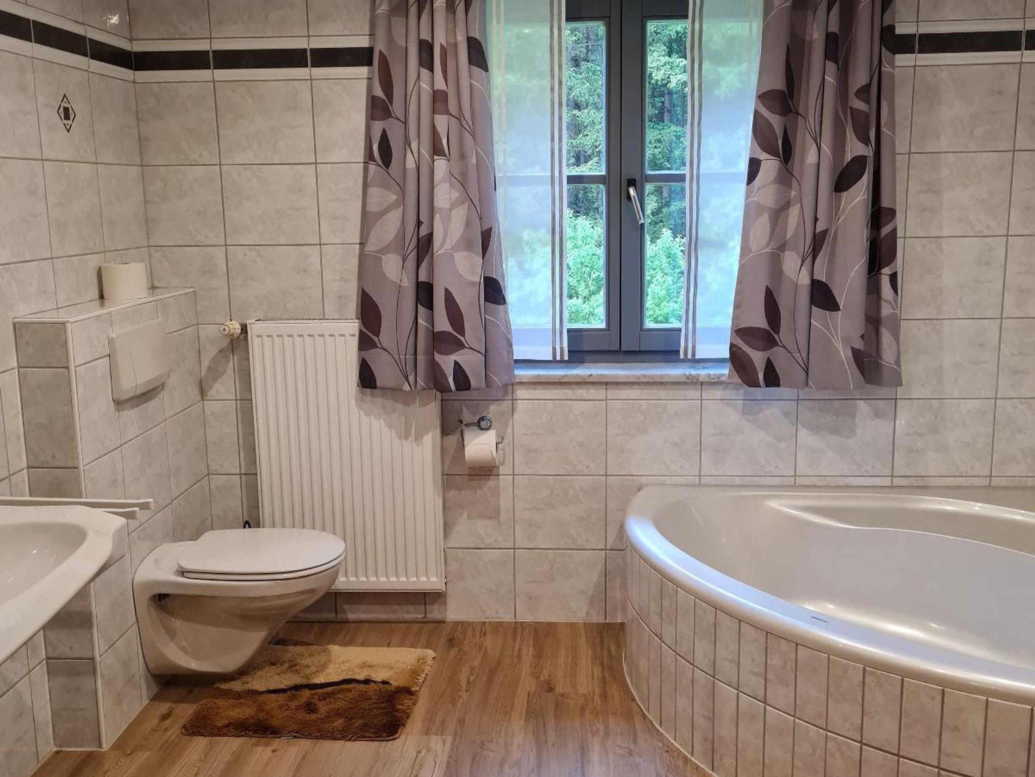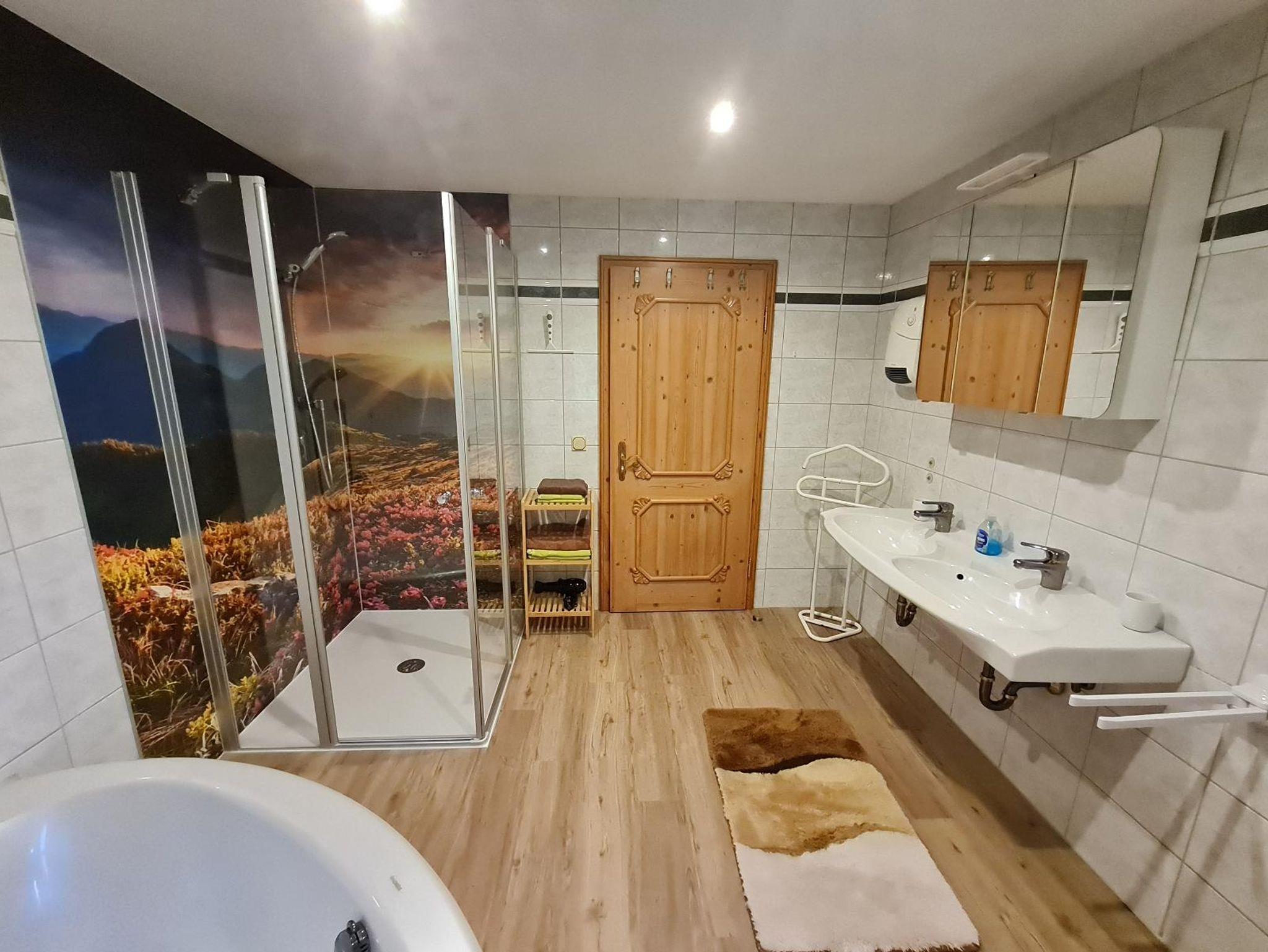 Die gemütliche Ferienwohnung im Landhausstil bietet auf 100 qm Wohnfläche Platz für bis zu 6 Personen. Die Wohnung verfügt über eine komfortabler Ausstattung. Das Wohnzimmer mit Kachelofen, TV, Sofa und Essbereich lädt zum Verweilen ein. Die Ferienwohnung verfügt über drei Schlafzimmer, die jeweils mit einem Doppelbett ausgestattet sind. Die vollausgestatte Küche mit Herd, Backofen, Kühlschrank inklusive Gefrierfach und Mikrowelle lässt keine Wünsche offen. Das Badezimmer mit Dusche, Badewanne und WC rundet das Gesamtbild ab. Zudem gibt es noch ein separates WC. Auf dem Erkerbalkon sowie der Liegewiese können Sie entspannte Stunden verbringen. Bettwäsche und Handtücher sind inklusive. WLAN steht kostenfrei zur Verfügung. Im Haus befindet sich zudem eine Waschmaschine.