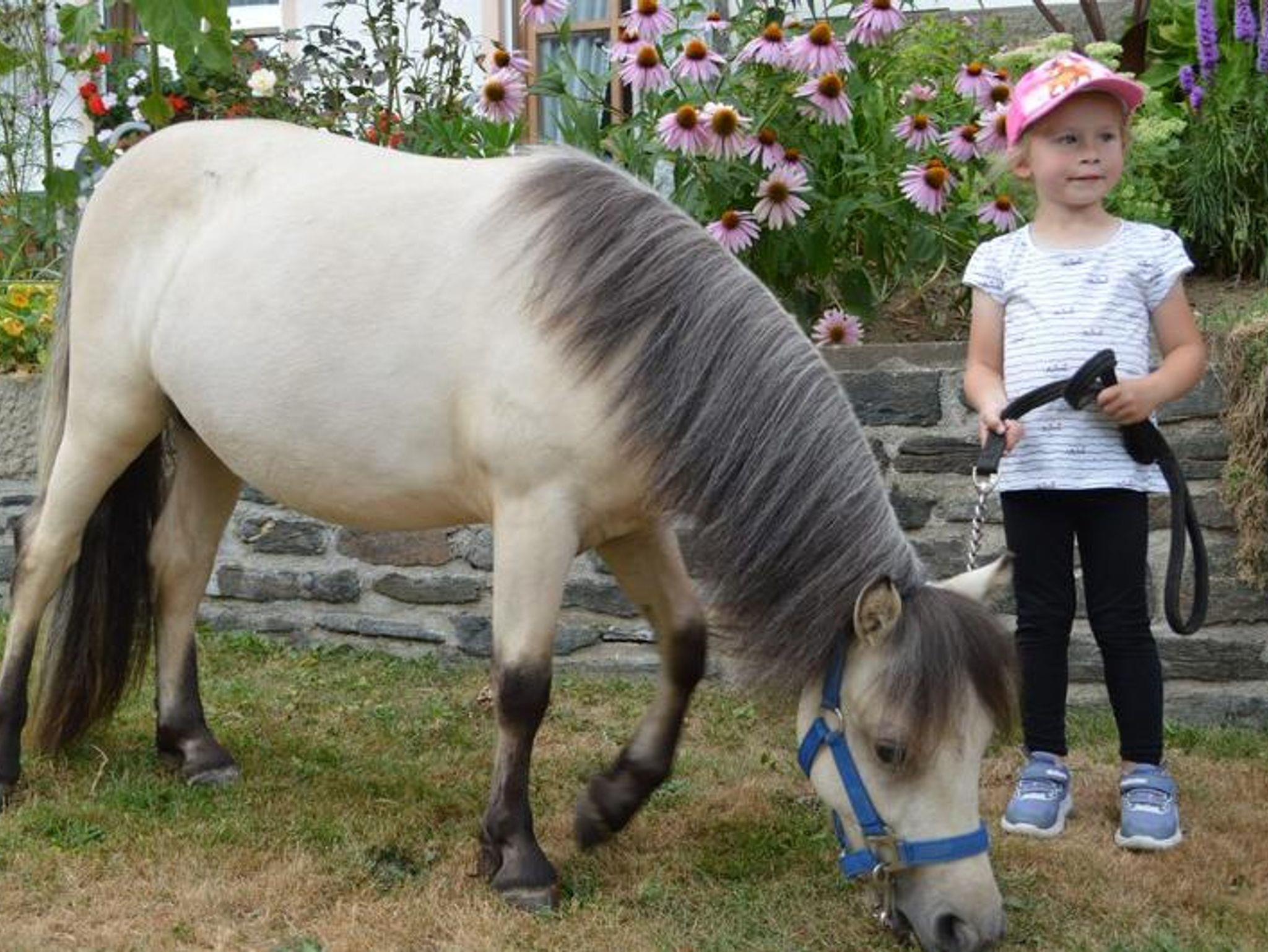 Pradies beim Versorgen der Tiere, beim Striegeln der Ponys und