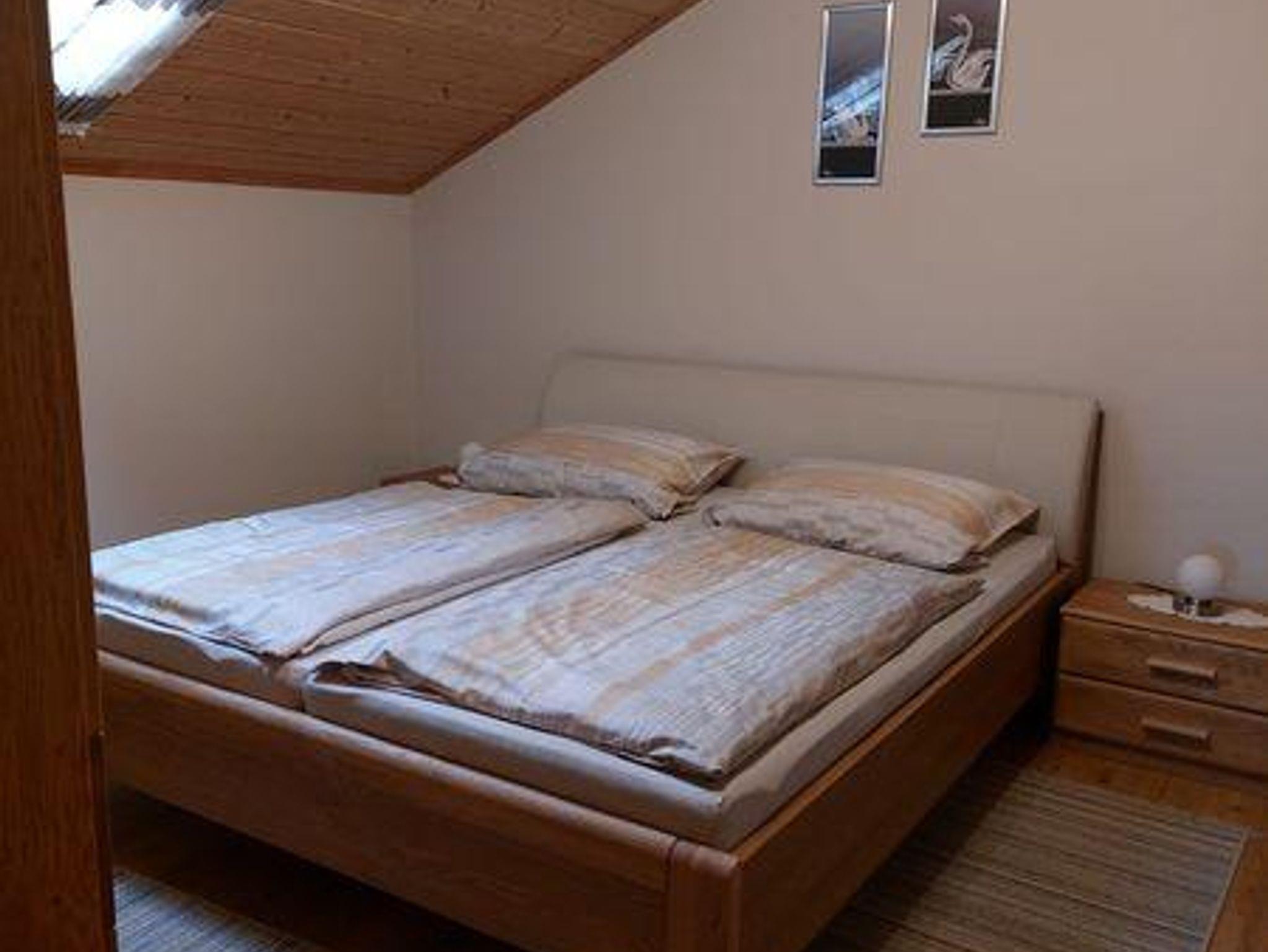 Die Ferienwohnung befindet sich im Dachgeschoss, ist ca. 80 m² groß und geeignet für 2 - 5 Personen. Sie hat 2 Schlafzimmer mit je einem Doppelbett, eine Wohn- und Essecke mit TV, eine vollausgestattete Küche mit Kühlschrank, E-Herd mit Backofen, Kaffeemaschine, Wasserkocher und Toaster und ein Badezimmer mit Dusche und WC. Außerdem finden Sie auf dem Balkon Gartenmöbel vor. Kinderbett und Hochstuhl sind vorhanden.