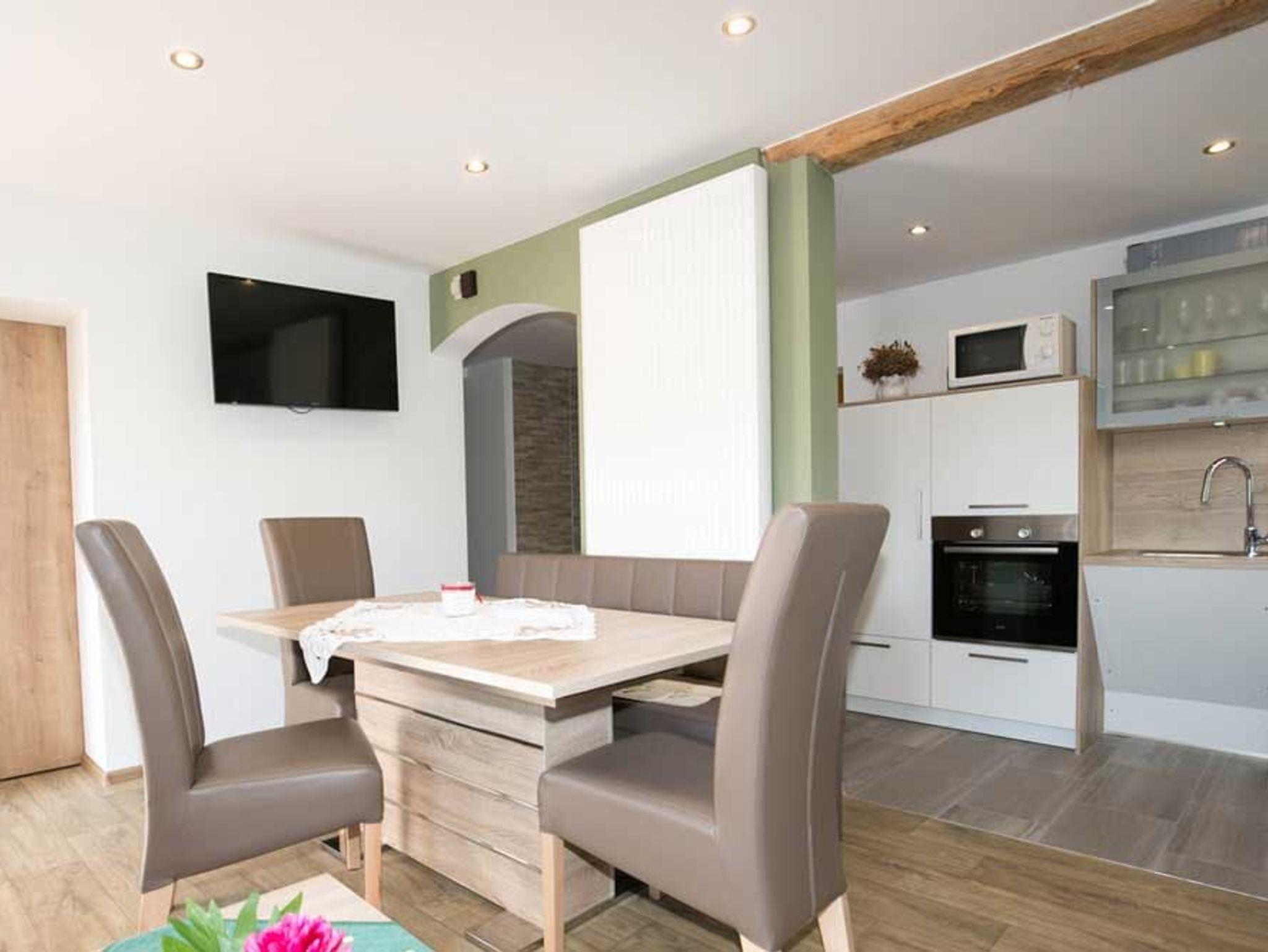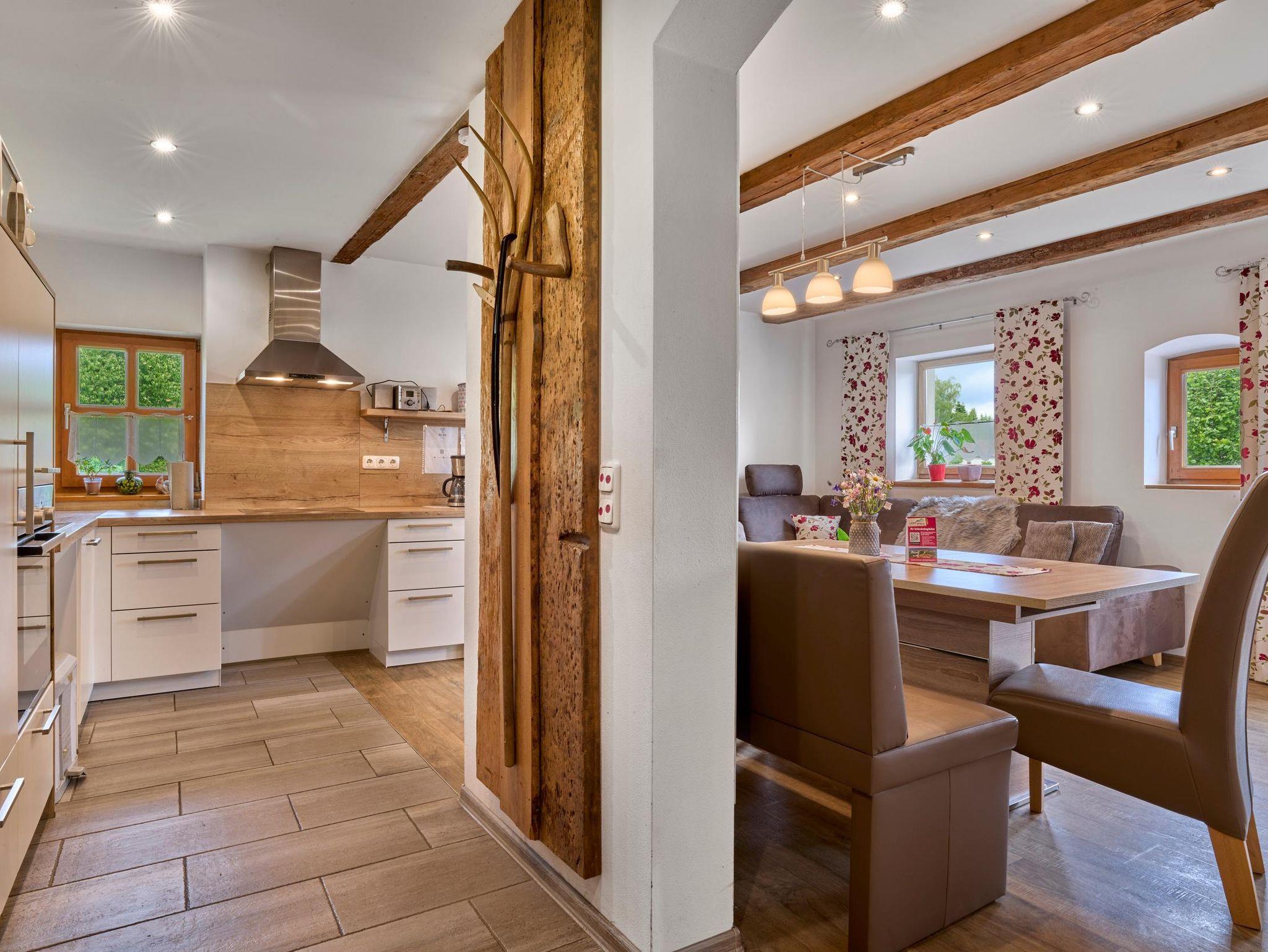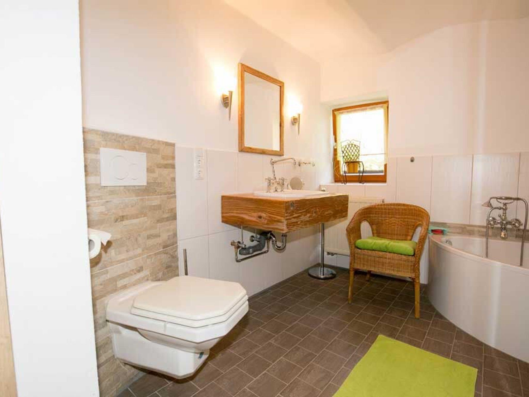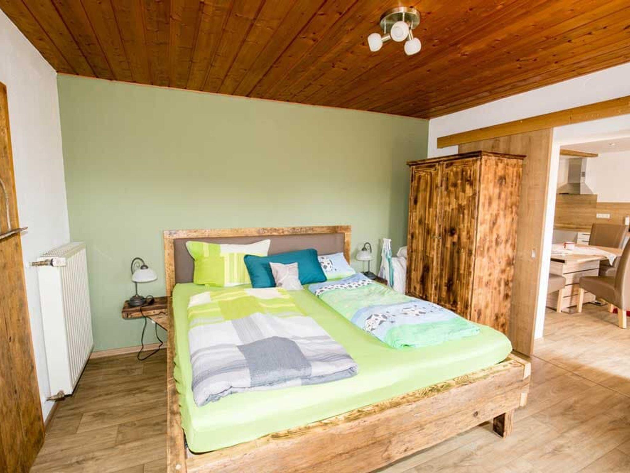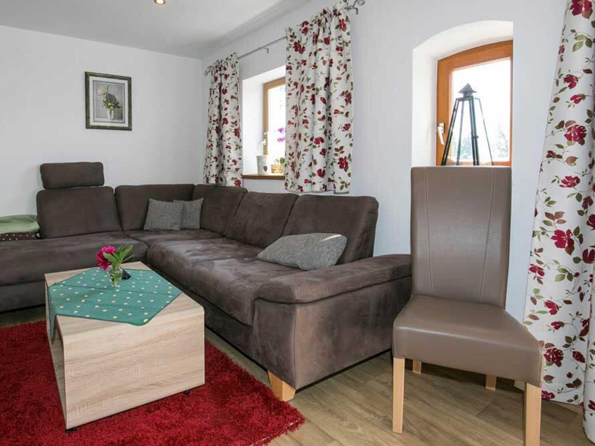 Die Ferienwohnung Silberberg ist 75 qm groß und verfügt über 2 Schlafzimmer mit jeweils einem bequemen Doppelbett und Flachbild-TV. Das geräumige Wohnzimmer mit Sat-TV, großer Couch und Kachelofen lädt zum Verweilen ein. Die behindertengerechte, moderne Küche mit Spülmaschine, Mikrowelle, Toaster, Wasserkocher, Espressomaschine lässt keine Wünsche offen. Das Bad besteht aus ebenerdiger Regendusche, Whirlpoolbadewanne und WC. Auf dem schönen Balkon und der großen Terrasse können Sie die Sonne und Aussicht genießen. Die Barrierefreiheit wurde geprüft von Reisen für Alle. Babygerechte Ausstattung möglich. Frühstücksbuffet gegen Aufpreis möglich. Tischtennisraum mit großem Fußballkicker, große Liegewiese mit Liegen und Grill und ein separater Waschraum mit Waschmaschine und Trockner stehen unseren Gästen zur Verfügung. Kostenloses Reiten am Hof und auf Wunsch Kinderbetreuung. Separates Kinderspielzimmer, Aufenthaltsraum, eigener schattiger Kinderspielplatz mit Baumhaus, großem Trampolin und Lagerfeuerstelle.