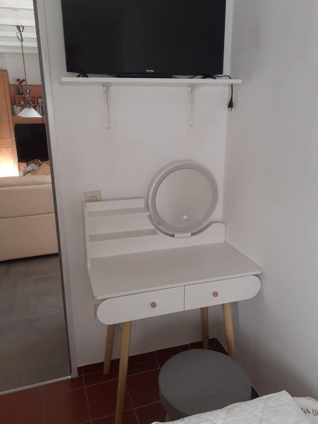 Der helle Wohnbereich mit Zugang zur Terrasse lädt zum Entspannen ein – ob bei einem Frühstück in der Morgensonne oder einem Glas Wein in der Abenddämmerung mit Blick auf die weiten Felder. WLAN, ein eigener Parkplatz und die Möglichkeit, Ihren Hund mitzubringen, machen den Aufenthalt rundum angenehm.