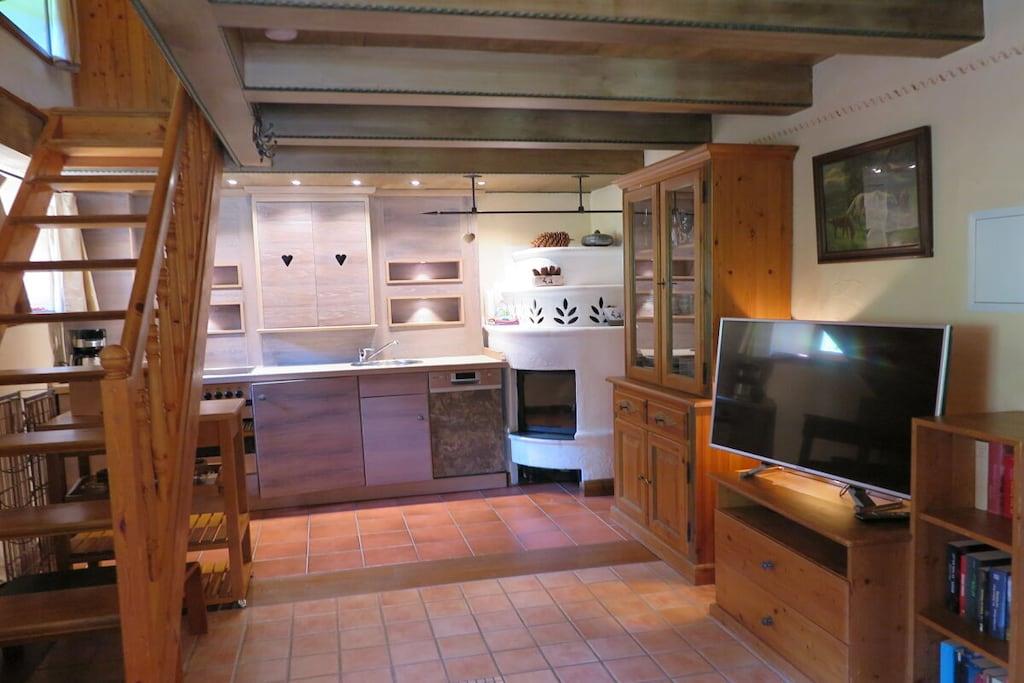 Exclusief vakantieappartement op toplocatie, gebouwd met bio-architectuur, parket- en tegelvloeren, elk met 2 slaapkamers, bedden van alpenden, verzorgingsproducten van alpenden van het merk Florex in de badkamer, moderne inbouwkeukens, wifi, HDTV met mediatheek, tegelkachel, zitplaatsen buiten en balkon. Horren. Grillhut met gasbarbecue.