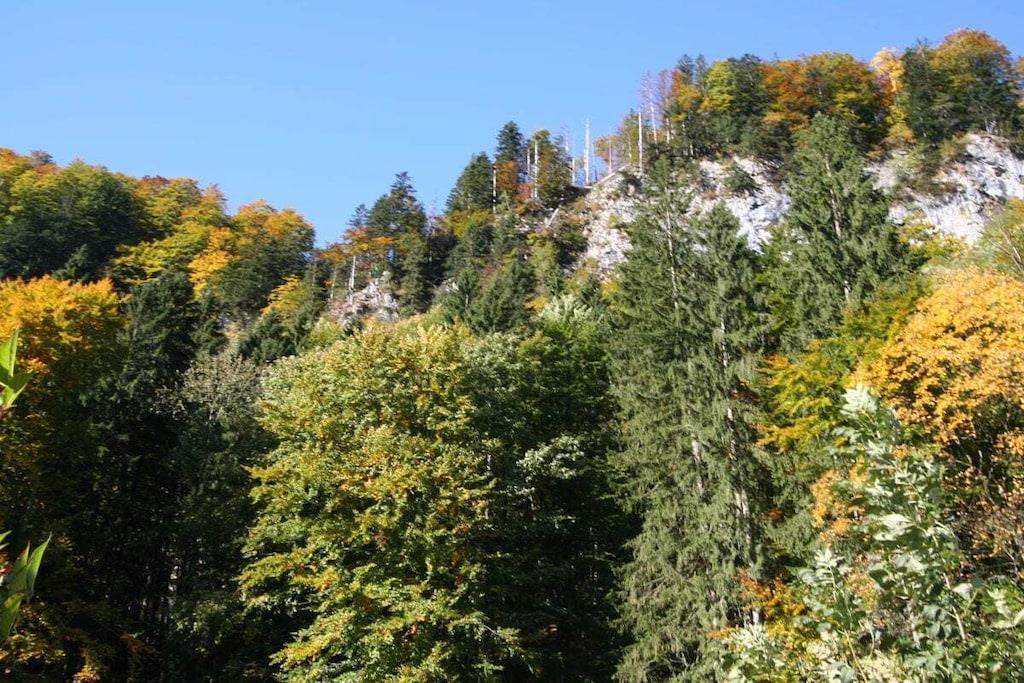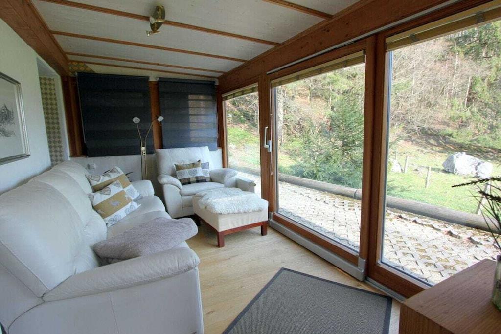 Are you looking for something SPECIAL? You'll find it with us! SECLUDED LOCATION in a side valley of the Priental with a panoramic view of the valley and the mountains. The attraction is the WATERFALL, the beauty of nature, the deer rut in autumn, cross-country skiing, skiing and snowshoeing in winter - you'll find it all here! A 8 only about 5 minutes away! MAXIMUM COMFORT awaits you with modern, ecologically sound furnishings, parquet and tiled floors. Restful sleep in our pine beds. The tiled stove spreads cozy warmth in the cold season. Our three 5-star maisonette apartments are each designed for 4 people (max. 2 adults and 2 children). The dining and living area, winter garden and private terrace are on the ground floor. On the upper floor with exposed roof trusses are the two bedrooms, the bathroom with pine care products, cosmetic mirror and a balcony. The in-house playground with campfire area is always an experience for your children. Free parking for our guests and a lockable shed for your bicycles are available. Please understand that out of consideration for our other guests we do not accept pets.