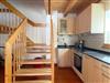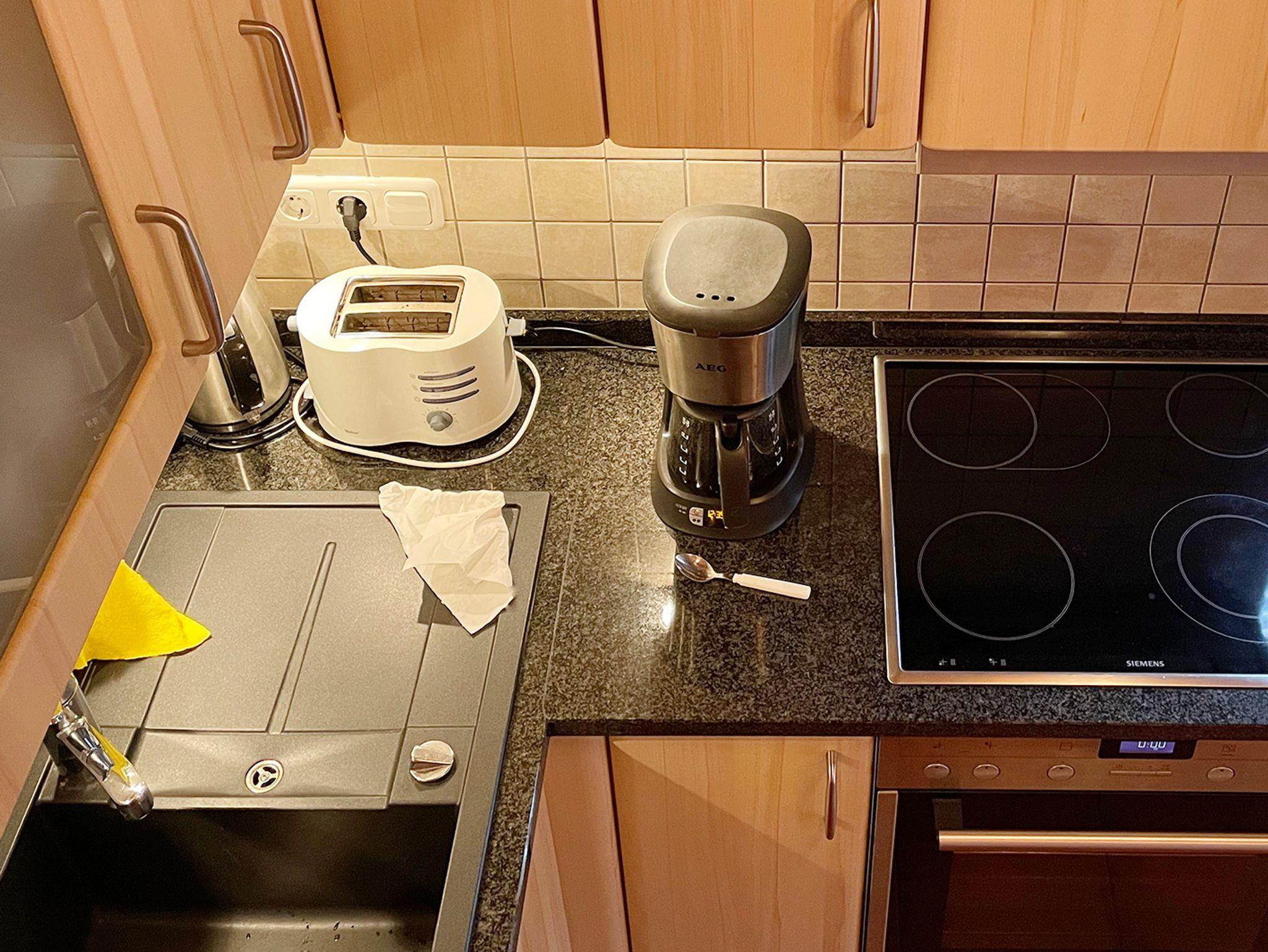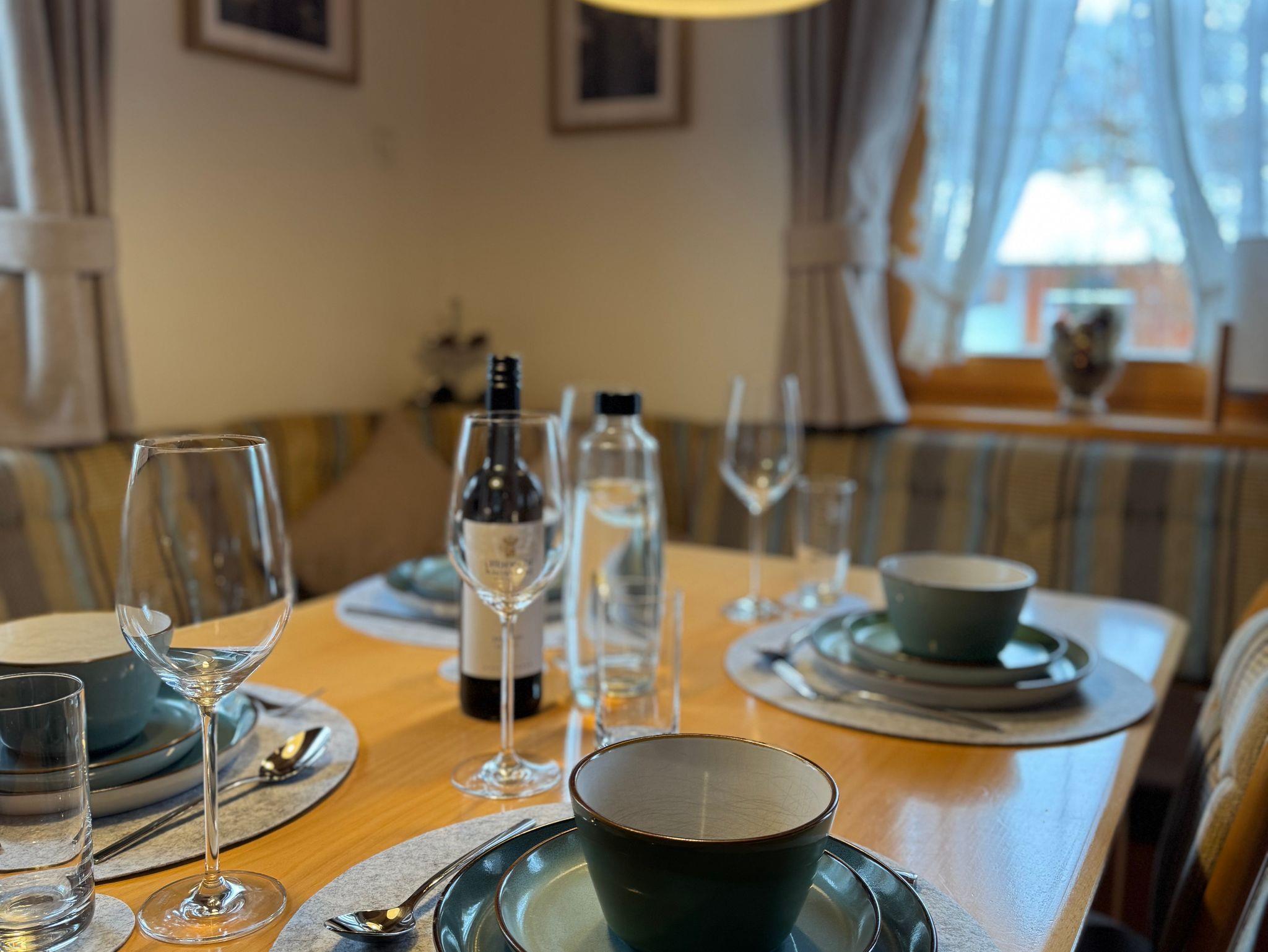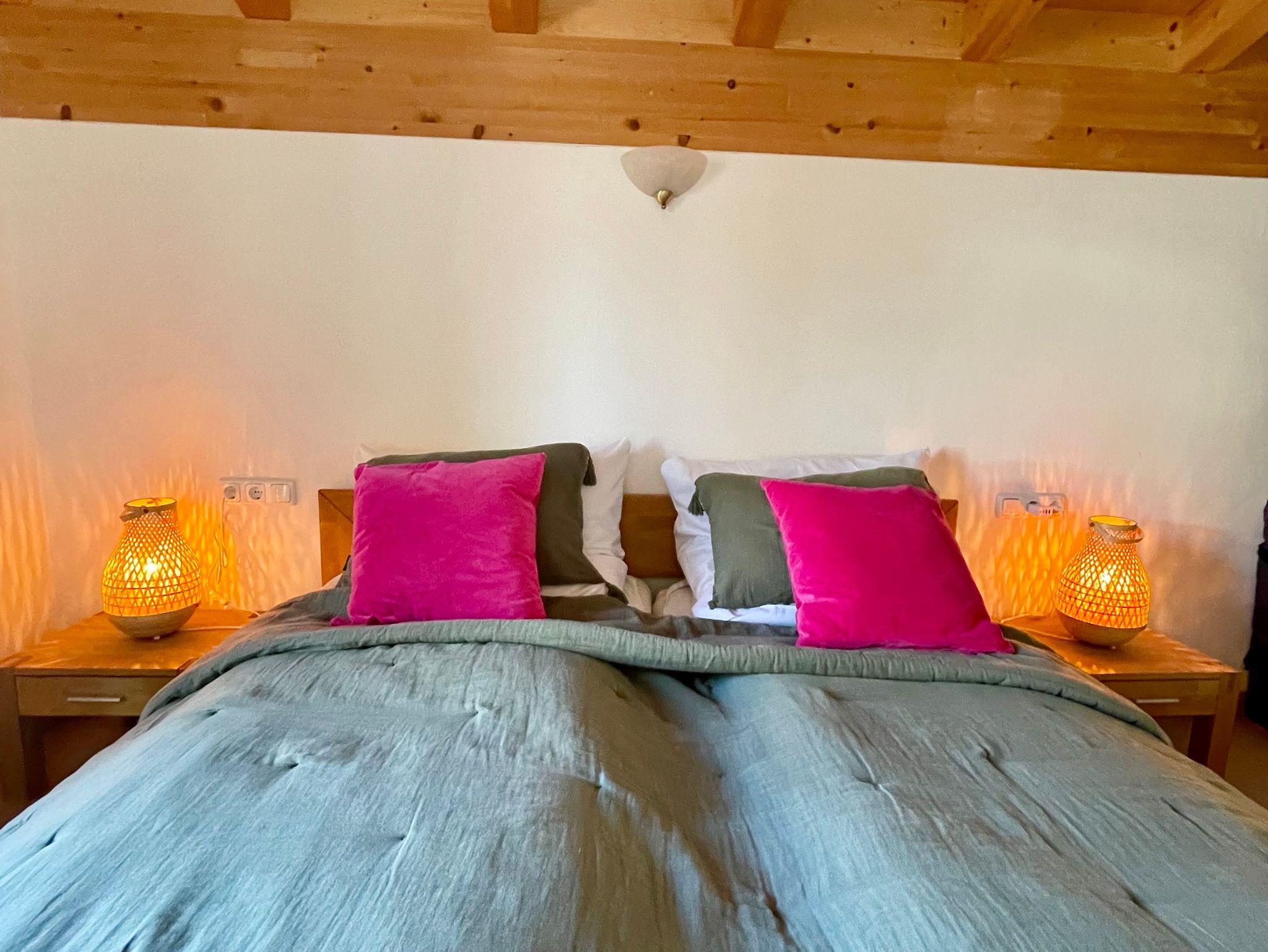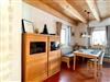 Das Erdgeschoss ist offen und freundlich gestaltet: Hier finden Sie eine voll ausgestattete Küche inklusive Spülmaschine, einen großen Kühlschrank mit Gefrierschrank und weitere zum Kochen wichtige Utensilien. Das offene Wohn-, Esszimmer umfasst eine gemütliche Essecke mit Eckbank – ein Ort für lange Mahlzeiten, Gespräche und Spiele sowie eine große, bequeme Couch zum Lesen und Entspannen mit großem, internetfähigem Flat-TV und kostenlosem WLAN. Ein Kaminofen spendet an kühleren Abenden eine behagliche Wärme, ebenso eine Fußbodenheizung im gesamten Erdgeschoss, die für zusätzlichen Komfort sorgt. Praktisch ergänzt wird das Erdgeschoss durch ein separates WC. Auf der sonnigen Terrasse können Sie den Tag ausklingen lassen und die Ruhe der Umgebung genießen. Bitte beachten Sie, dass Hunde und andere Haustiere in den Wohnungen leider nicht gestattet sind.
