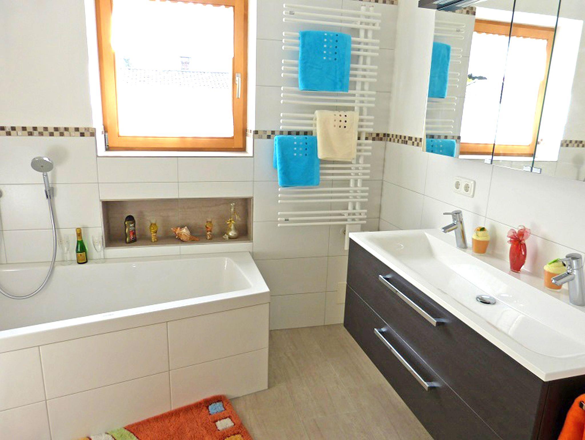 Sie wohnen in einer sehr hellen, lichtdurchfluteten, gemütlich und großzügig eingerichteten Ferienwohnung Kaiserblick 75 qm im Erdgeschoss, mit Terrasse und herrlichem Ausblick auf den Zahmen Kaiser. Zwei separate Schlafzimmer, einmal mit Doppelbett und einmal mit zwei Einzelbetten und ausziehbaren Schlafsofa. Das exklusive Badezimmer mit Regendusche, Badewanne, WC, Fön und Fußbodenheizung ist eine kleine Wellnessoase, in dem sie gut entspannen können. Der große, sonnige, Wohnraum mit gemütlicher Couch, Flat-SAT-TV und Essplatz hat eine modern ausgestattete Küchenzeile mit Herd/Backofen, Spülmaschine, Kühlschrank/Tiefkühlfach, eine Eckbank mit Esstisch und ein Sofa, Flachbild-TV mit SAT-TV und kostenloses WLAN. Von hier gibt es einen direkten Zugang in den wunderschönen, großen Garten mit Terrasse, Liegewiese und Spielmöglichkeiten für die Kinder. Hunde und Haustiere dürfen nicht mitgebracht werden. Die Wohnung befindet sich im Erdgeschoss, hat aber vor der Haustüre eine Eingangsstufe. Daher ist sie sehr gut für Gehbehinderte geeignet, aber leider nicht für Rollstuhlfahrer. Familien mit Kindern sind bei uns herzlich willkommen.