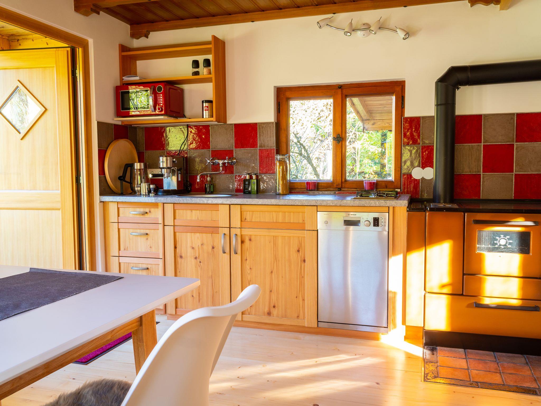 Im wunderschönen Alpenchalet finden Sie eine komplett ausgestattete Wohnküche mit Kochfeld, Backofen, Geschirrspülmaschine, Kühlschrank, Mikrowelle, TK-Fach, Kaffeemaschine vor. Im Schlafzimmer träumen Sie in einem Doppelbett. Im Badezimmer erwartet Sie eine großzügige ebenerdige Dusche, ein separates WC, beides mit Fußbodenheizung. Bettwäsche und Handtücher sind inklusive und kostenloses WLAN. Auf der Terrasse finden Sie Gartenmöbel vor.