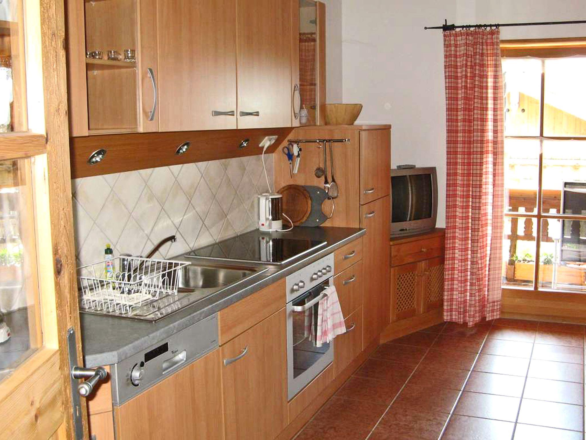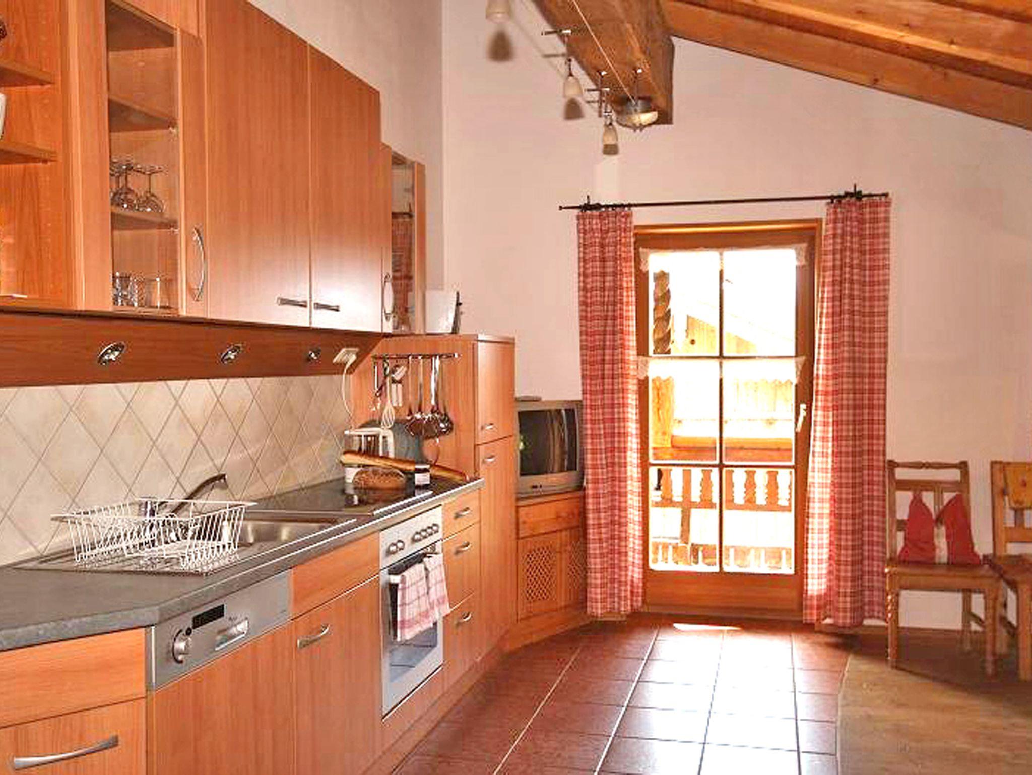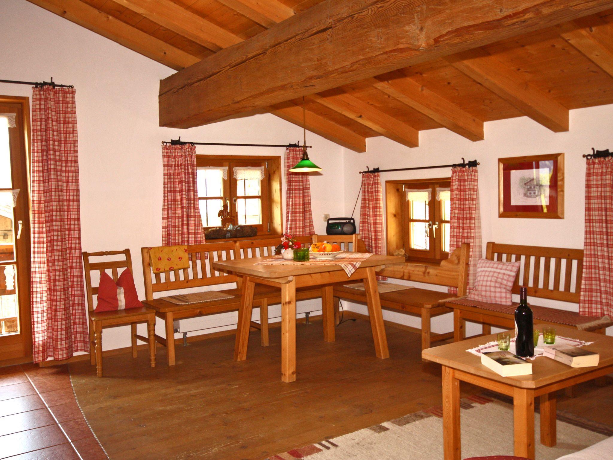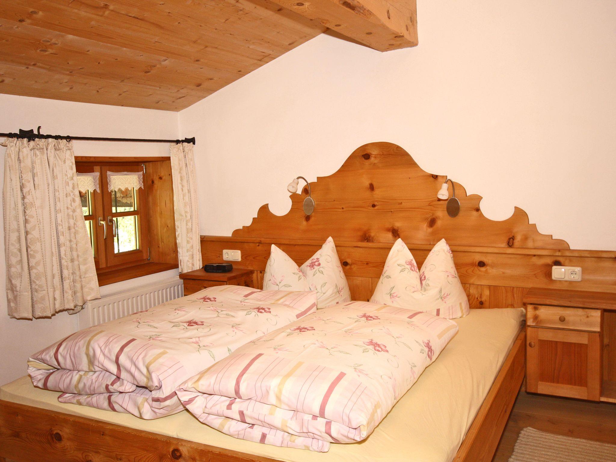 Die urgemütliche Ferienwohnung Spitzstein ist mit viel Holz und Liebe zum Detail ausgestattet. Die Möbel sind vom Schreiner aus Altholz gefertigt. Komfort und Wohlfühlen - Urlaub von seiner schönsten Seite. Vom Balkon der Wohnung können Sie den Blick ins Kaisergebirge und zur Wildbichlalm schweifen lassen. Die 65 qm große Ferienwohnung liegt im Dachgeschoss und verfügt über 2 separate Schlafzimmer. Das Elternschlafzimmer ist mit Doppelbett ausgestattet und im Kinderzimmer befindet sich ein Stockbett. Die geräumige Wohnküche bietet eine Eckbank mit Tisch und ein großes Sofa. An Elektrogeräten finden Sie in der Küche einen Kühlschrank inkl. TK-Fach, Spülmaschine, Cerankochfeld und Backofen, Kaffeemaschine und Wasserkocher und Flat-Sat-TV. Der Balkon ist ein herrlicher Ort um zu lesen und in die Berge zu schauen. Das Badezimmer bietet eine Dusche und WC. Bettwäsche und Handtücher sind inklusive. Es ist eine Nichtraucherwohnung. Hunde auf Anfrage.