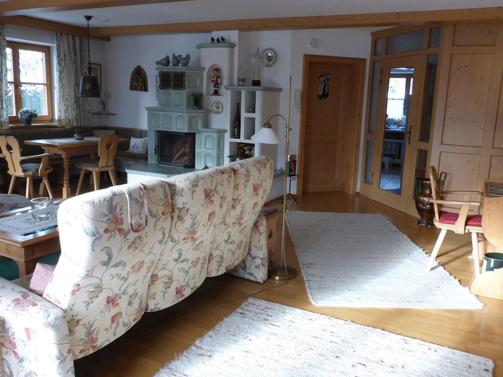 Liebevoll eingerichtete 106 qm Komfortwohnung mit schöner Süd-Terrasse und Garten, Sie haben einen herrlichen Blick auf die Berge. Großzügiges und geschmackvoll eingerichtetes Wohn- und Esszimmer mit Sitzgruppe zum Fernsehen, TV, kostenloses WLAN und einem großen Tisch zum Essen, ein heller Erker mit rundem Tisch lädt zum Zusammensitzen ein. Voll ausgestattete extra Küche mit allen elektrischen Geräten und Geschirrspüler. Ein separates Schlafzimmer mit Doppelbett, zusätliche Schlafmöglichkeit im Lesezimmer mit Schreibtisch und versenkbarem Einzelbett. Zwei Bäder: 1x mit Badewanne, Bidet und WC und 1 x mit Dusche/WC und Fön. Hunde und Haustiere dürfen nicht mitgebracht werden.