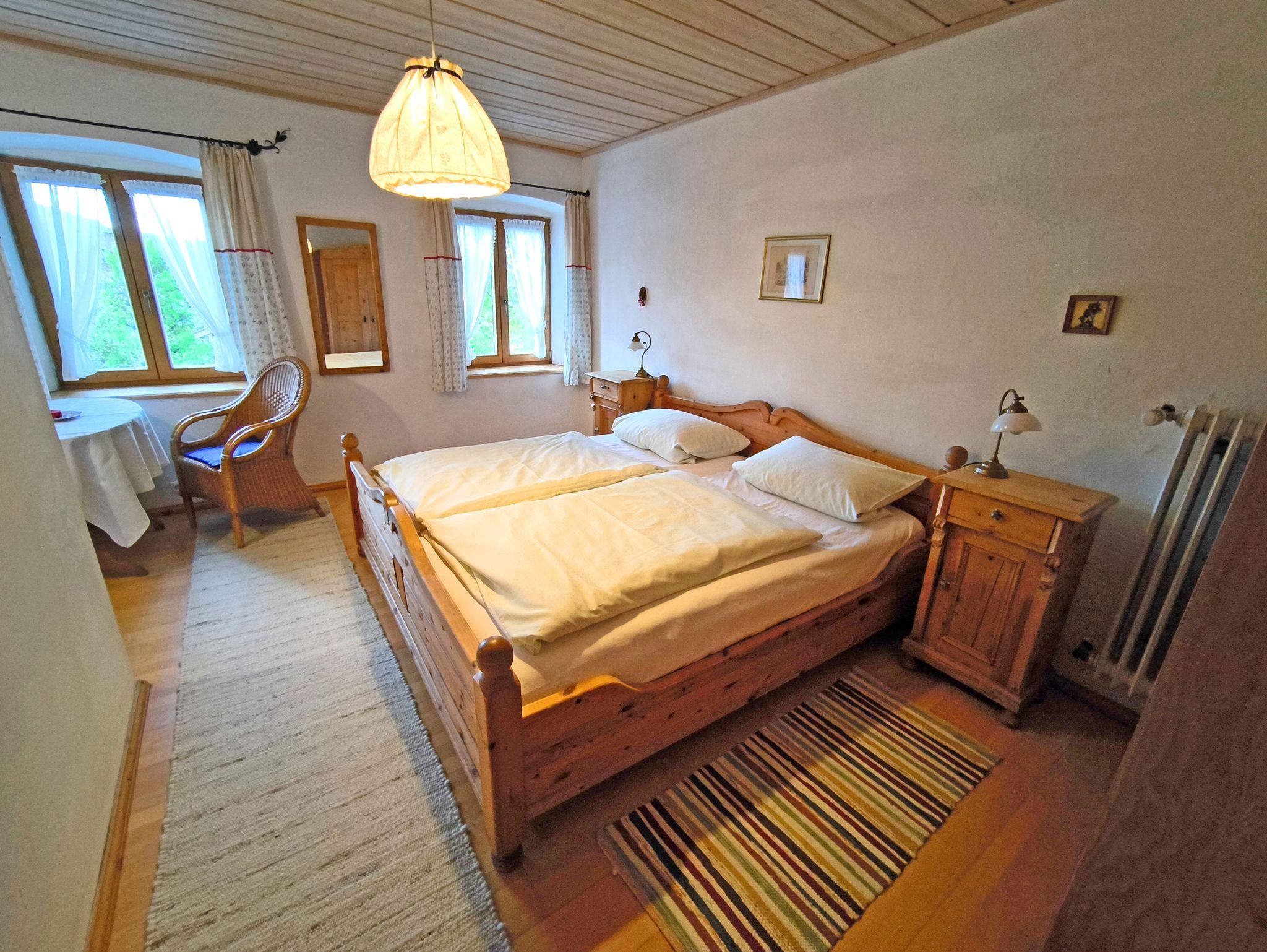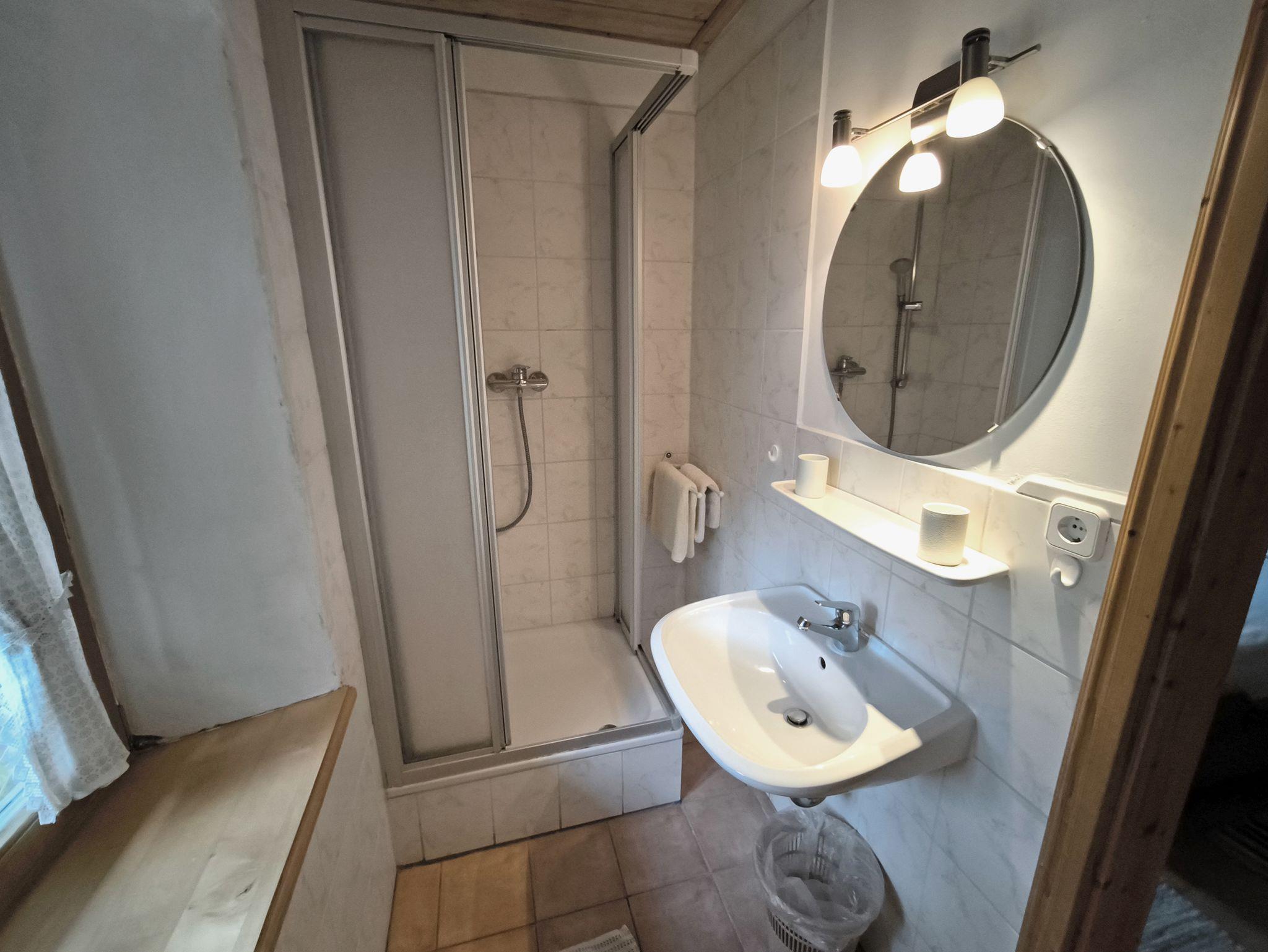Gemütliches, geräumiges Zimmer mit Doppelbett und Dusche/WC. Behaglich im Alpenländischen Stil mit Holzboden und einer Sitzecke eingerichtet. Auf Nachfrage und gegen Aufpreis kann ein Zustell- oder Babybett aufgestellt werden.